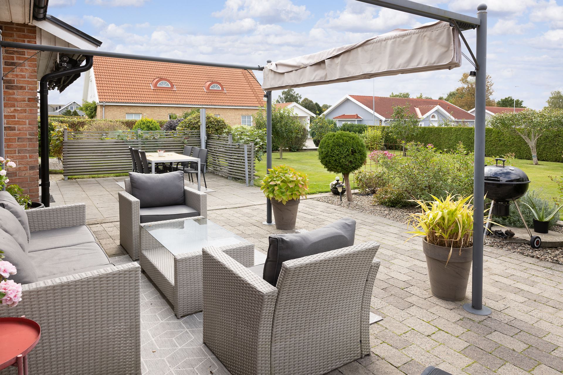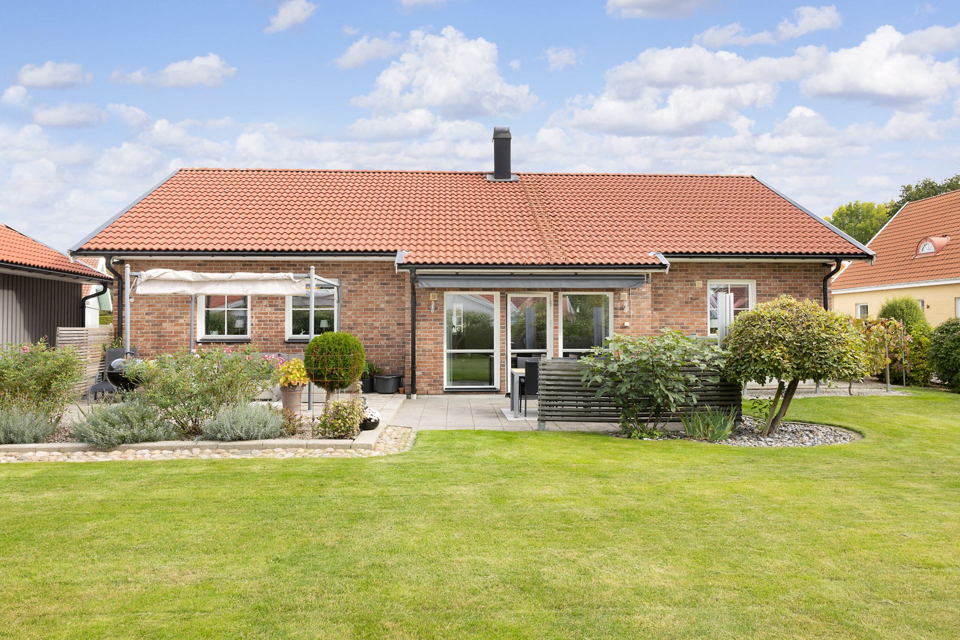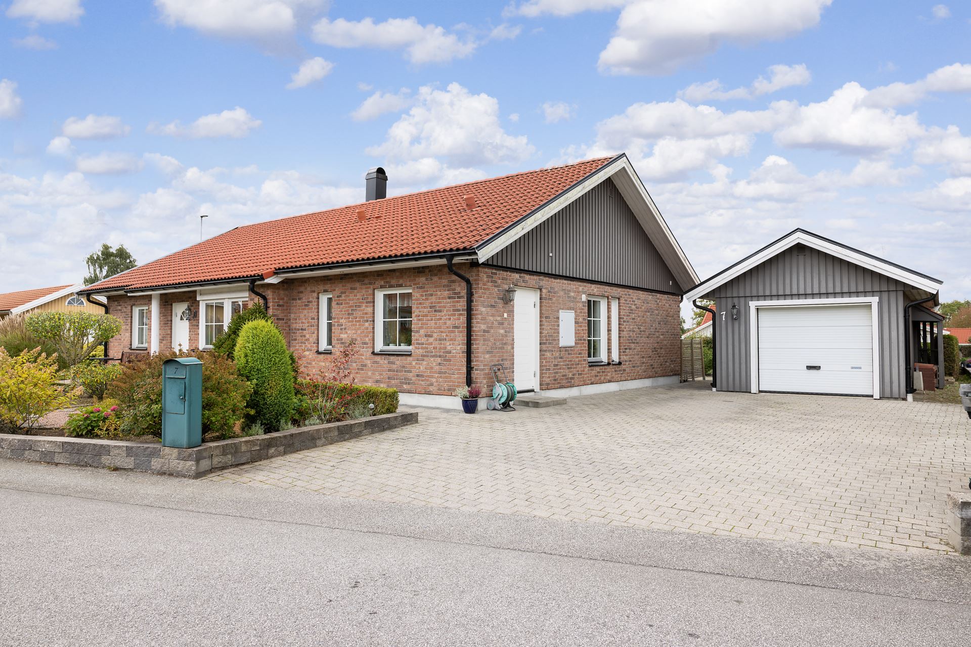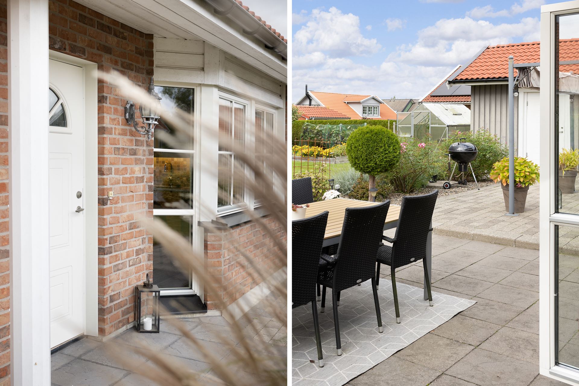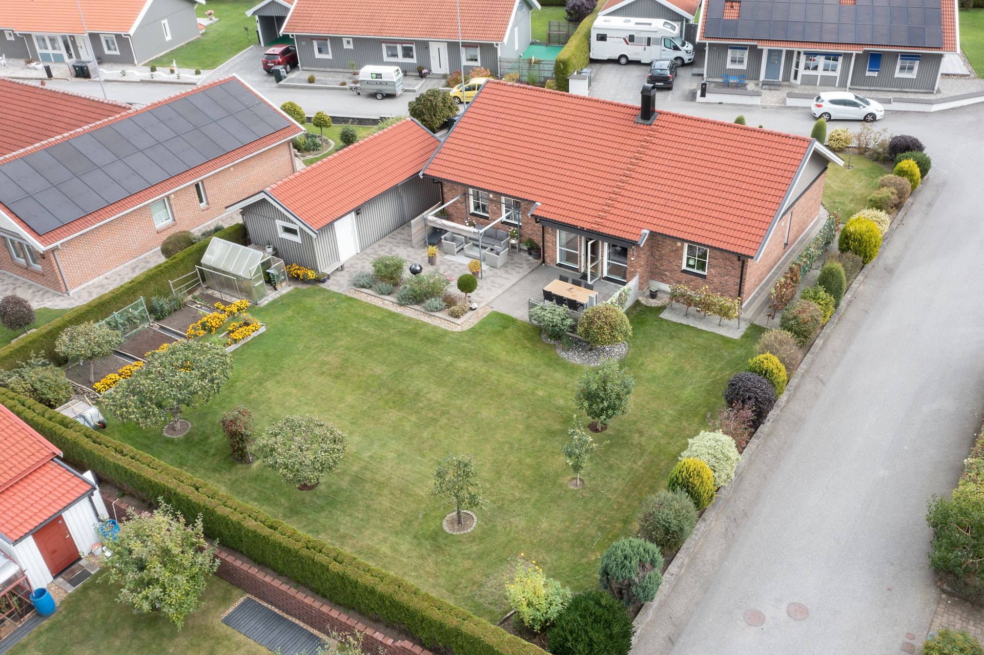 Trädgården är en grön oas med välskötta och prunkande planteringar och generös gräsmatta som skapar liv och färg under hela säsongen. Växthus och pallkragar ger möjlighet till egen odling och en uppvuxen häck ger ett naturligt insynsskydd. Den stora stenlagda uteplatsen bjuder in till samvaro, grillkvällar och lugna stunder i solen. Perfekt för både avkoppling och umgänge