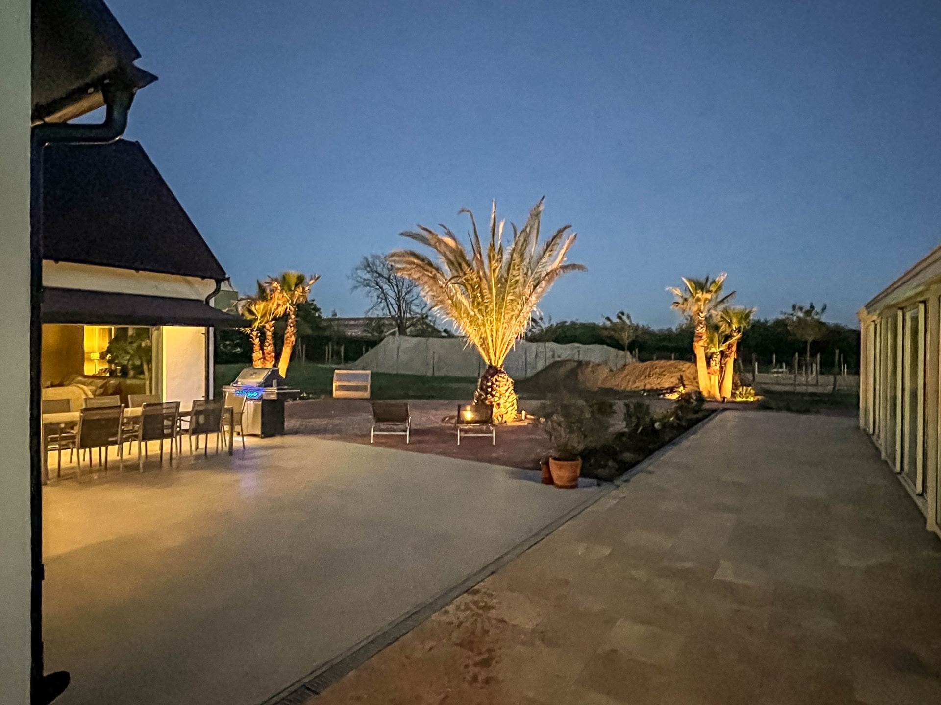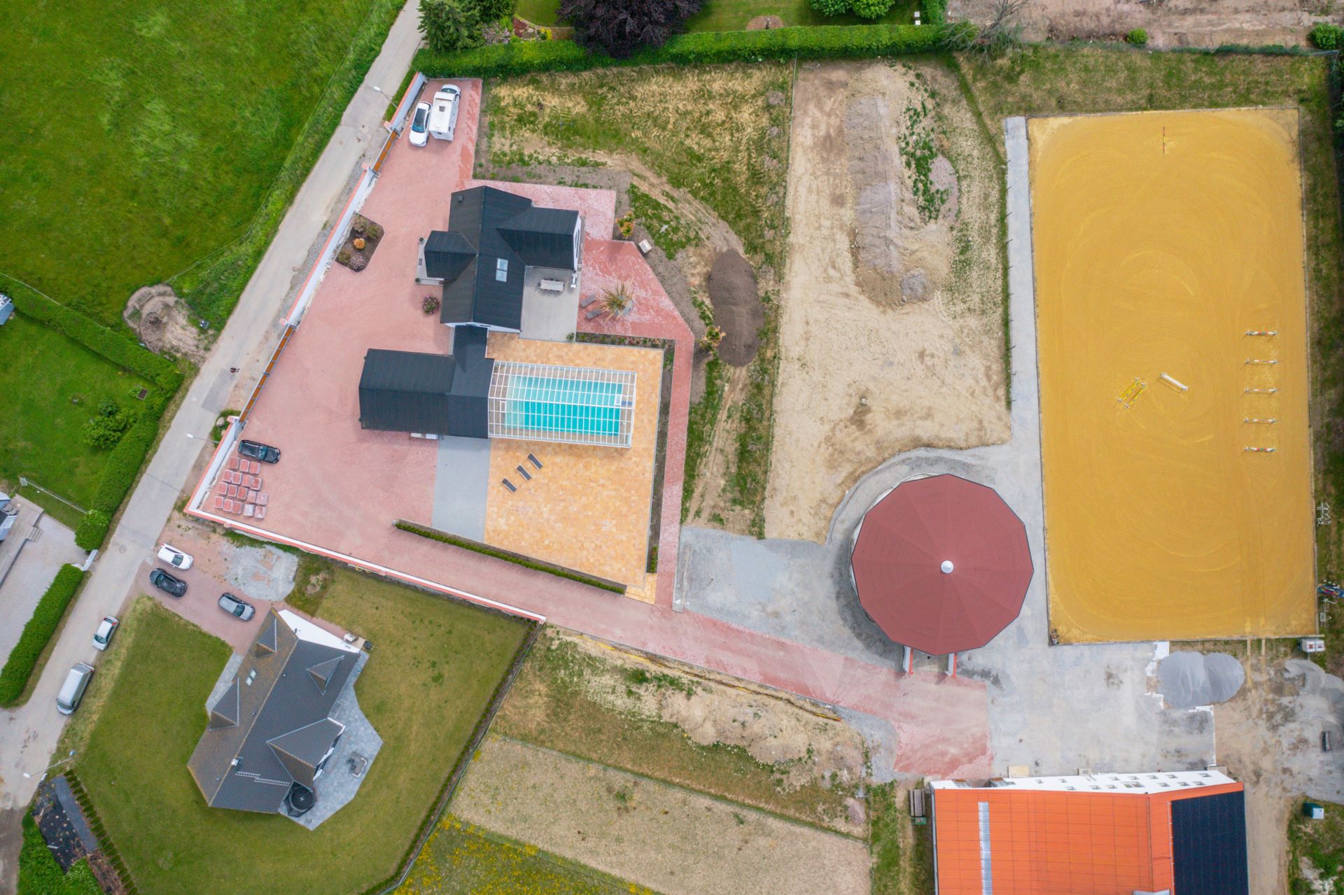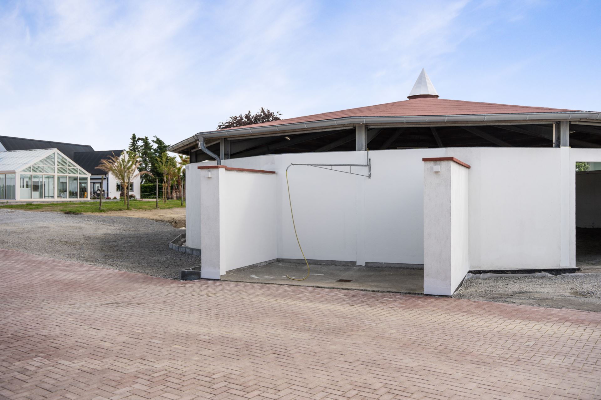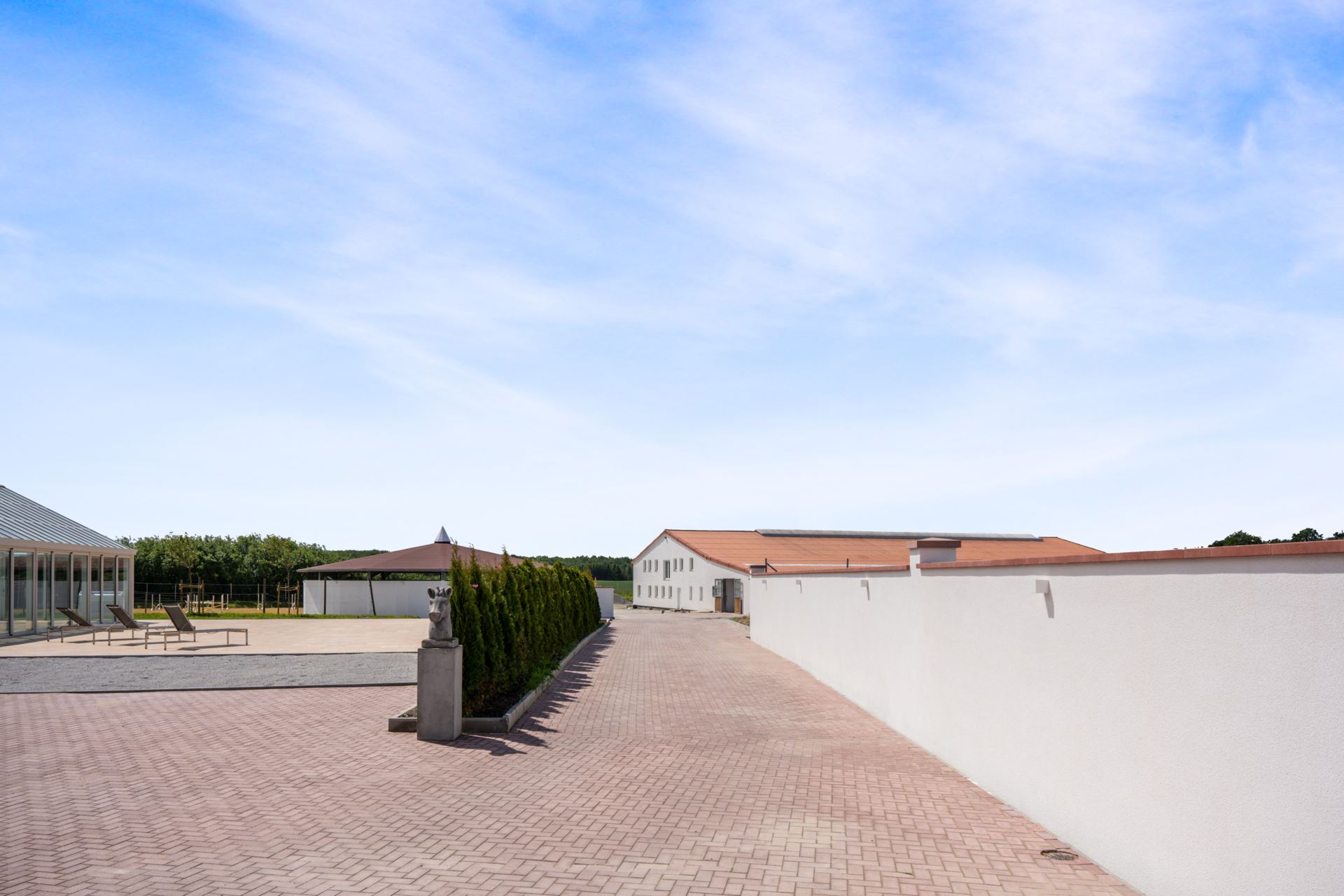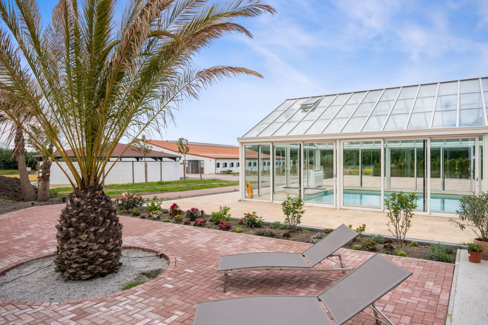 Utomhus väntar en välskött ridbana, longerhall och flertalet hagar, perfekt för både träning och rekreation. Den påkostade utemiljön är en oas i sig, med medelhavsinspirerade ytor av travertin, ståtliga palmer och prunkande planteringar.