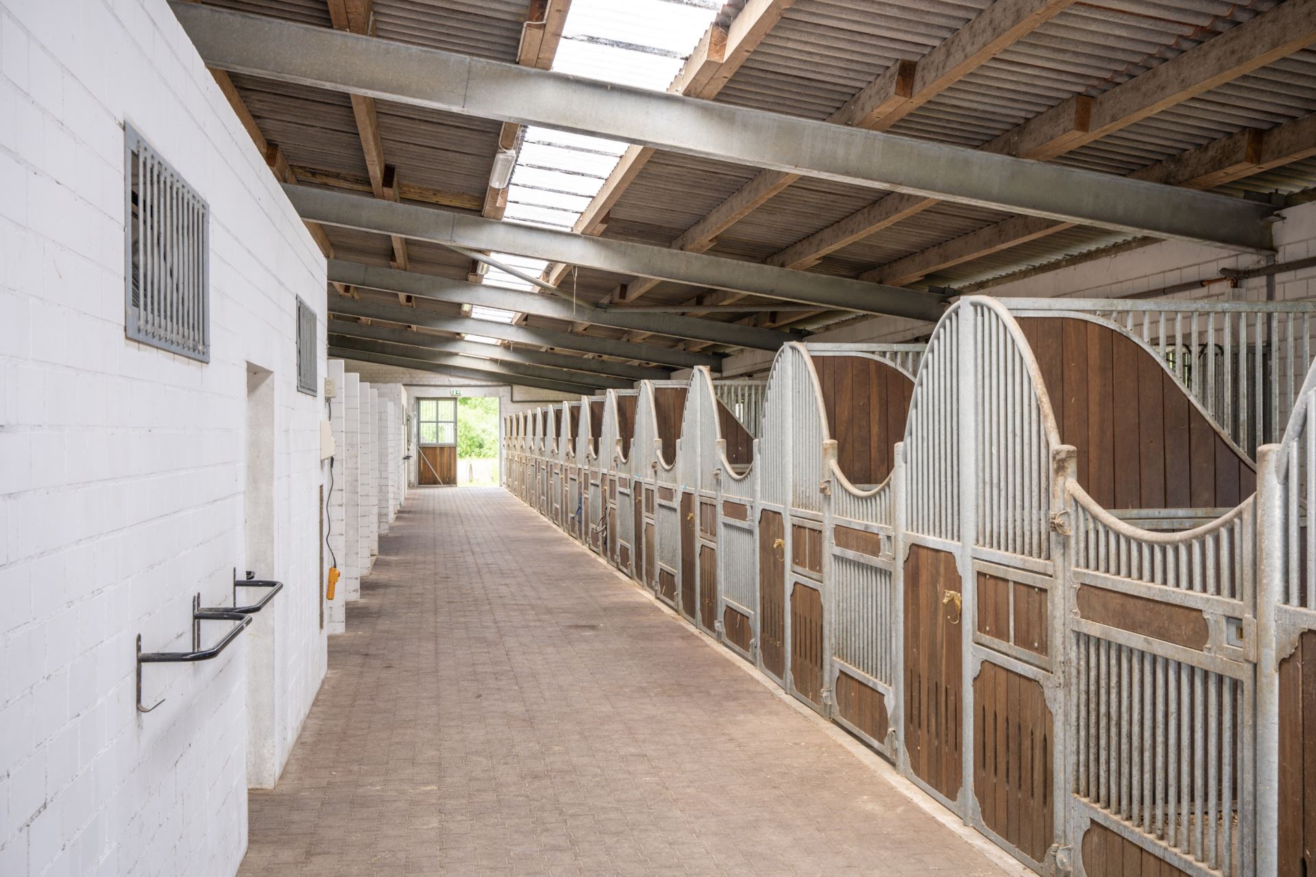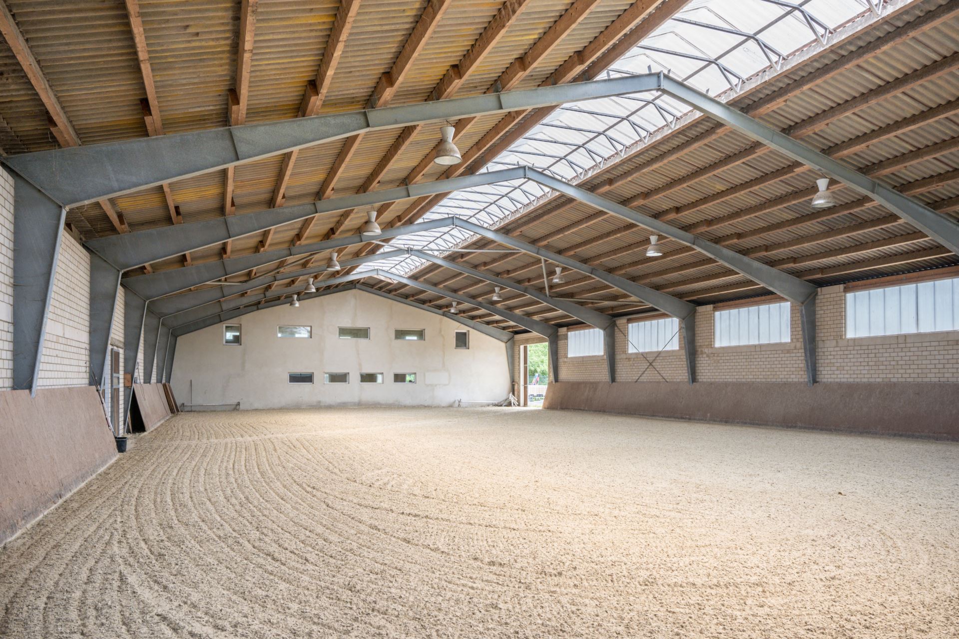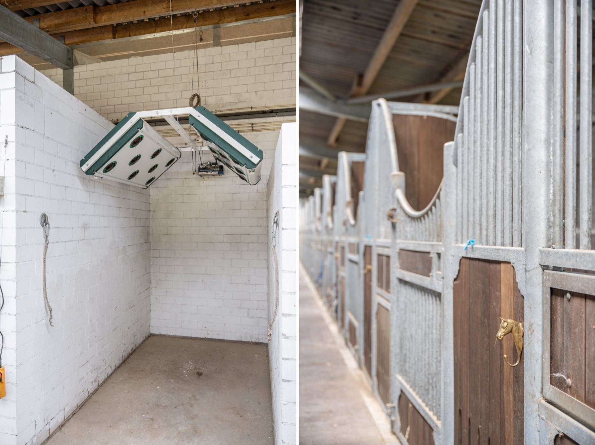Hjärtat i gården är det moderna stallet med 17 boxplatser, integrerat med ett rymligt ridhus (21x42 m) som kan förlängas vid behov. Dessutom finns här möjligheten att inreda bostad eller kontor på två plan om totalt 240 kvm. Stallet är utrustat för att förenkla hästlivet, med två sadelkammare, spolplattor, solarium och andra bekvämligheter.