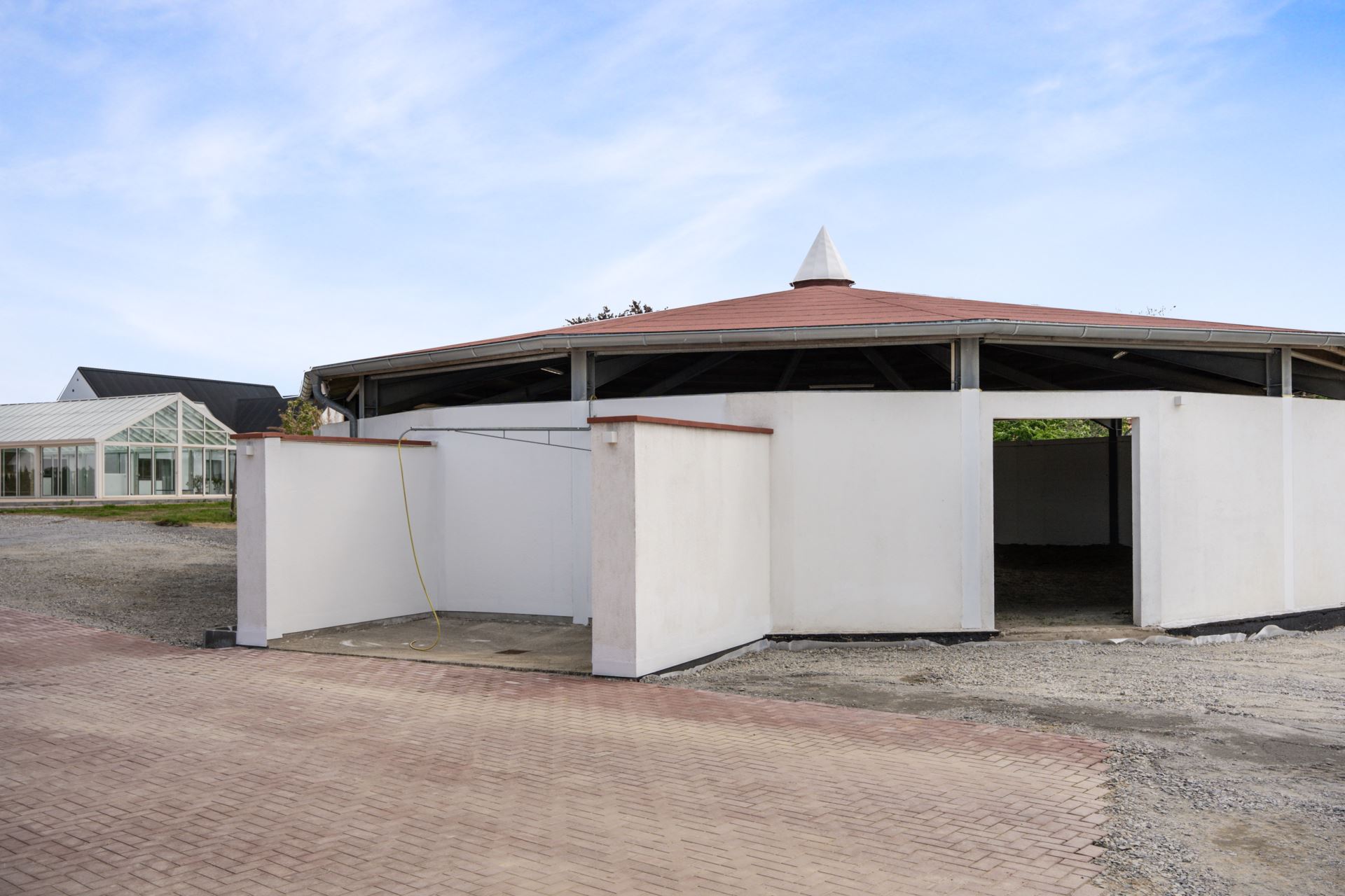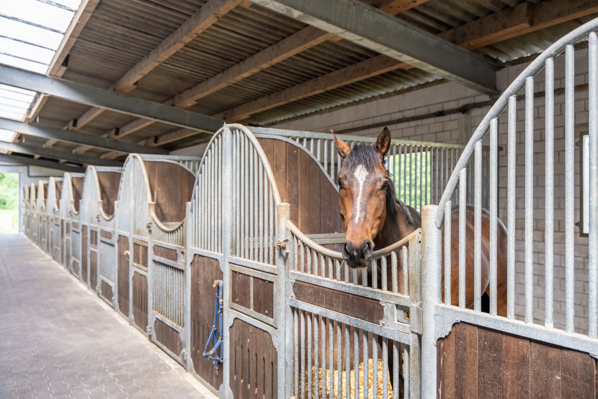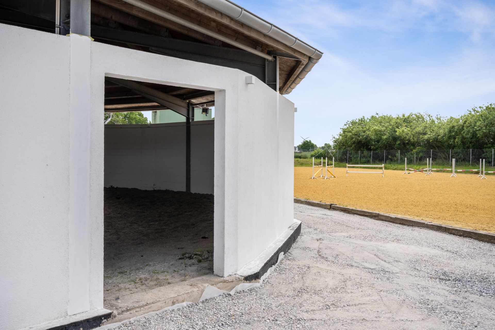 Hjärtat i gården är det moderna stallet med 17 boxplatser, integrerat med ett rymligt ridhus (21x42 m) som kan förlängas vid behov. Dessutom finns här möjligheten att inreda bostad eller kontor på två plan om totalt 240 kvm. Stallet är utrustat för att förenkla hästlivet, med två sadelkammare, spolplattor, solarium och andra bekvämligheter.