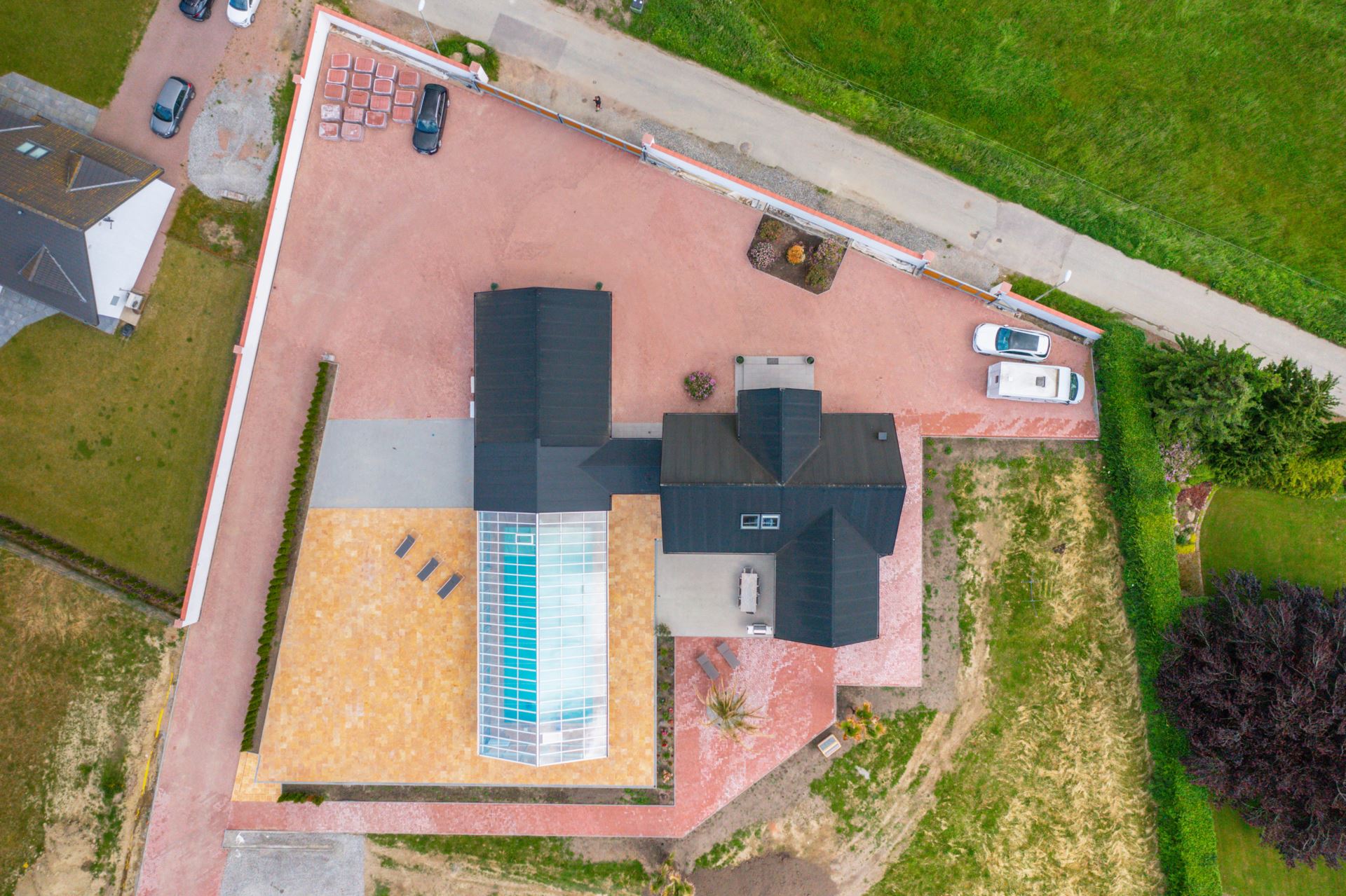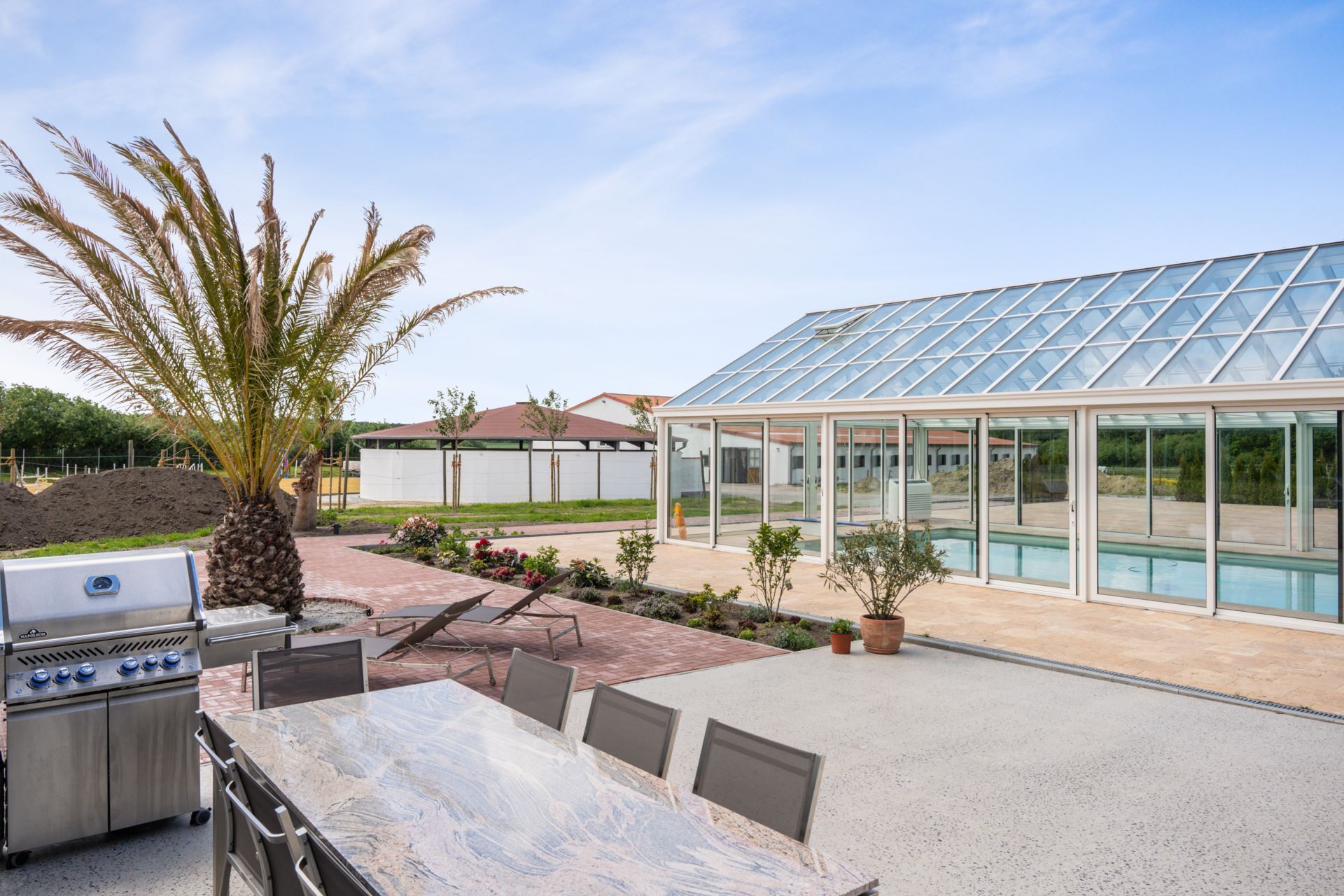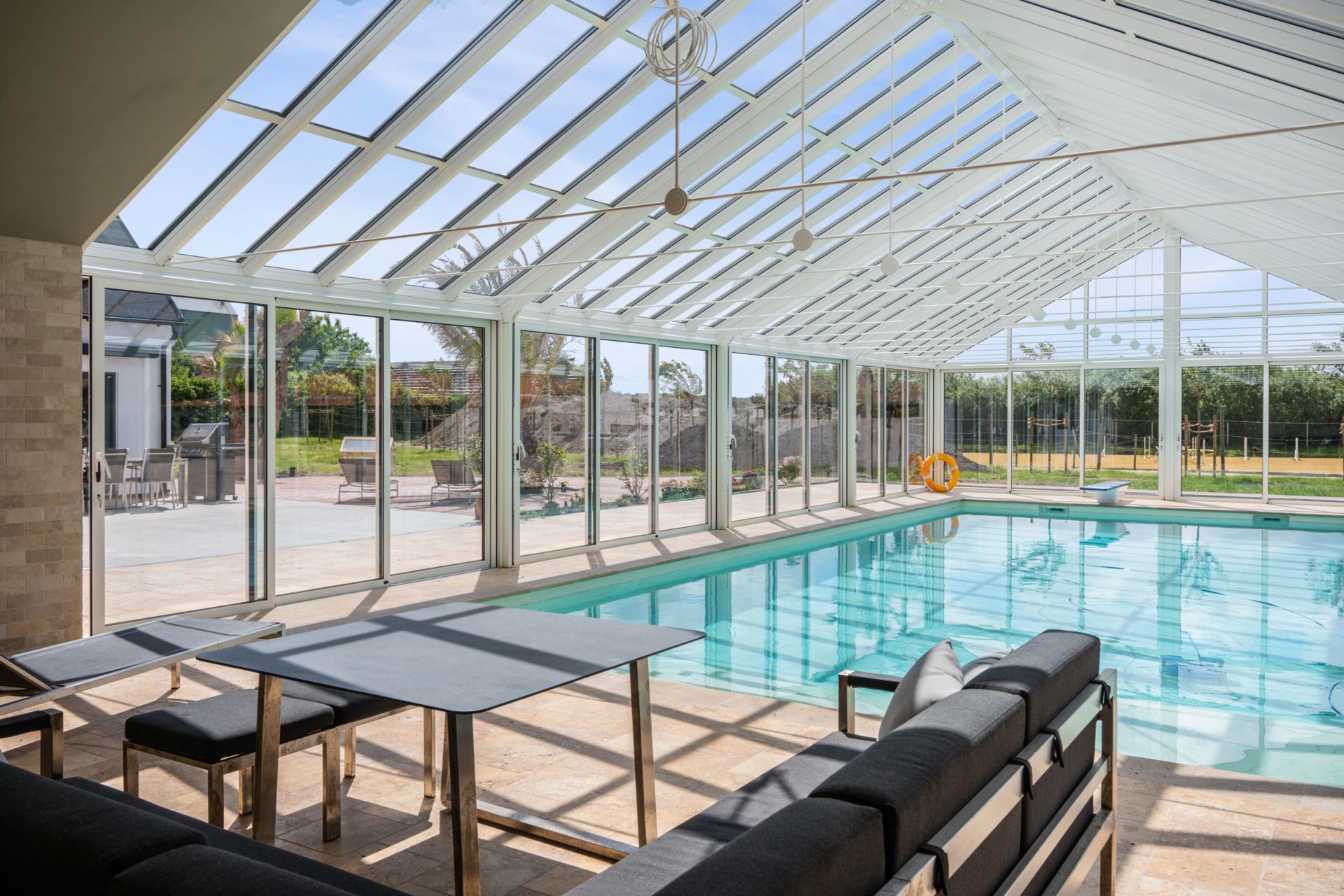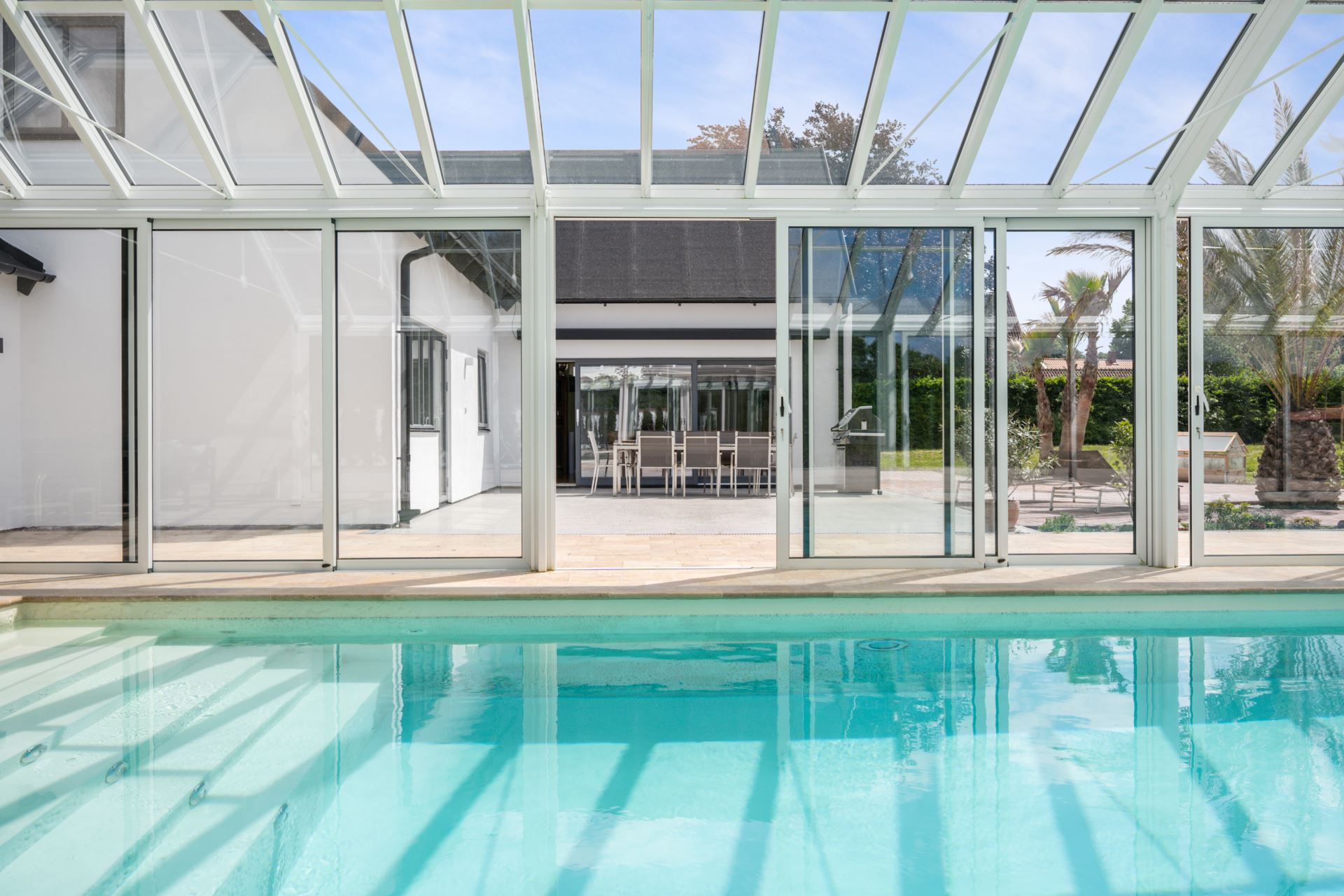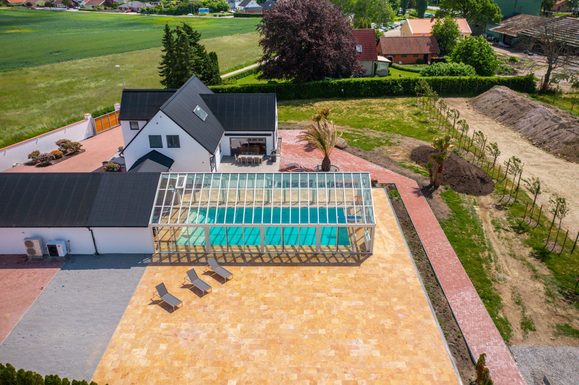 Boningshuset är en elegant stenbyggnad med generösa sällskapsytor, delvis öppet i nock, flera sovrum och ett kök i öppen planlösning som bjuder in till gemenskap. Ett integrerat dubbelgarage och ett exklusivt poolhus på hela 160 kvm sätter extra guldkant på boendet.