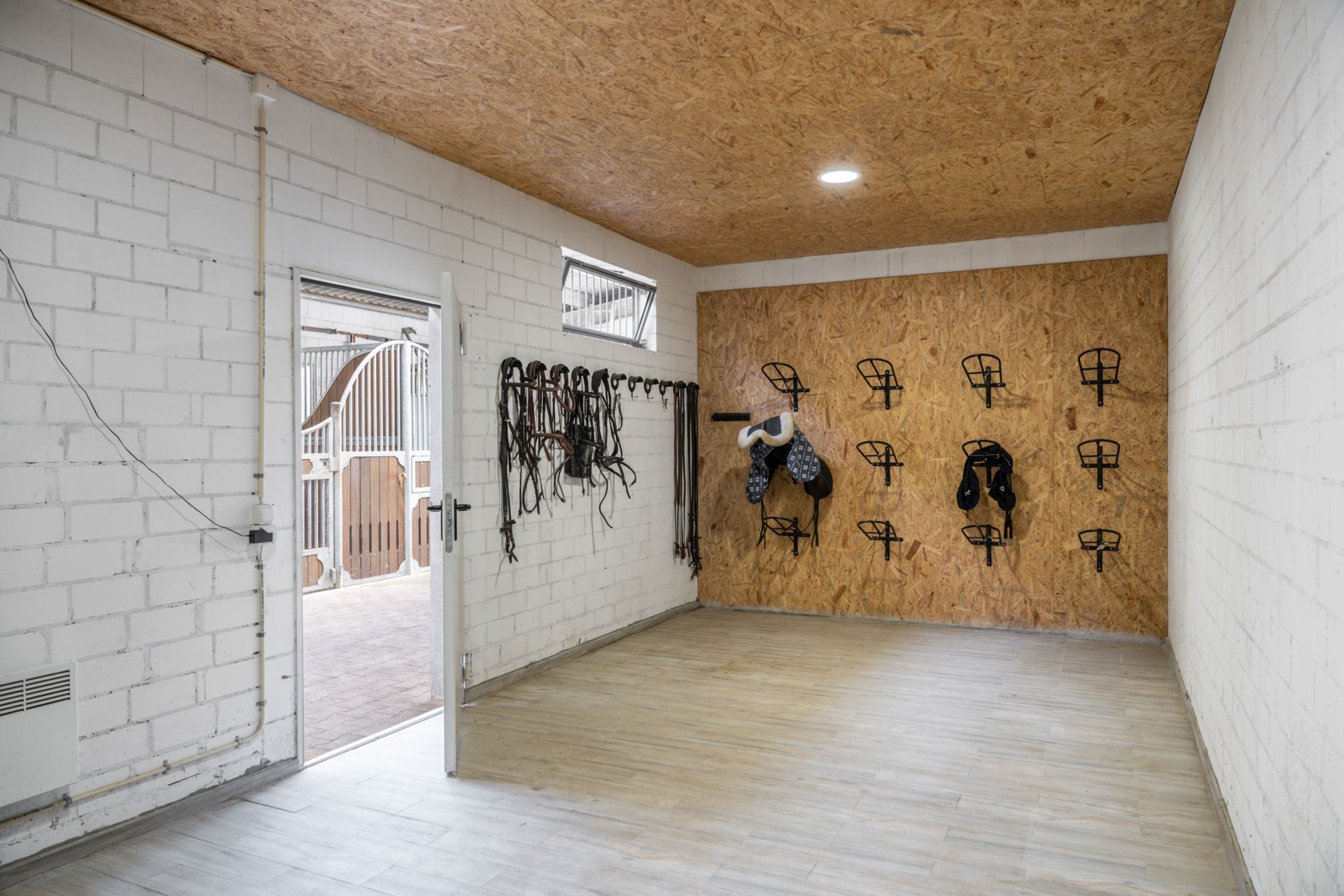 Garage ca 80 kvm. Poolhus ca 160 kvm med pool 6x13 m. Poolhuset värms upp via luft/vattenvärme. Stall sammanbyggt med ridhus. Här erbjuds 17 st boxar, två sadelkammare, två spolplattor, tre uppställningsplatser för sadling mm samt ett solarium. Ridhuset mäter 21x42 m med möjlighet att förlänga. Ridbana 30x70 m. Longerhall 18 m, förberedd för skrittmaskin.