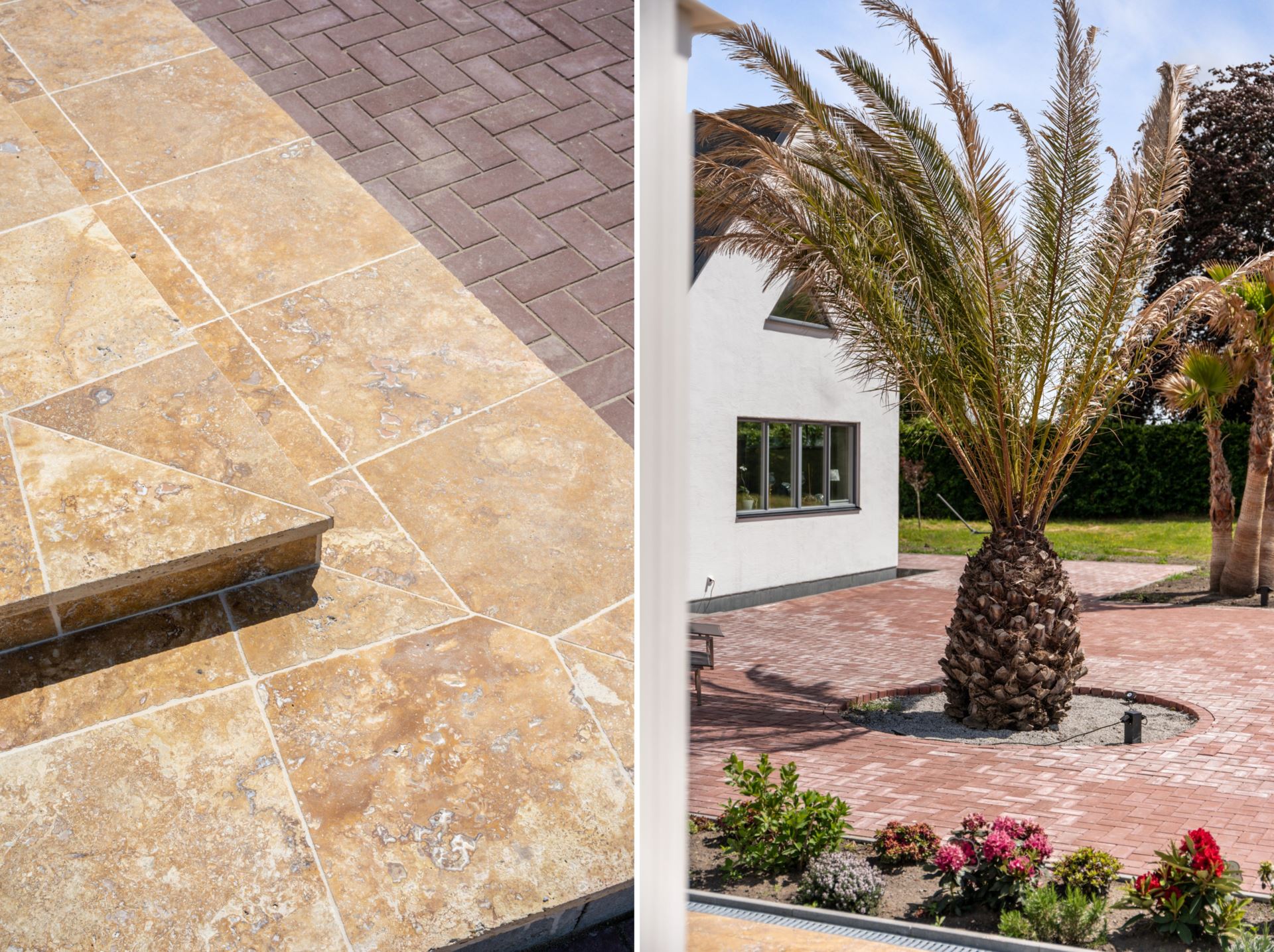 Travertin plattor bland annat runt poolhus, ca 400 kvm.