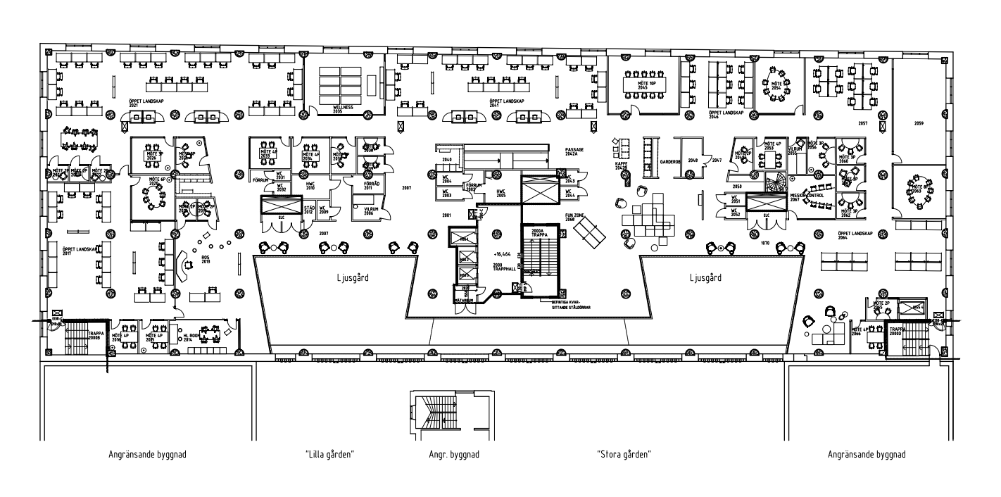 På Gullbergs Strandgata 15 finns allt som behövs för en smidig och trivsam arbetsdag. I huset finns två restauranger och i området finns även gym, padelbana och ett utegym – perfekt för både lunchpausen och friskvården. Den grönskande gården bjuder dessutom in till arbete utomhus när vädret tillåter. Området erbjuder goda parkeringsmöjligheter, cykelgarage med omklädningsrum och dusch. Med endast 5 minuters promenad till Centralstationen finns här goda kommunikationer med regionaltåg, bussar och spårvagnar.