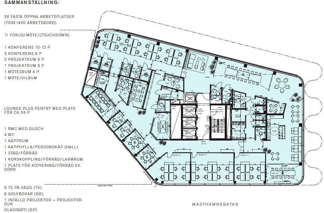 Lokalen erbjuder en genomtänkt och blandad planlösning med en hög standard. Lokalen har en blaning av kontorsrum i olika storlekar, konferensrum, öppna ytor samt ett stort kök.