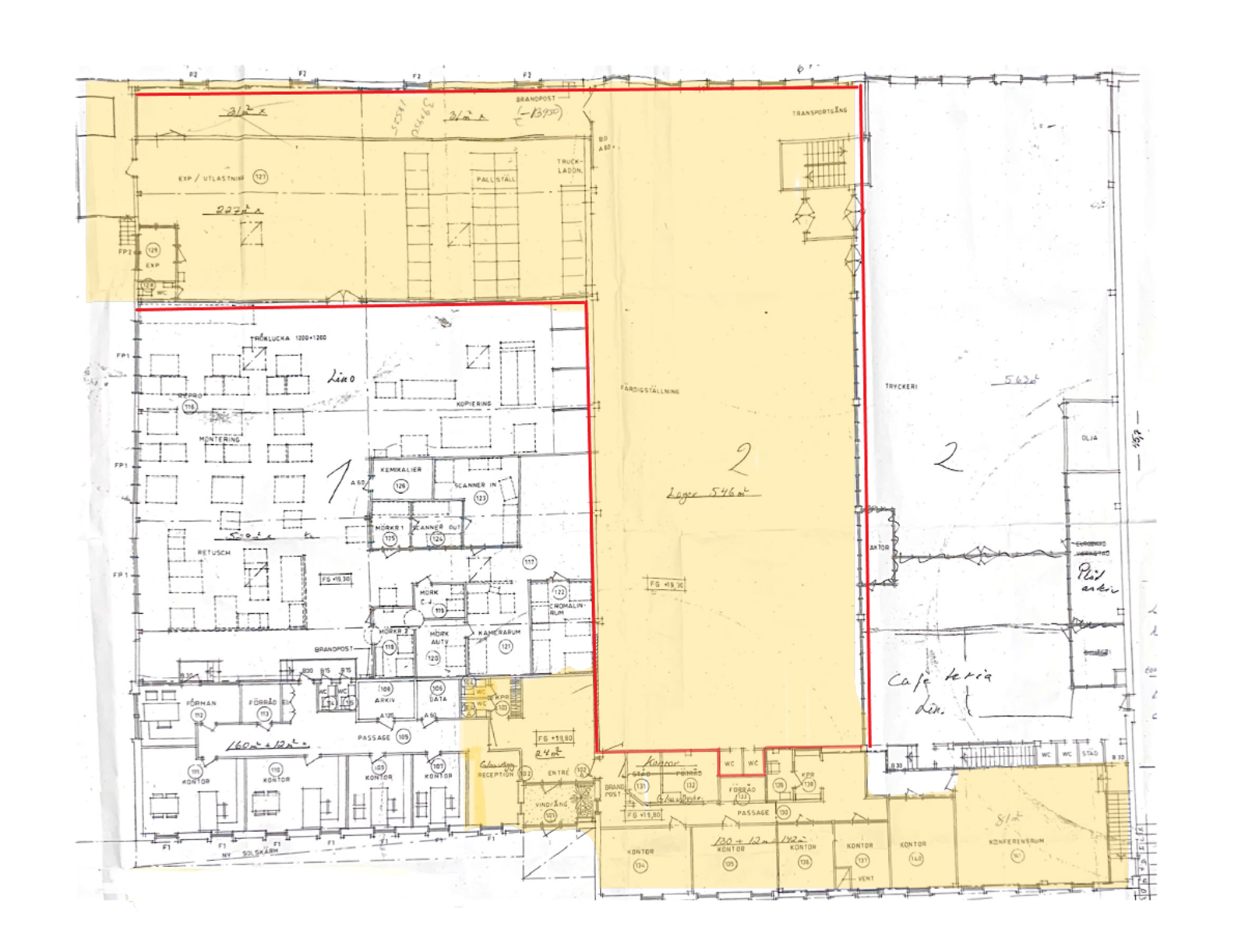 Invändigt erbjuder lokalen 846 kvm lager fördelat på två ytor (546 + 300 kvm). I den större lagerytan finns personalytor med pentry och kontorsplatser (AC för behagligt klimat). Port med lastkaj gör det enkelt att lasta ut och in varor.