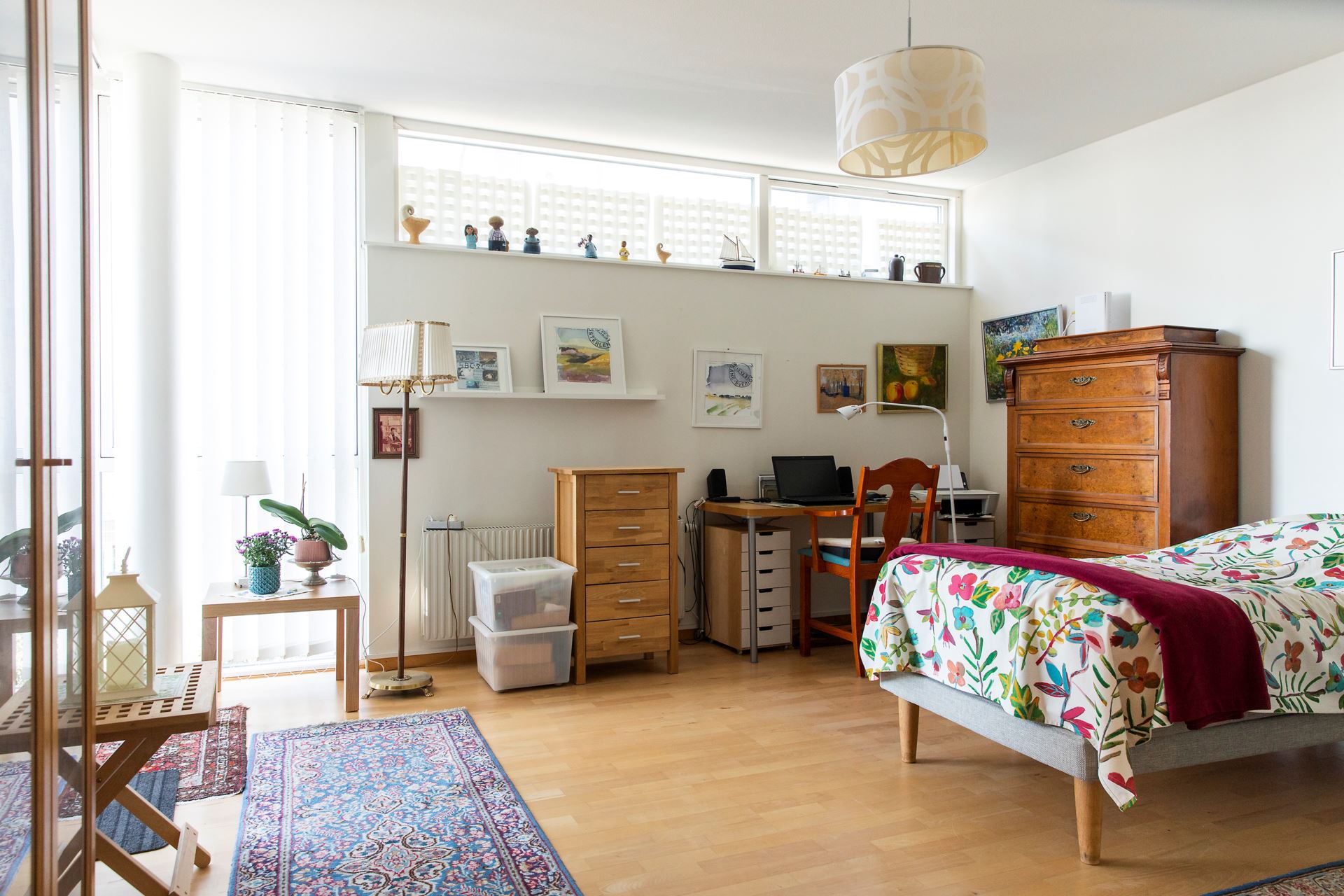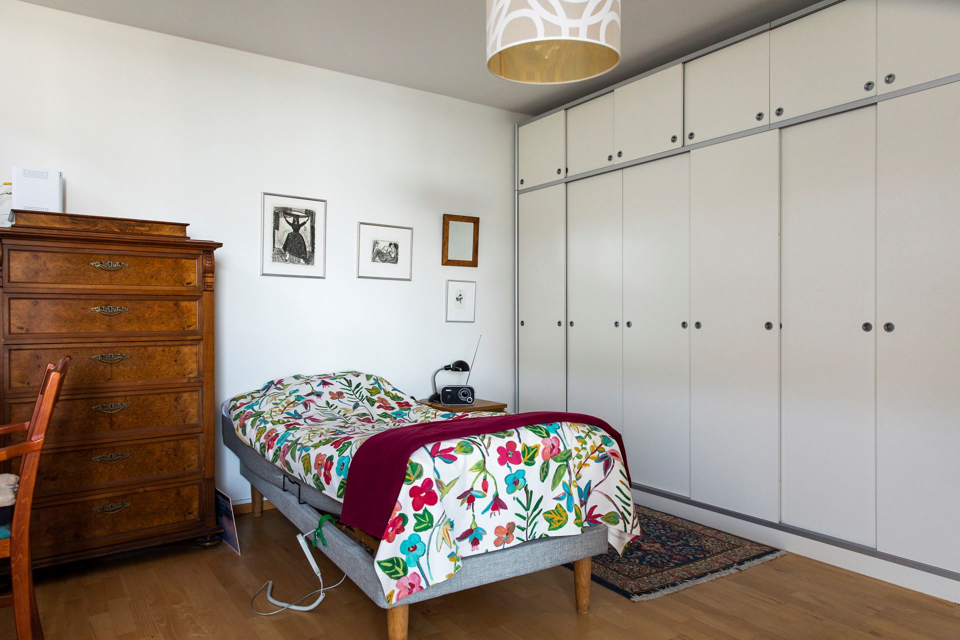 Våningens rofyllda sovrum är ett rum att trivas i. Rummet är lättmöblerat med utrymme för säng, garderober och skrivbord. Även detta rum erbjuder liksom vardagsrummet en svårslagen vy över sundet med eftermiddags- och kvällssol.