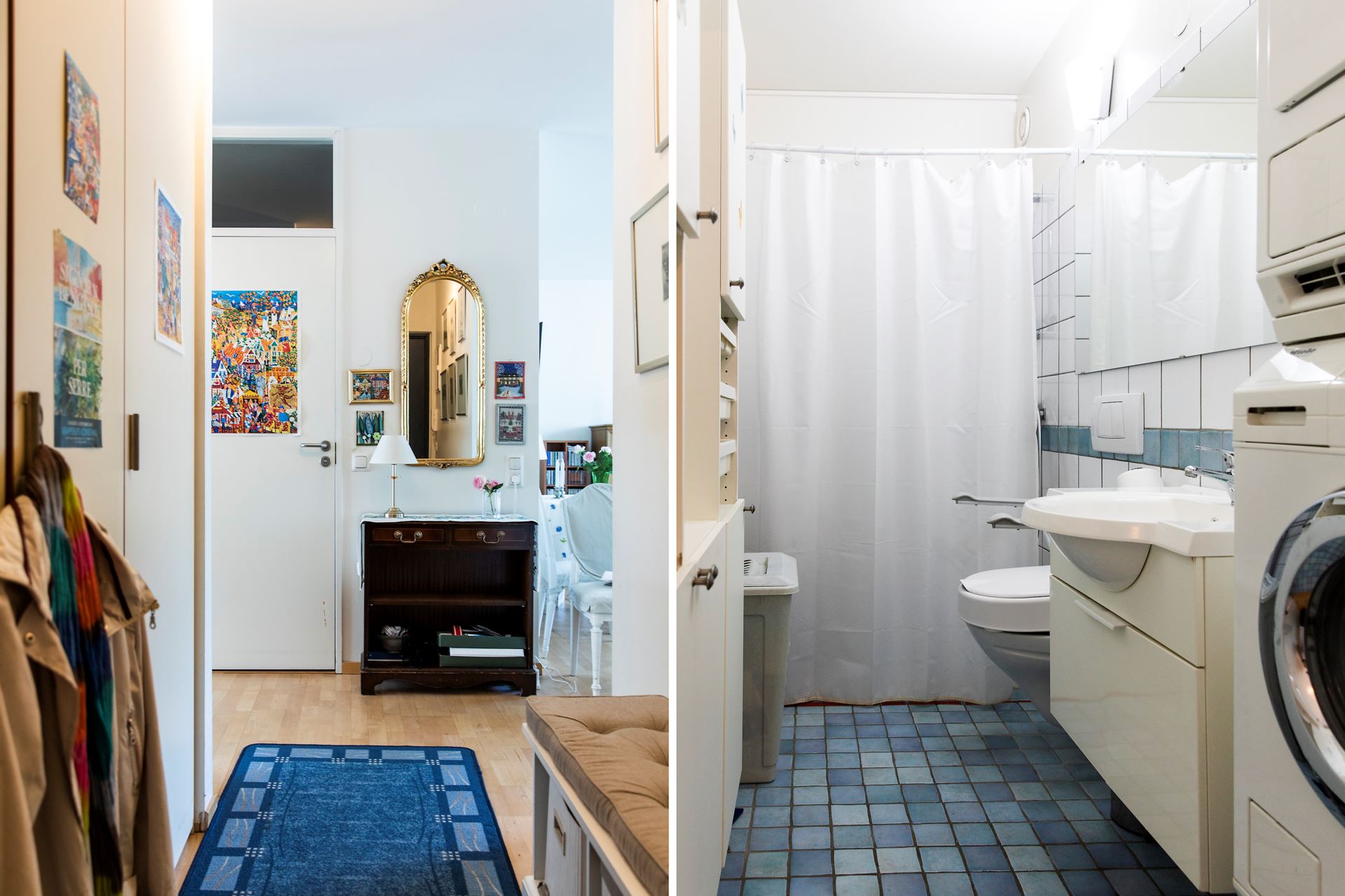 En trivsam hall med goda förvaringsmöjligheter i form av flera rymliga garderober med plats för stort och smått välkomnar dig till Stuvaregatan 9. På golvet ligger vacker parkett vilken är genomgående för hela bostaden.