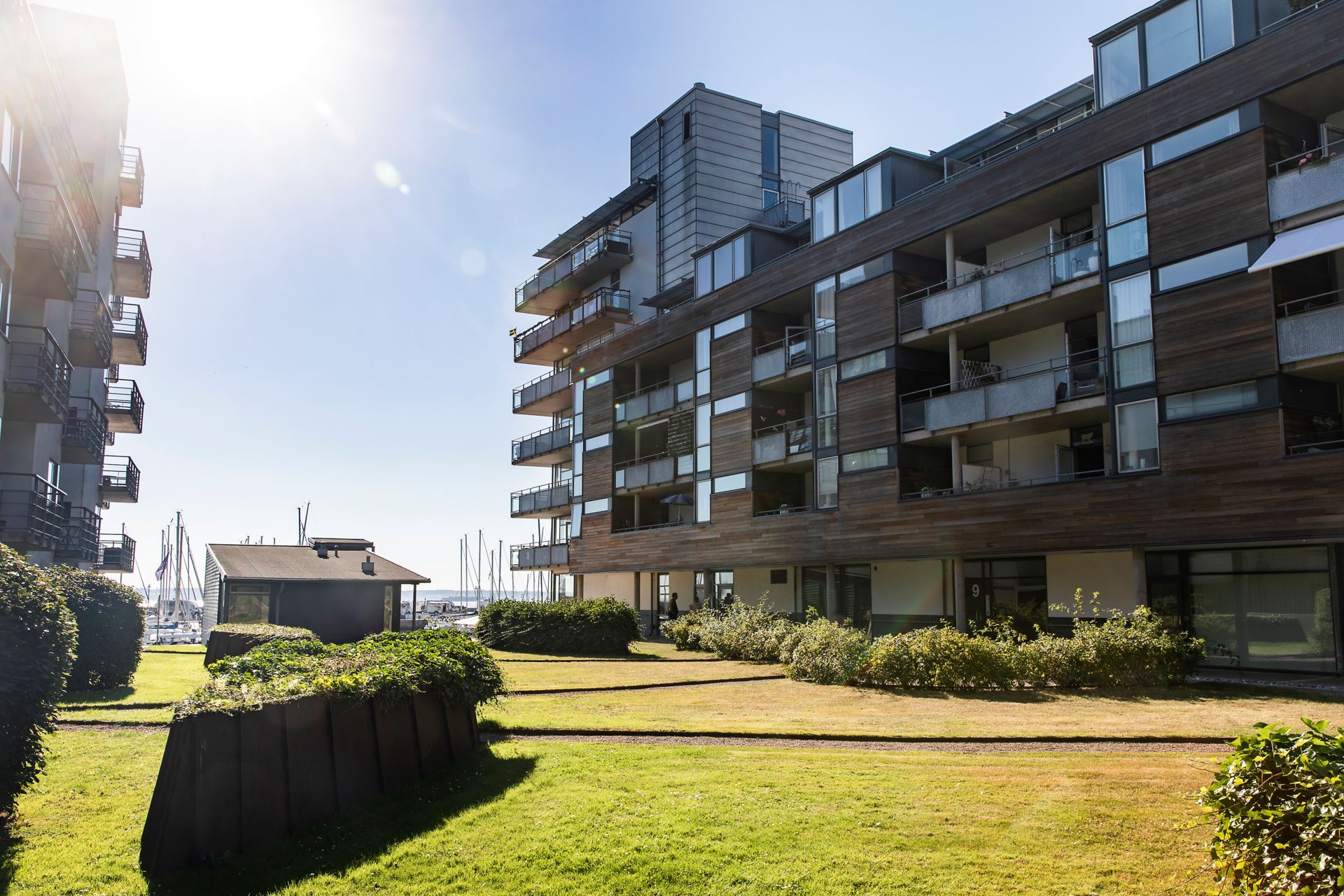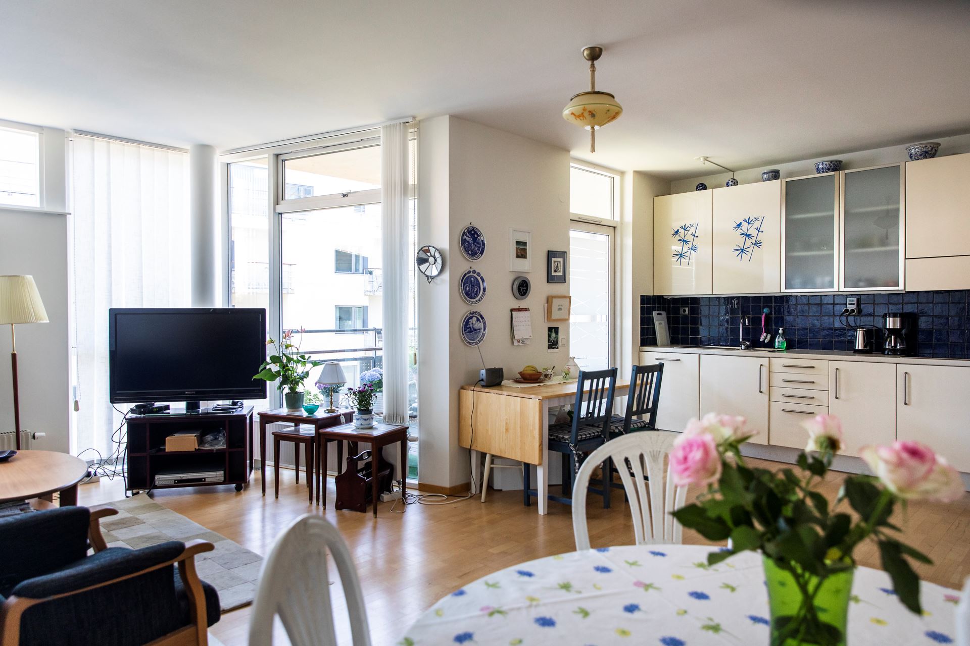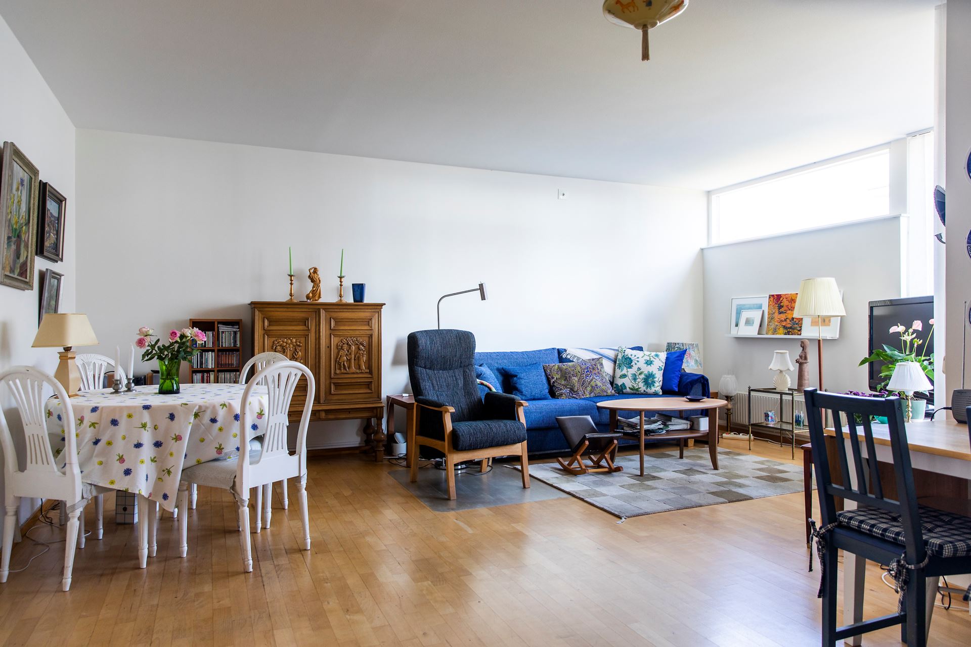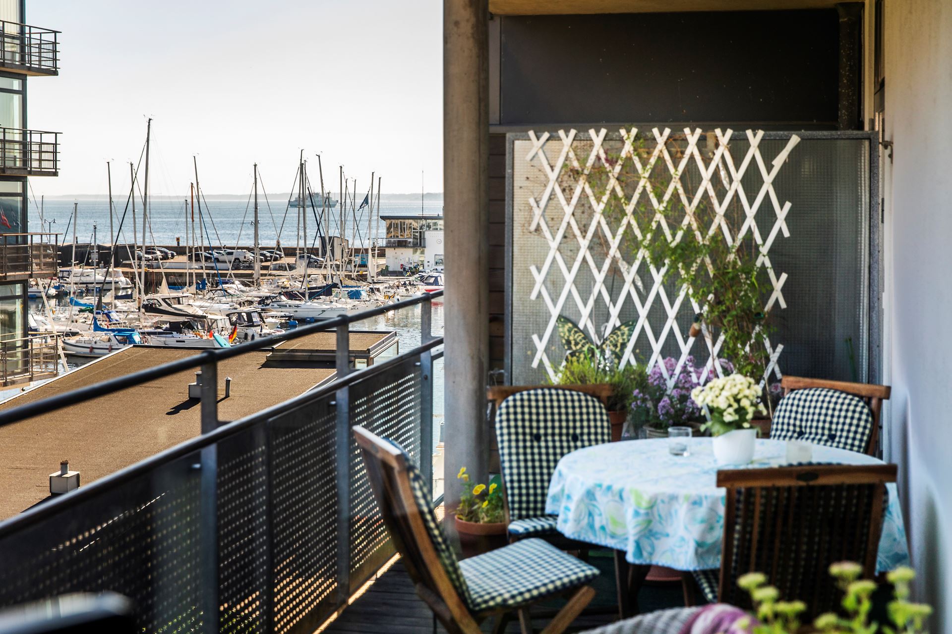 Det rymliga vardagsrummet erbjuder fina sociala sällskapsytor och det finns gott om plats för både soffgrupp, fåtöljer samt tv-möblemang. Den underbara balkongen med magnifik utsikt över Öresund och Danmark gör rummet till något alldeles extra. Här kan du med fördel njuta av morgonsolen från första parkett.