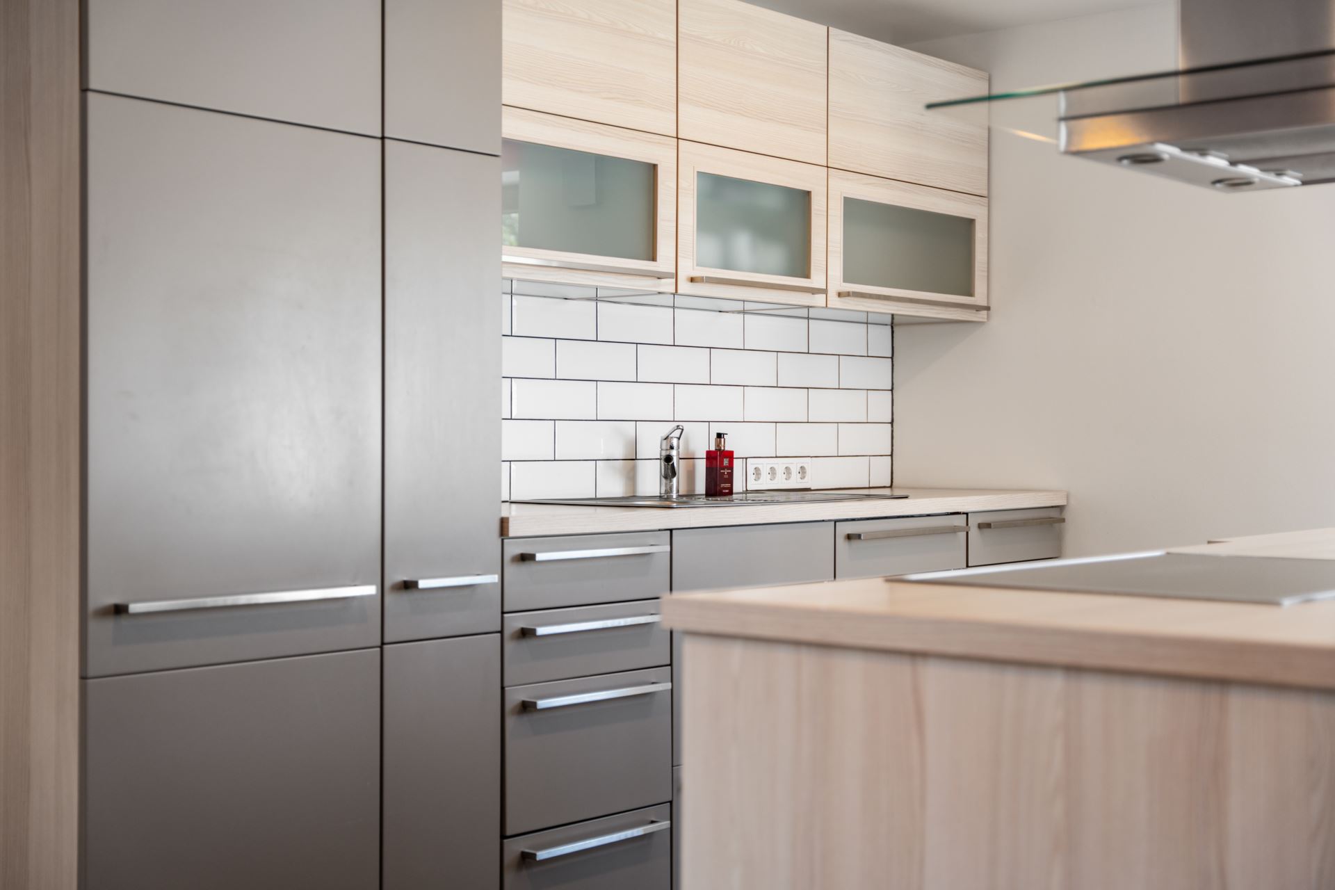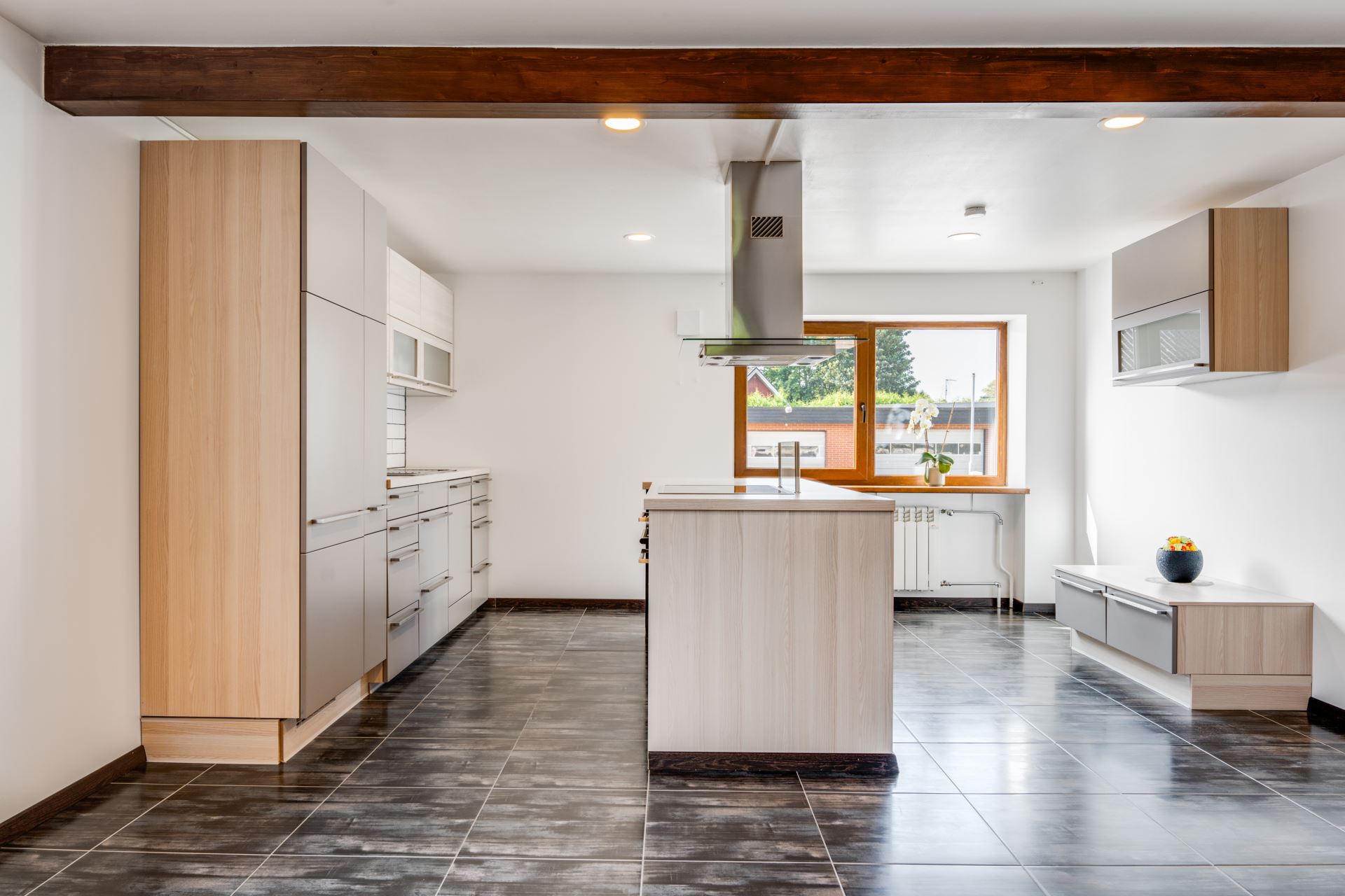 Vidare in väntar kök med luftiga kvadrat och en elegant köksinteriör med ypperlig förvaring bakom släta luckor i grått/ljust trälaminat med accentuerande vitrinskåp samt stilrena arbetsytor i ljust trälaminat med vitt kakel ovan. Den maskinella utrustningen består av integrerad kyl/frys och integrerad diskmaskin. Underbar, luftig köksö med varmluftsugn, spishäll ( ca 1 år gammal ) och fläkt samt ytterligare förvaring kompletterar miljön. Enhetlig klinker liksom i hall möter väggar i vitt, ljusbringande fönsterparti och infällda spotlights i tak. Stora ytor ger plats för ett flertal möbleringsalternativ. Övriga vitvaror ca 10 år gamla frå Siemens.