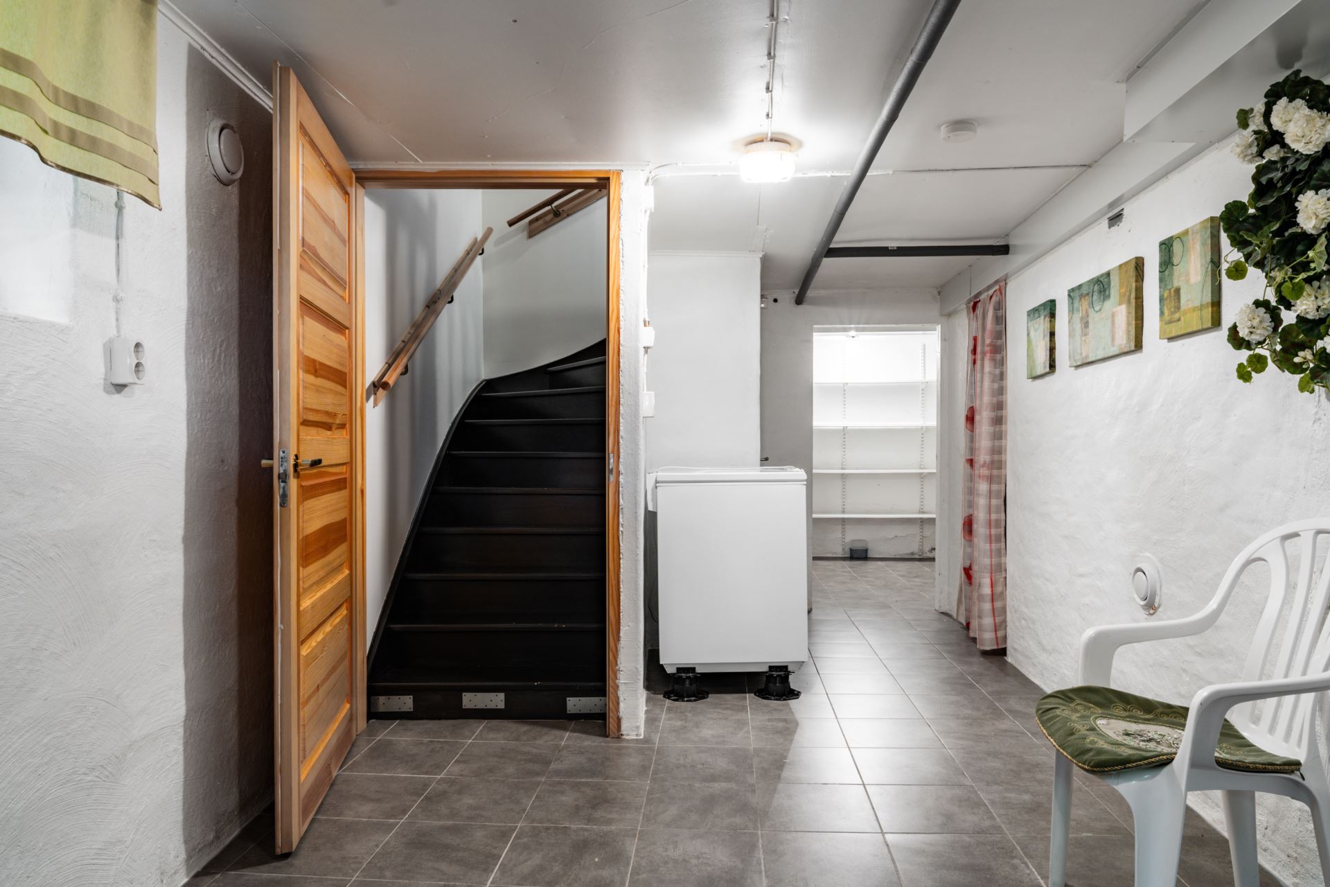 På övervåningen hittar du ytterligare ett generöst allrum – perfekt som lekrum, tv-rum eller ett extra utrymme för umgänge. Här finns oändliga möjligheter att anpassa ytorna efter just dina behov. För extra praktiska bekvämligheter finns dessutom en källare utrustad med tvättstuga, vilket underlättar vardagen på ett smidigt sätt.