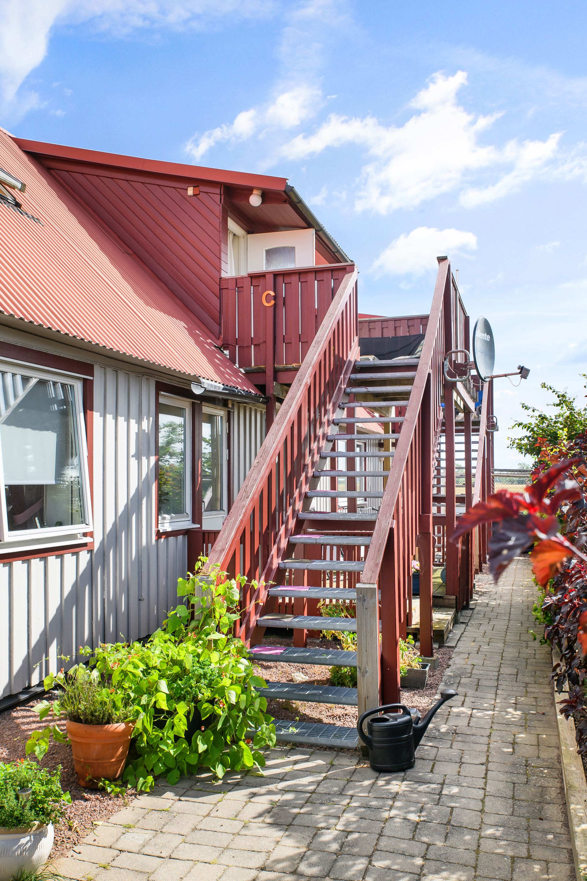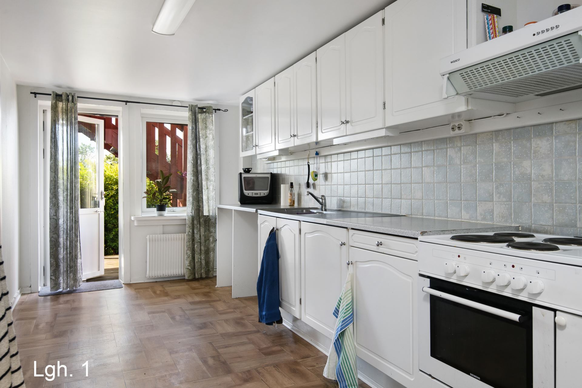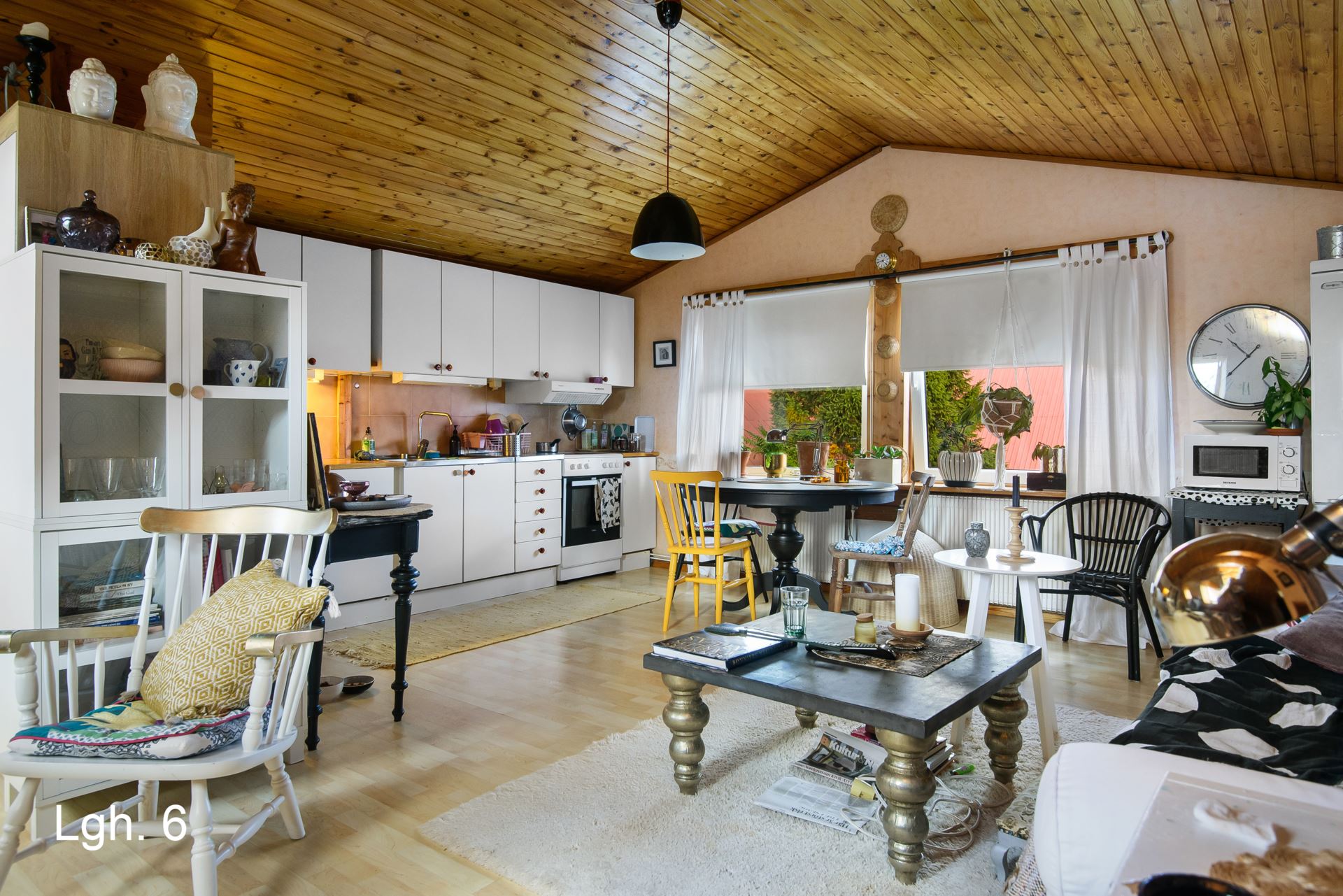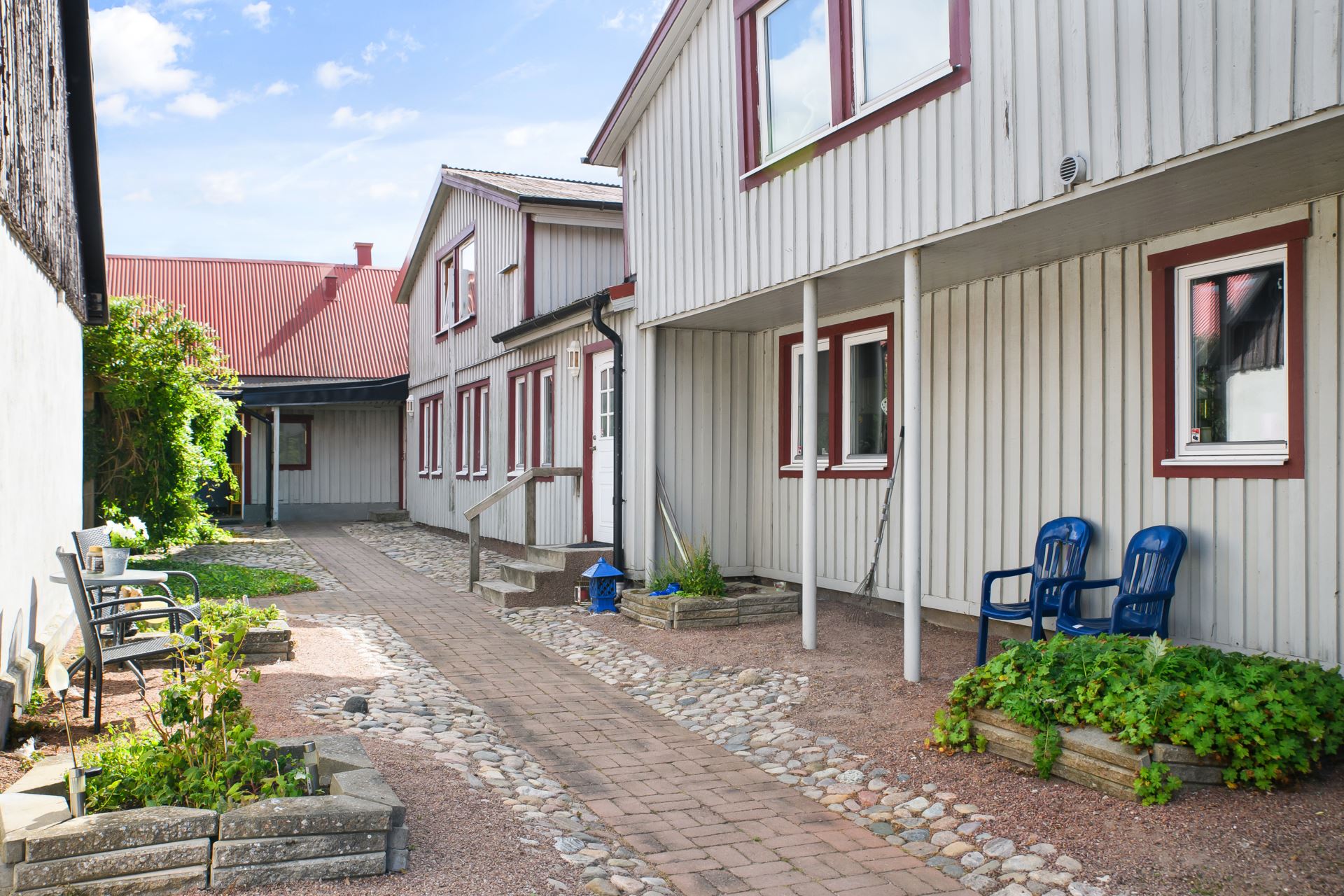 Länga i två plan med totalt fem lägenheter där två idag är sammanslagna. Bottenvåning med två tvårumslägenher samt en trerummare. Övre plan med två vindsvåningar om två rum. I gott bruksskick. Nedre plan B -lgh 1 - tvårummare om 73,4 kvm - hyra 6700 kr A - lgh 2 - stor lägenhet om 217kvm i två plan ( två sammanslagna lägenheter som kan delas) - hyra 14576 kr Övre plan C- lgh 3 - tvårummare om 75 kvm - hyra 6700 kr Övre plan D- lgh 4 - tvårummare om 85 kvm - hyra 6700 kr