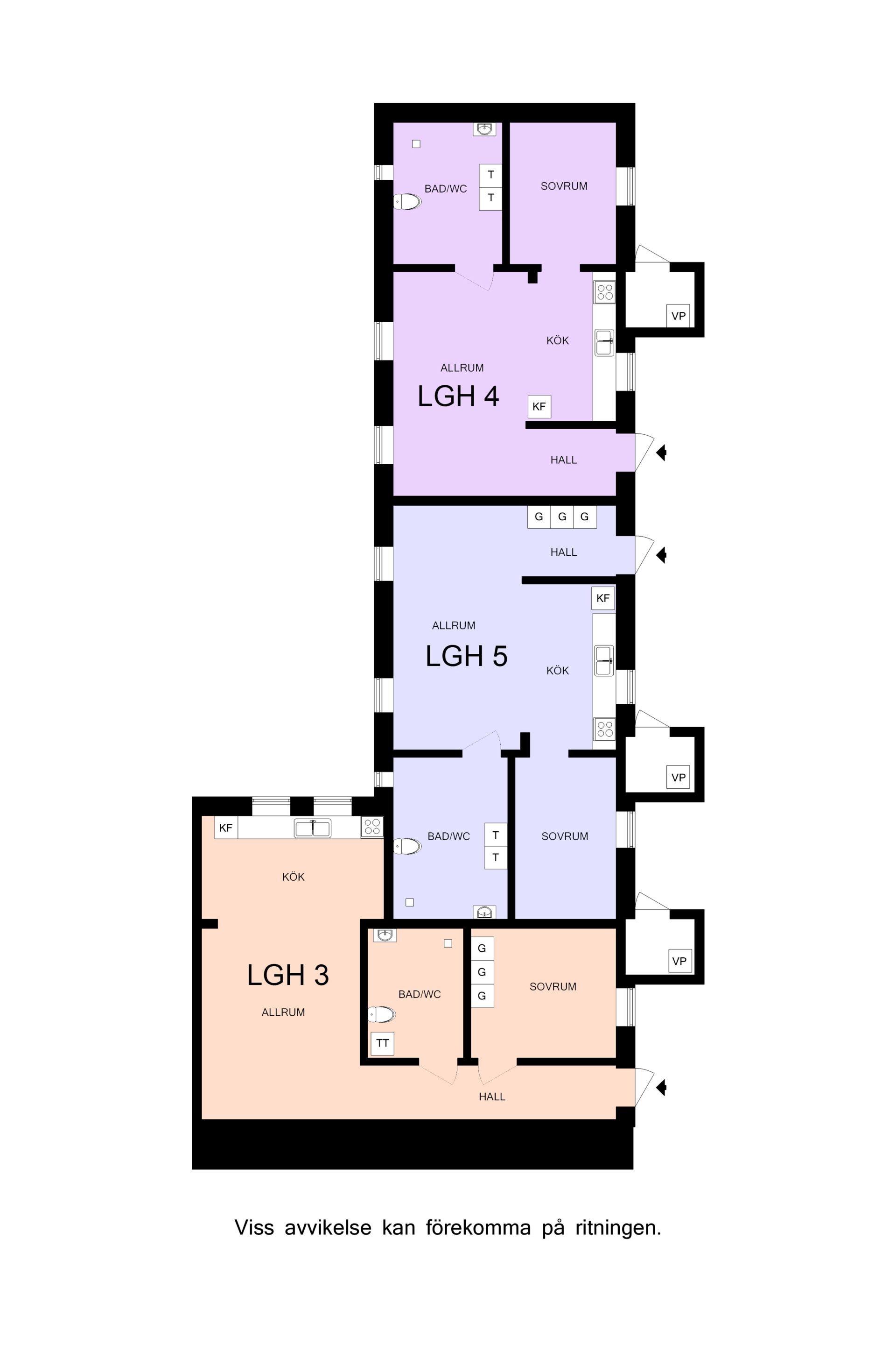 Länga renoverad med tre stora tvårummare med väl tilltagna badrum. Alla i mycket gott skick. E - lgh 4 - 68.1 kvm - hyra 6716 kr. F - lgh 5 - 65.1 kvm - hyra 6554 kr. G - lgh 6 - 60 kvm - hyra 6168 kr. Dessa lägenheter betalar sin egen el och uppvärmning.