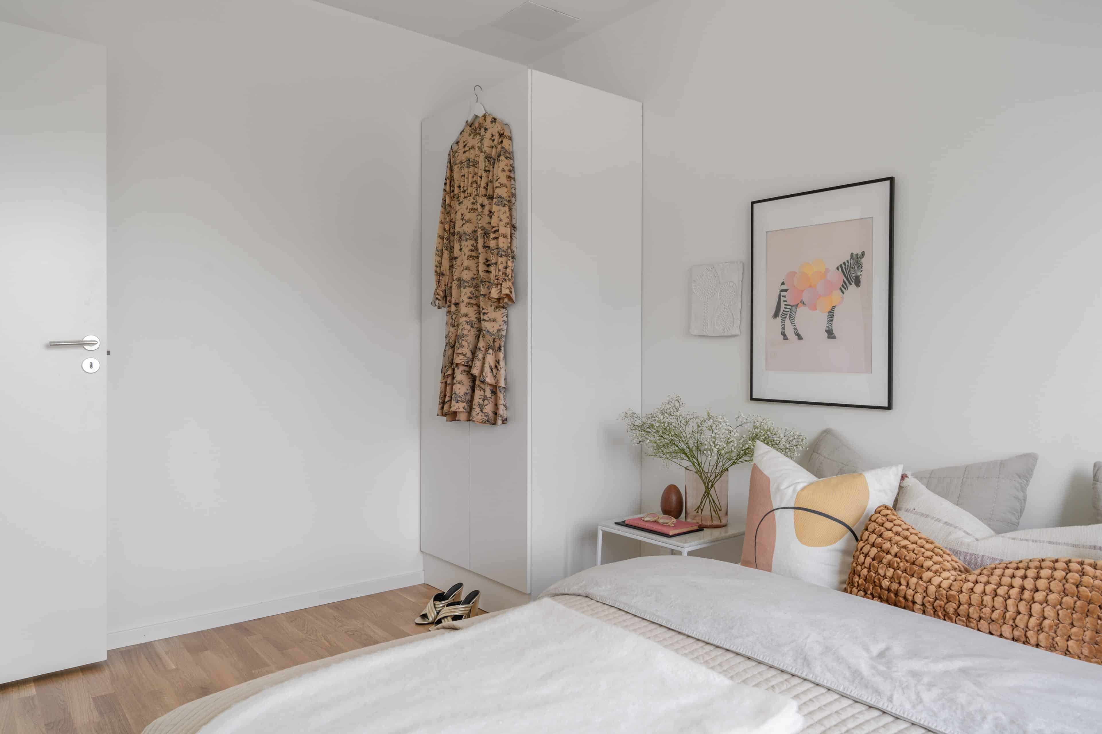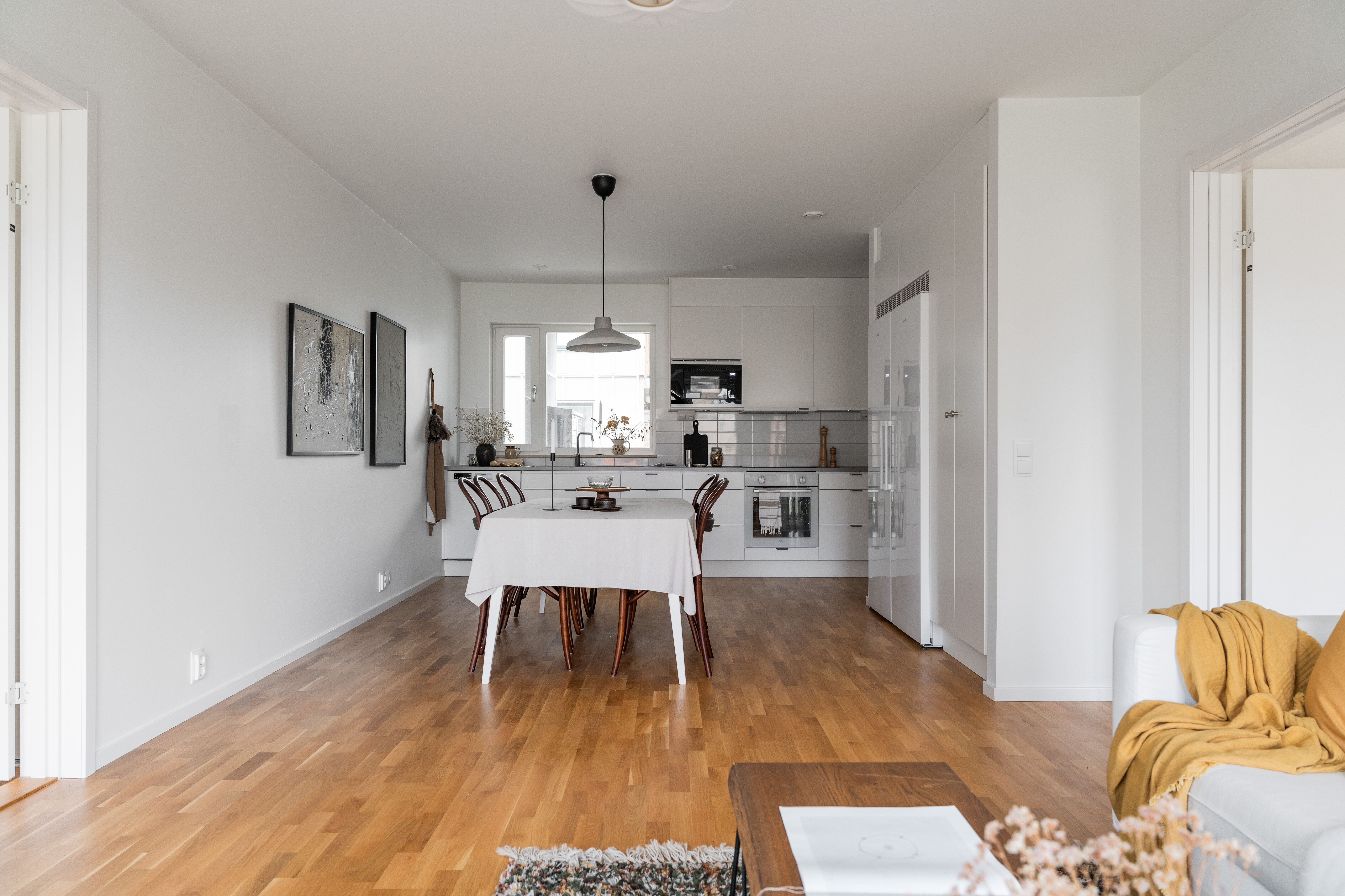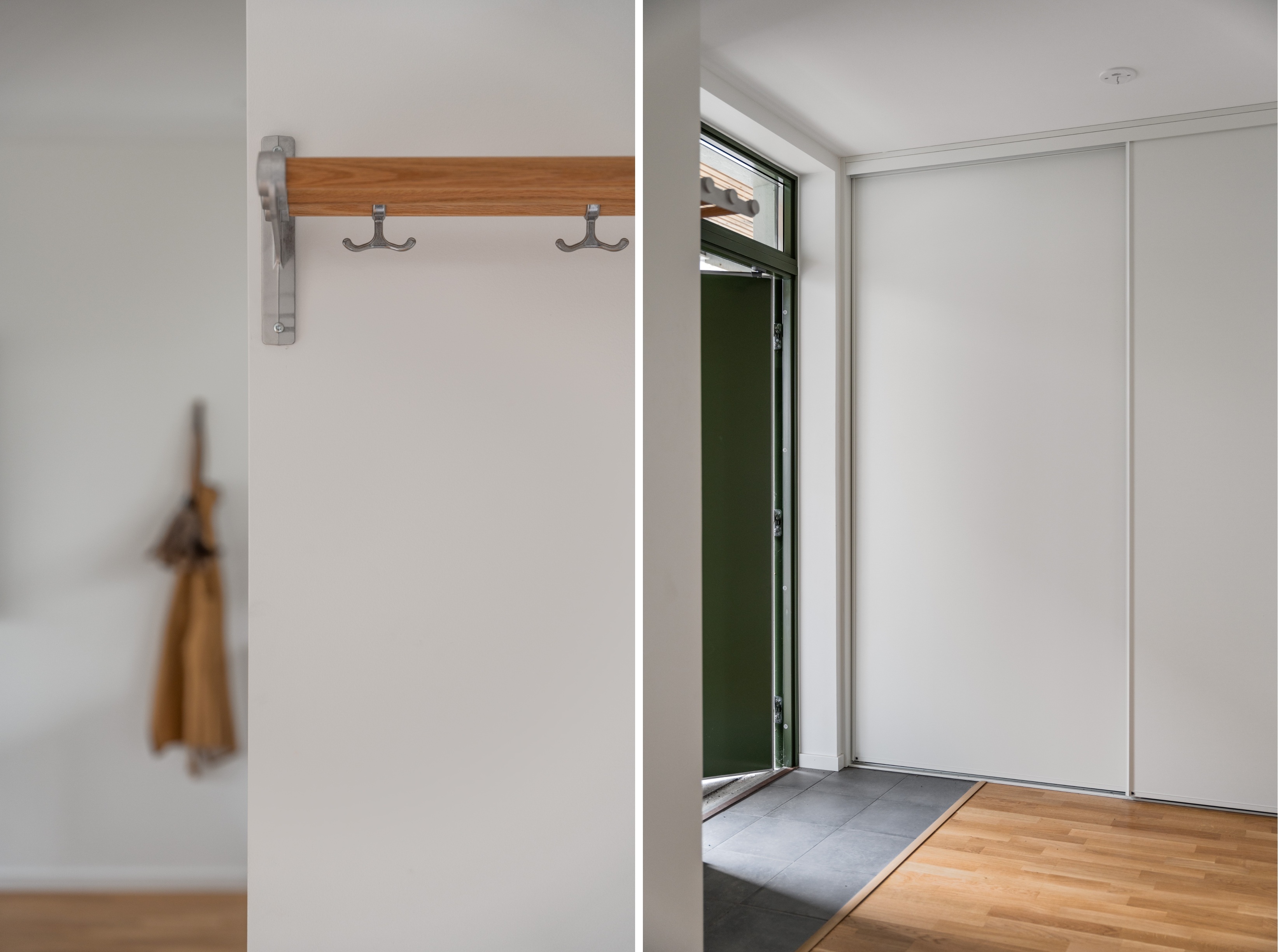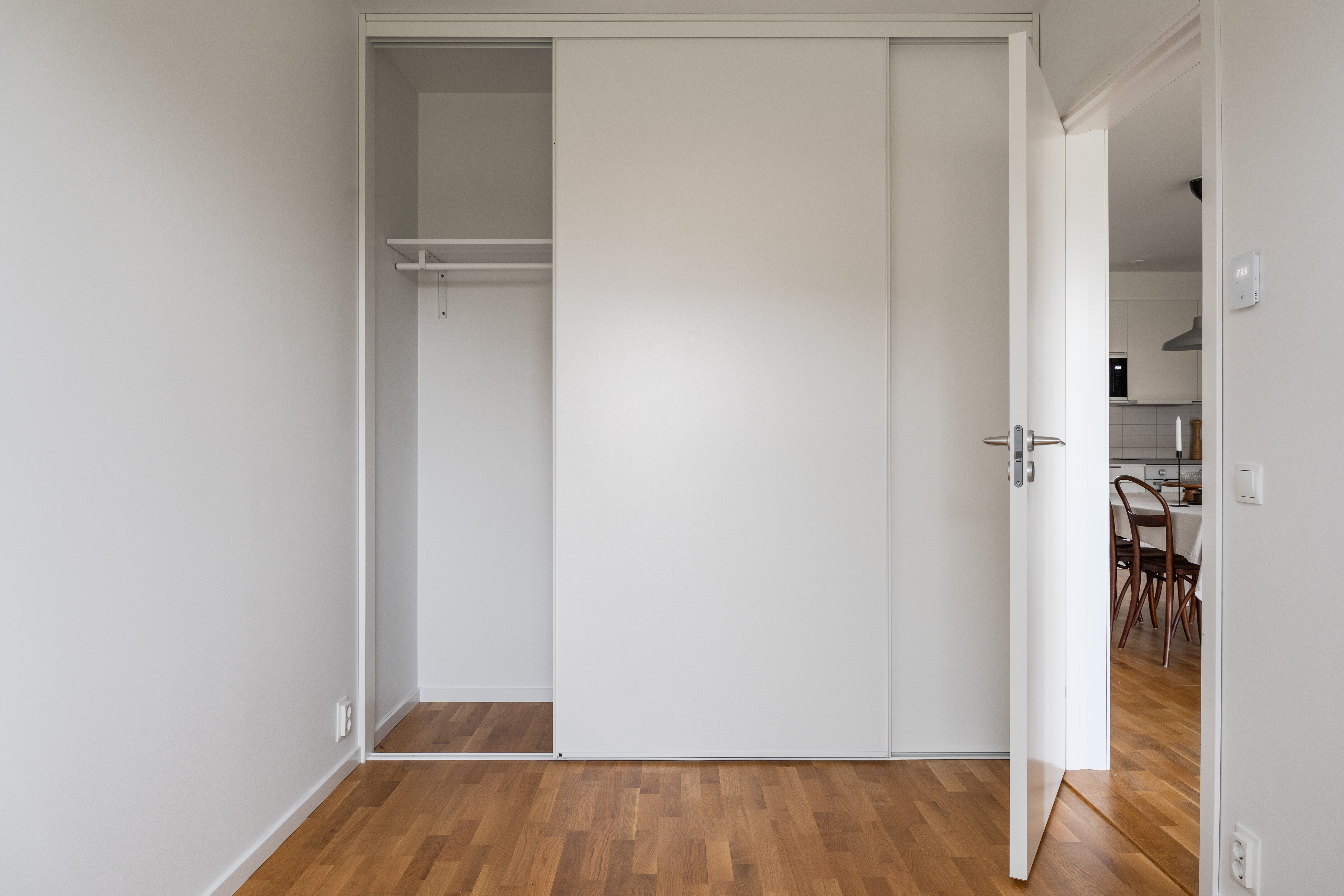 Golv: Parkett, klinker vid entrè Vägg: Vitmålat Tak: Vitmålat