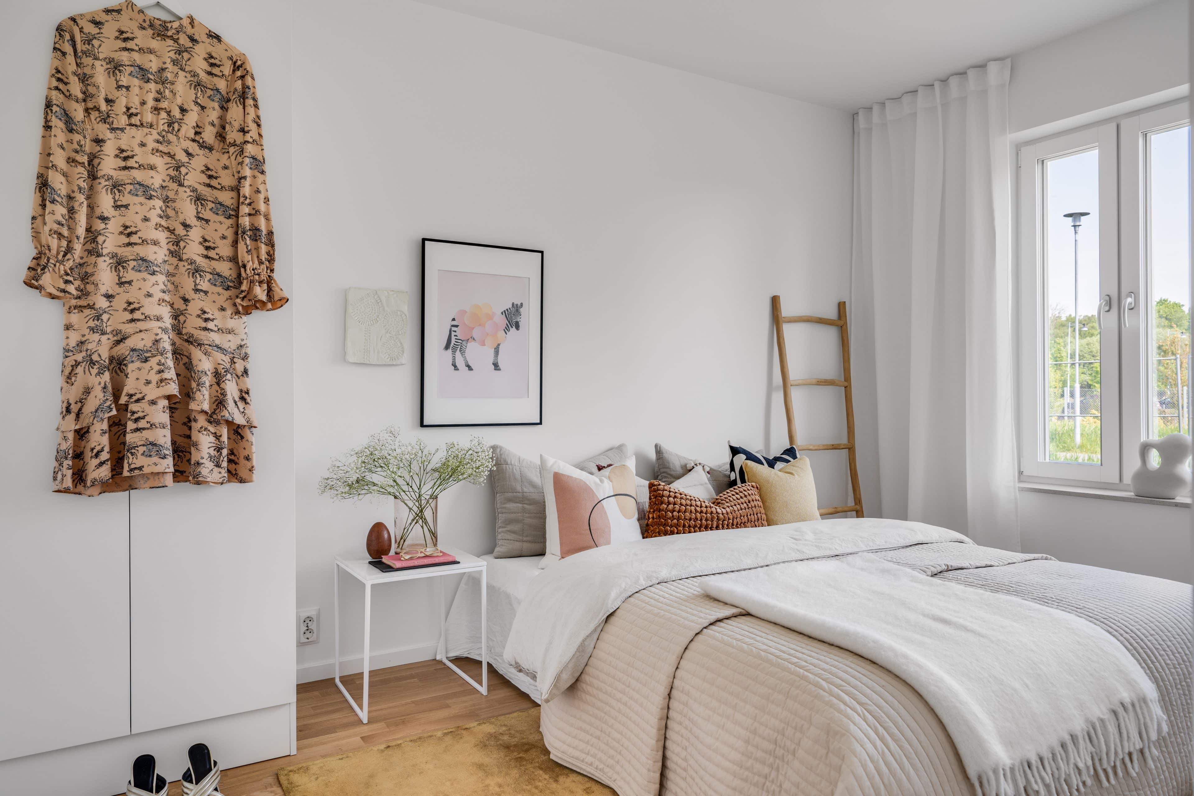 Golv: Parkett Vägg: Vitmålat Tak: Vitmålat Övrigt: Fönsterbänk. Garderober enligt ritning