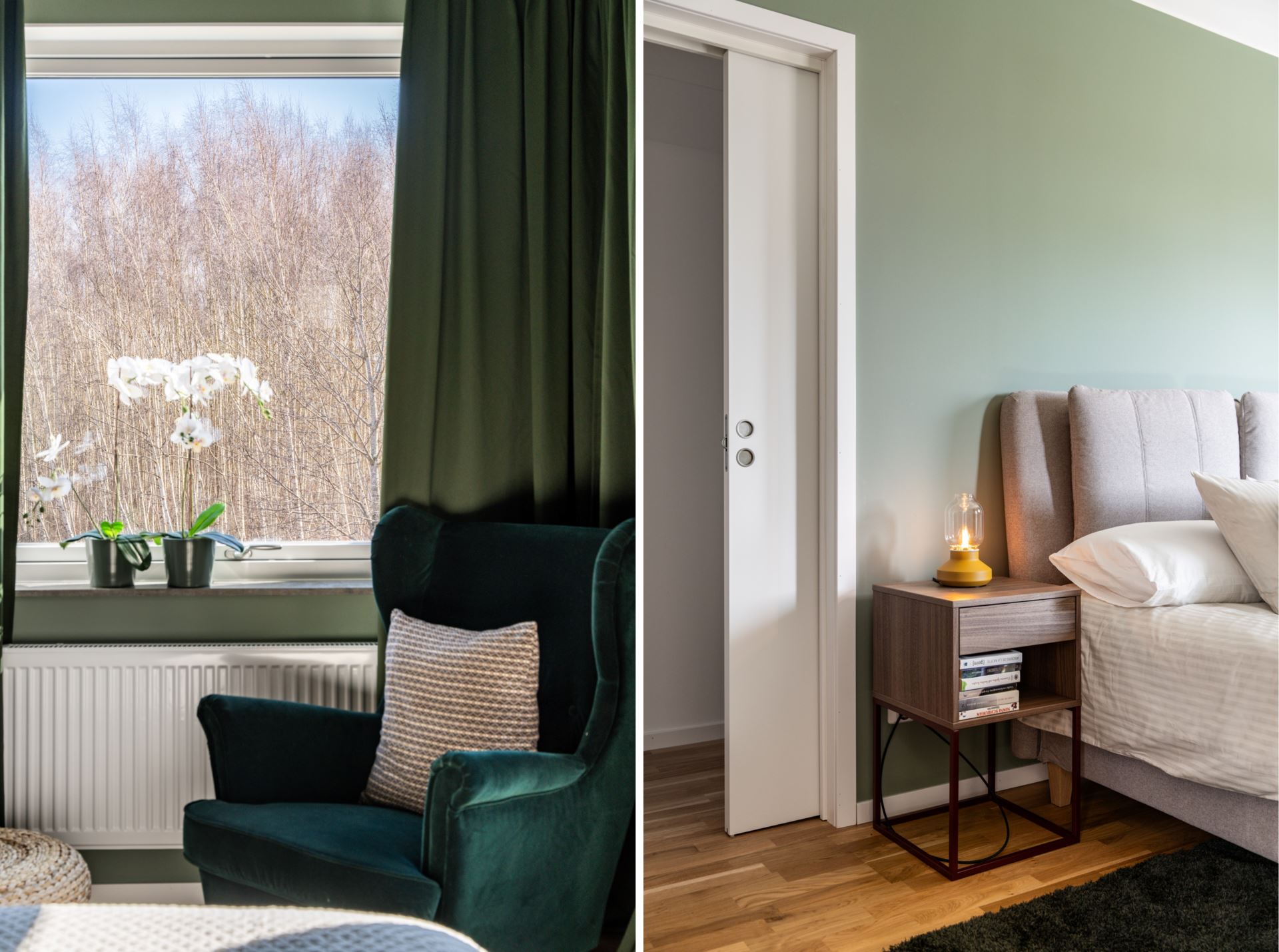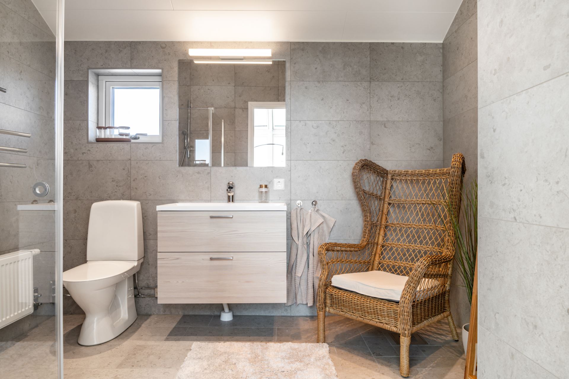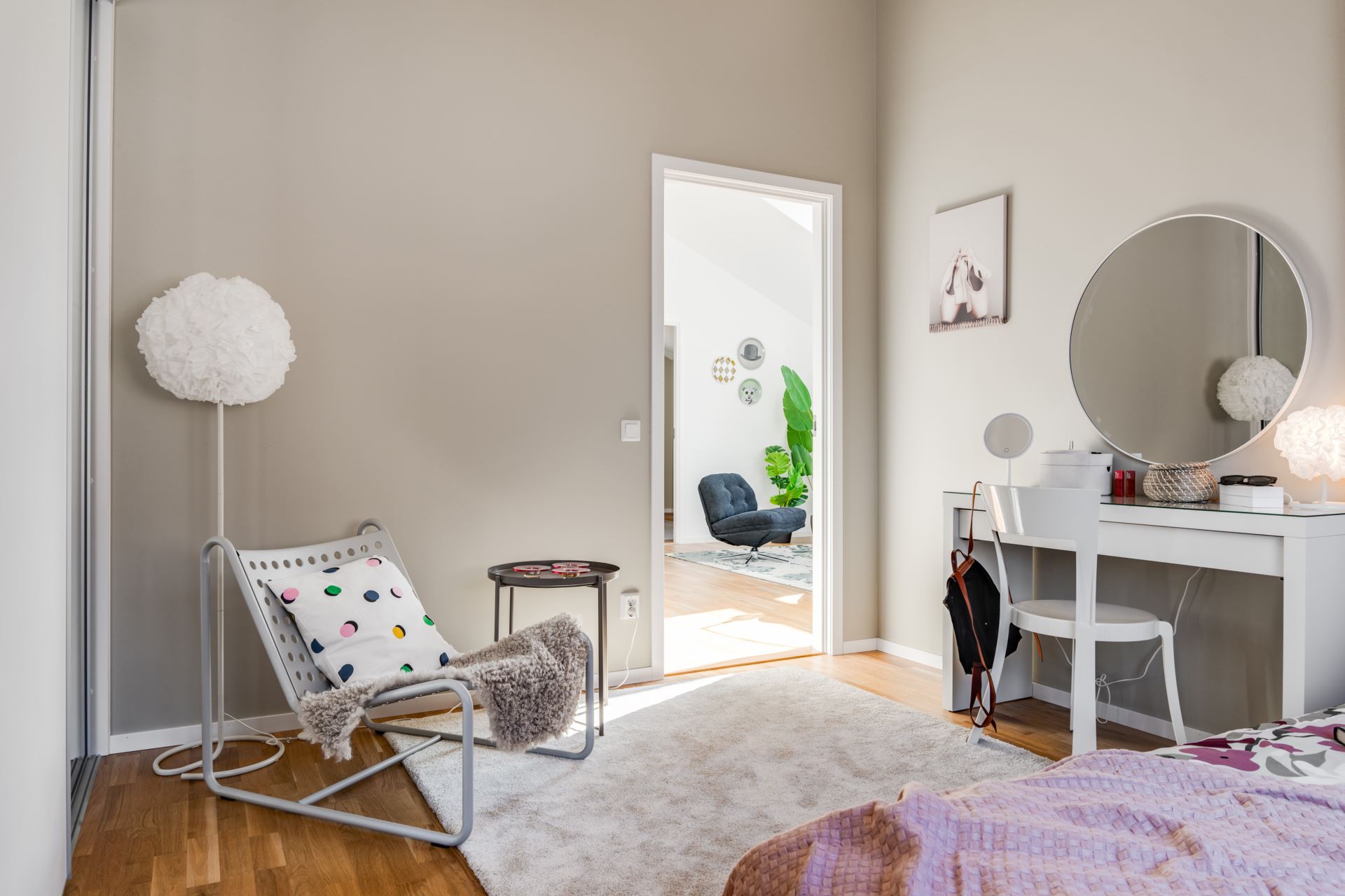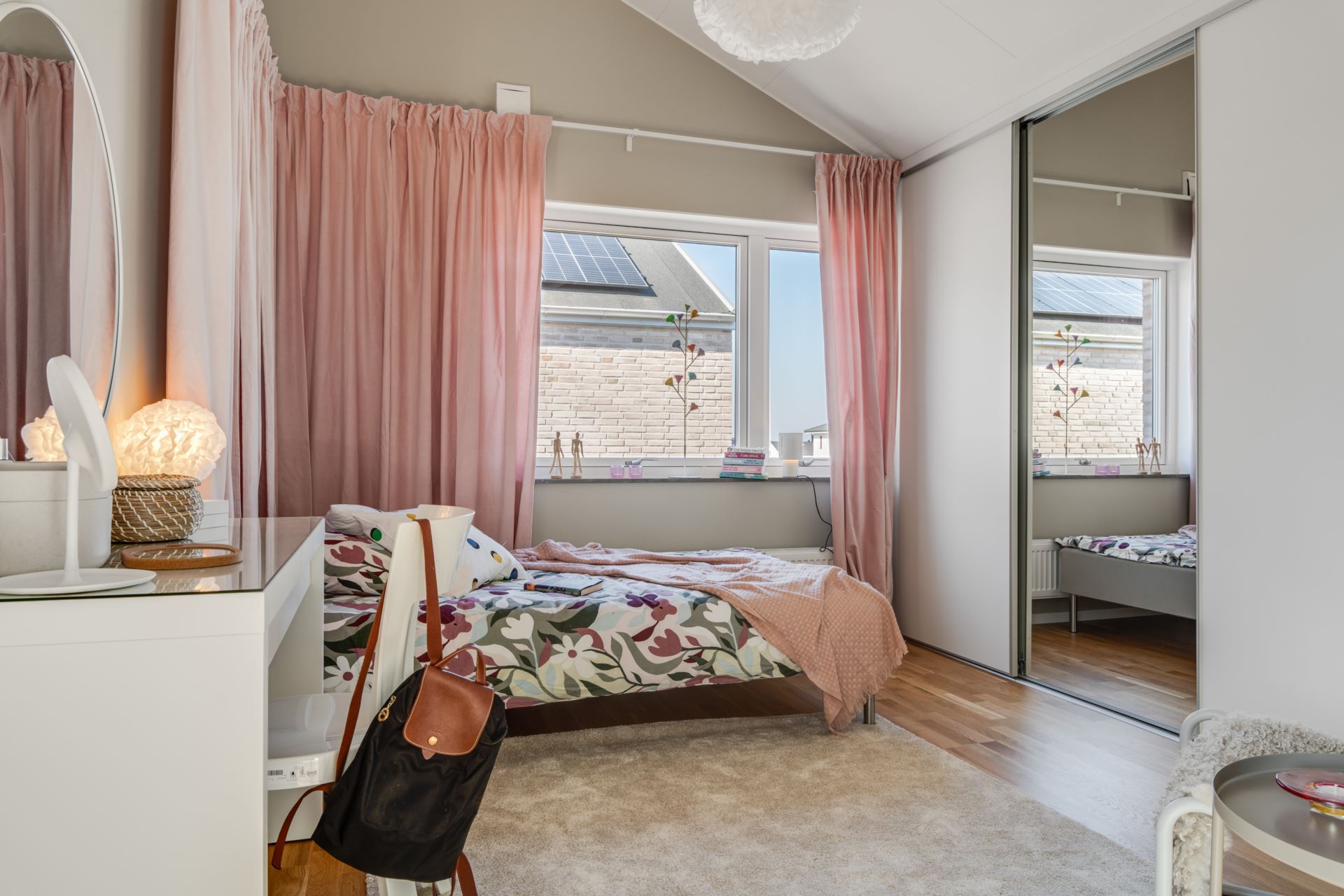 Via den skärmtaksskyddade entrén når du ditt hem. Inomhus skapas rymd och ljus med genomgående siktlinjer och stora, fina fönsterlösningar. Detta förstärks ytterligare genom att man rör sig mot fönster i passager. Kök, vardagsrum och matplats ligger i en öppen planlösning. Det finns två fullstora, helkaklade badrum, ett på vardera plan och bra förvaring i klädkammare och uteförråd. Alla rum på plan två har också full volym upp till yttertakets lutning. Öppet samband mellan inne- och utemiljö skapar ett modernt och karaktärsfullt intryck.