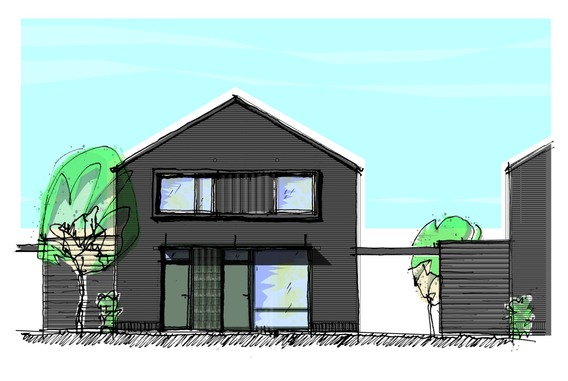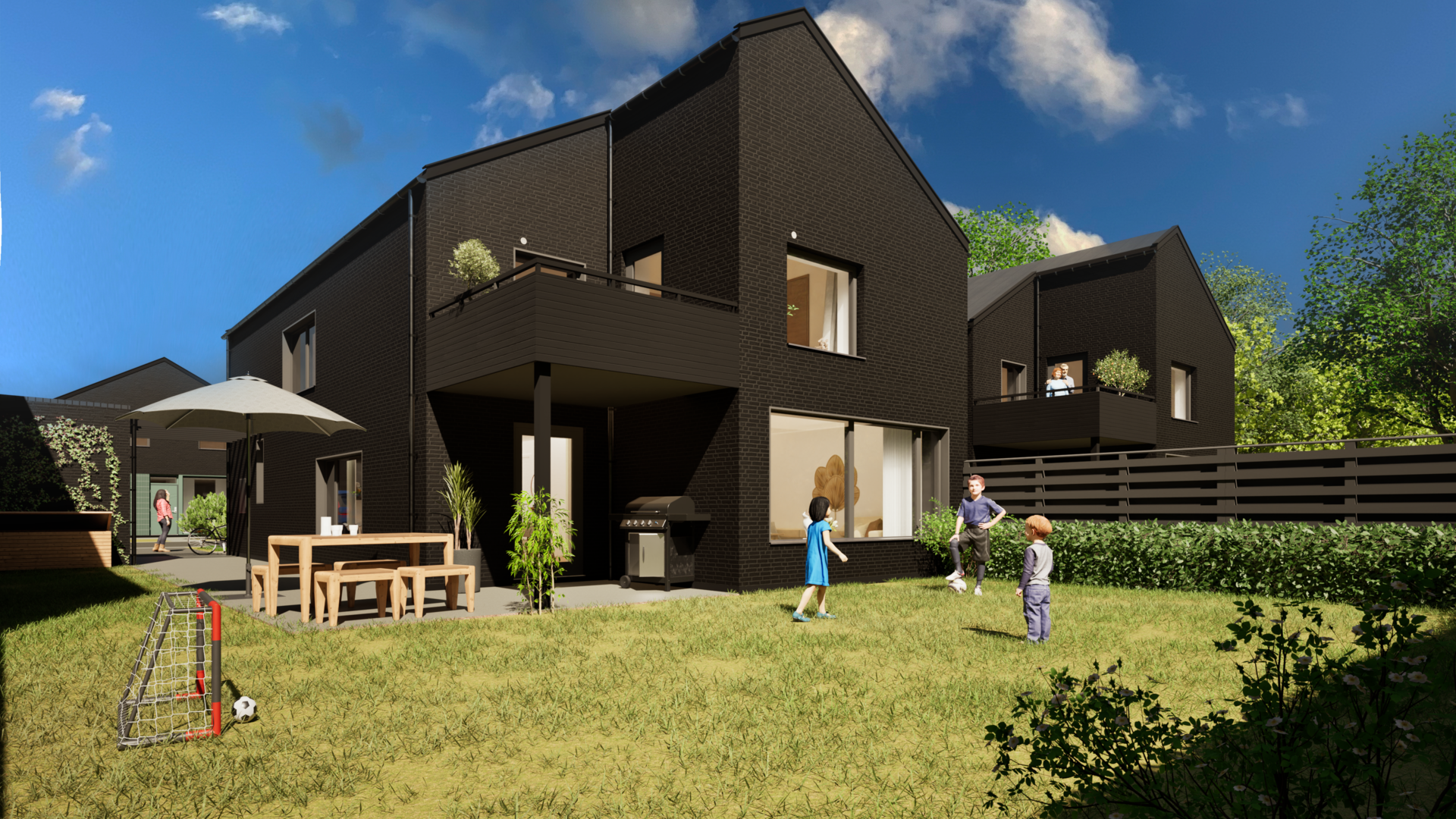 Arkitekten beskriver projektet såhär: Idén med husen är att skapa en härlig hemkänsla kring en kärna av de sociala rummen. Kök/matplats och vardagsrum hänger intimt ihop men har genom sina placeringar fått sina egna zoner. Direkt efter den generösa entrén, med en vacker siktlinje rakt ut i trädgården, når man köket. Därefter öppnar vardagsrummet och matplatsen upp mot uteplatsen i sydväst. Genomtänkta och bra fönsterplaceringar ger vackert ljus under hela dagen! Exteriören har ett sobert uttryck med slaget massivt svart tegel, mönstermurning och en markering av entrén med mörkturkosa keramikplattor. En modern arkitektur med ett klassiskt sadeltak.