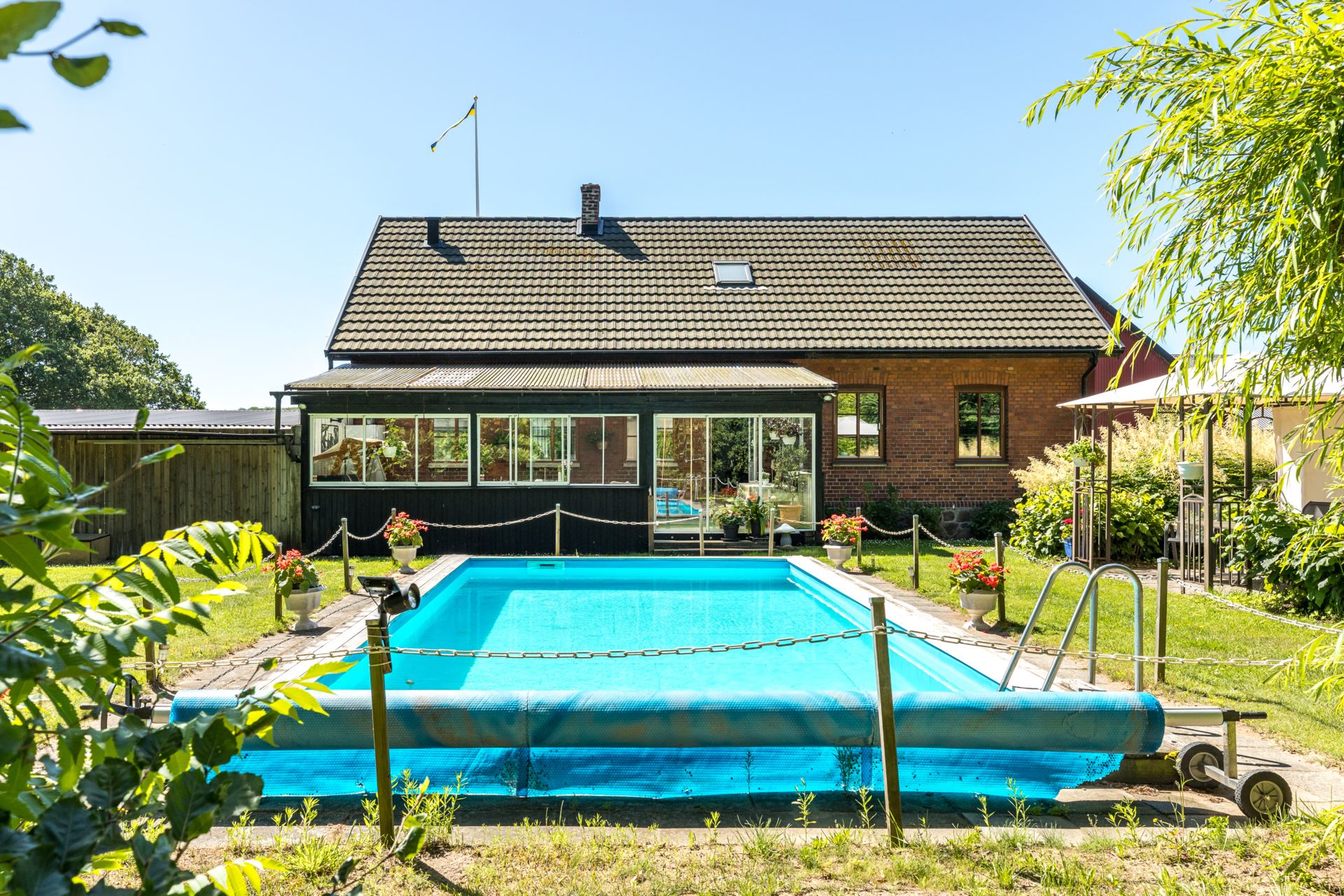 Boningshuset har en rustik karaktär med charmiga detaljer. Uppvärmning sker via ytjordvärme i kombination med solceller, vilket tillsammans med energiklass C gör boendet både hållbart och kostnadseffektivt. För de varmare årstiderna väntar en pool i trädgården.