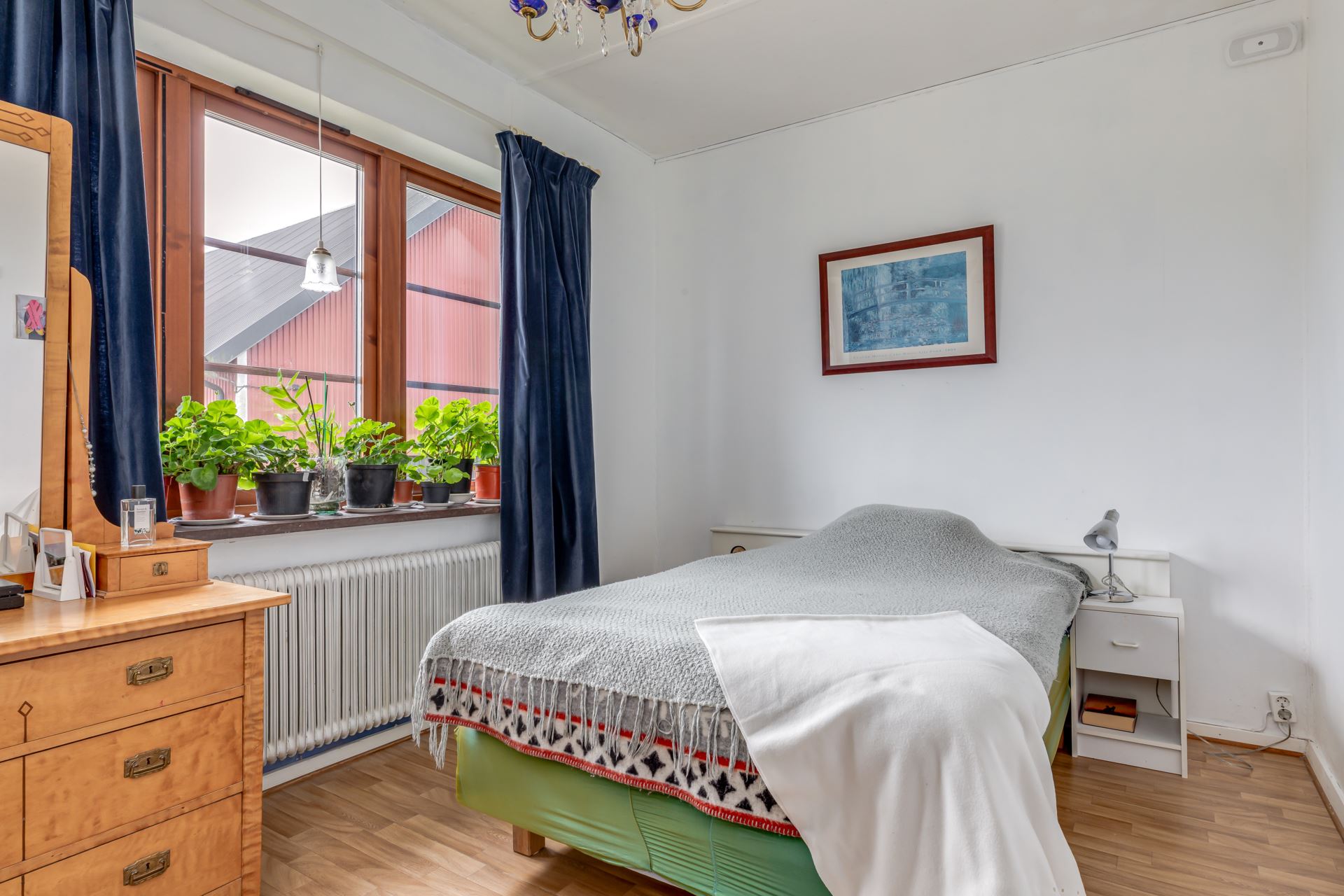 Stort sovrum med härlig rymd. Ljusa väggar och eklaminat.