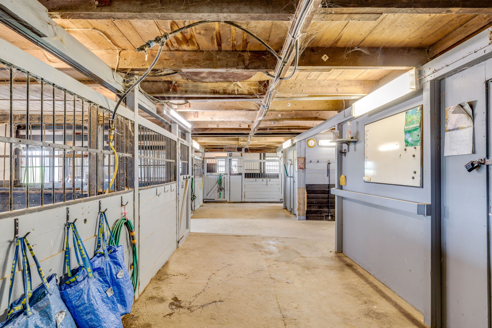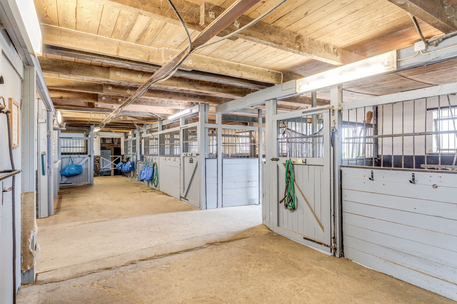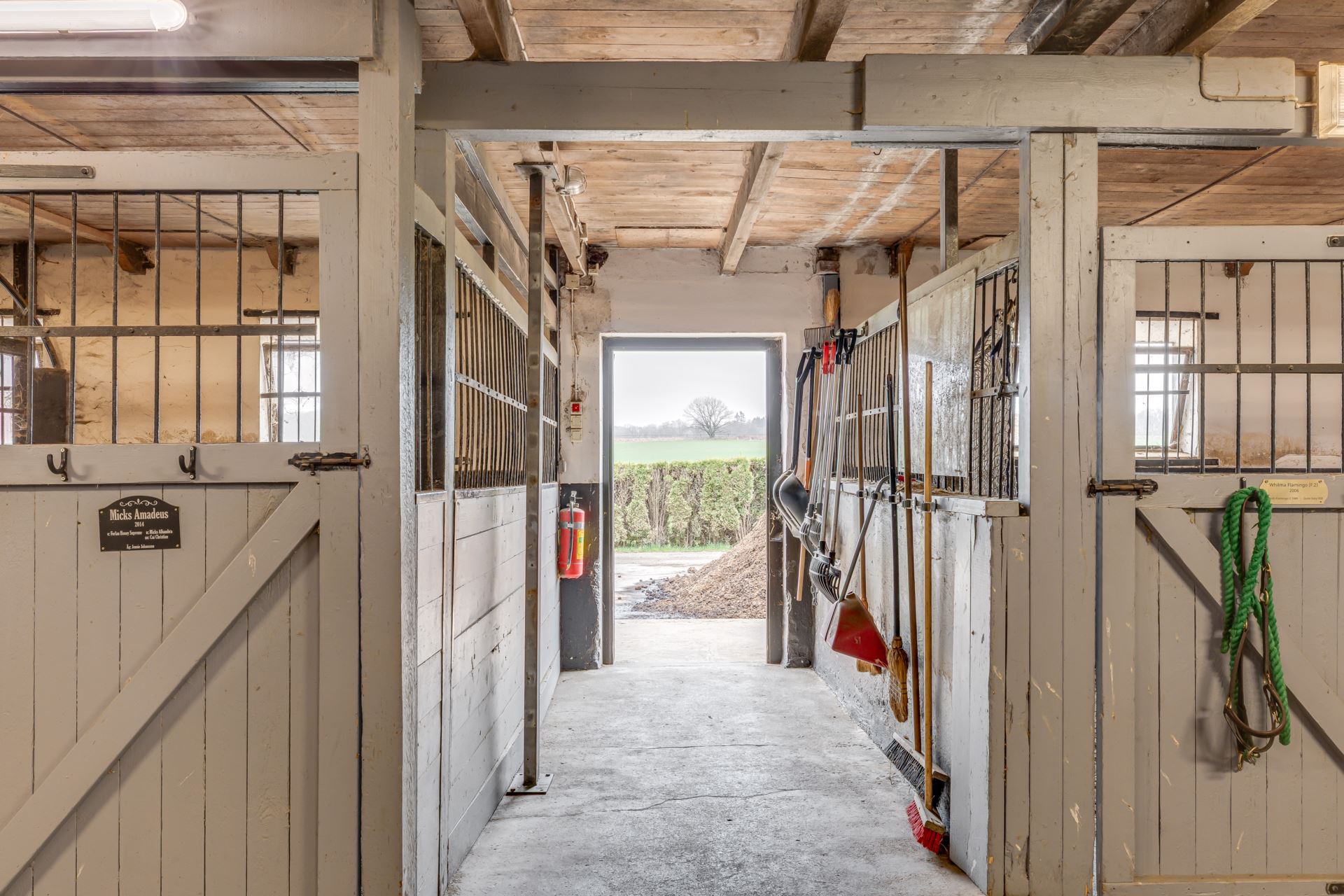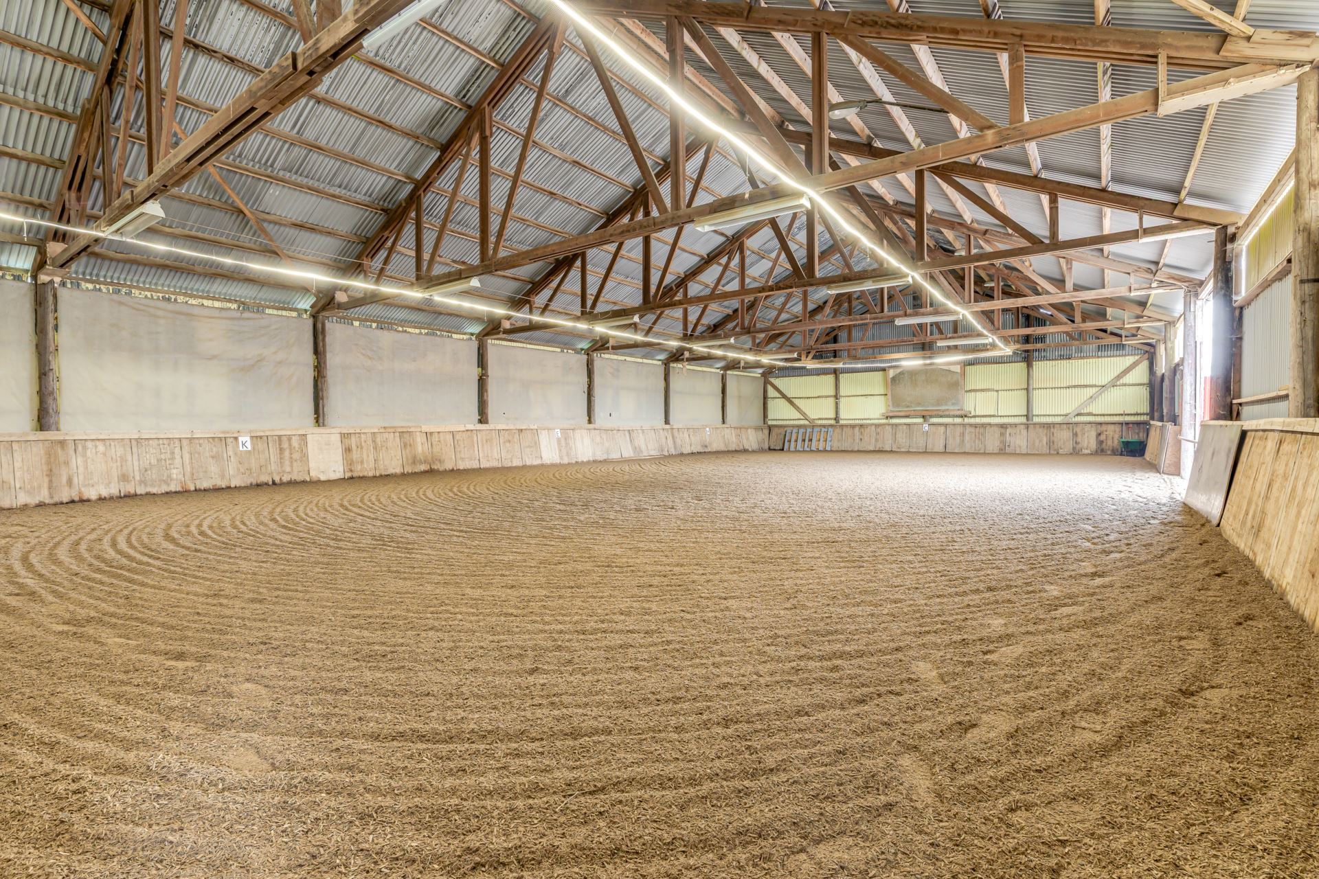 Gårdens stall rymmer åtta boxar och är praktiskt placerat i anslutning till såväl ridhuset som logen och övriga förvaringsutrymmen. Den belysta utebanan och ridhuset ger utmärkta träningsmöjligheter året om, oavsett väder. Här finns alla förutsättningar för både hobbynivå och verksamhet.