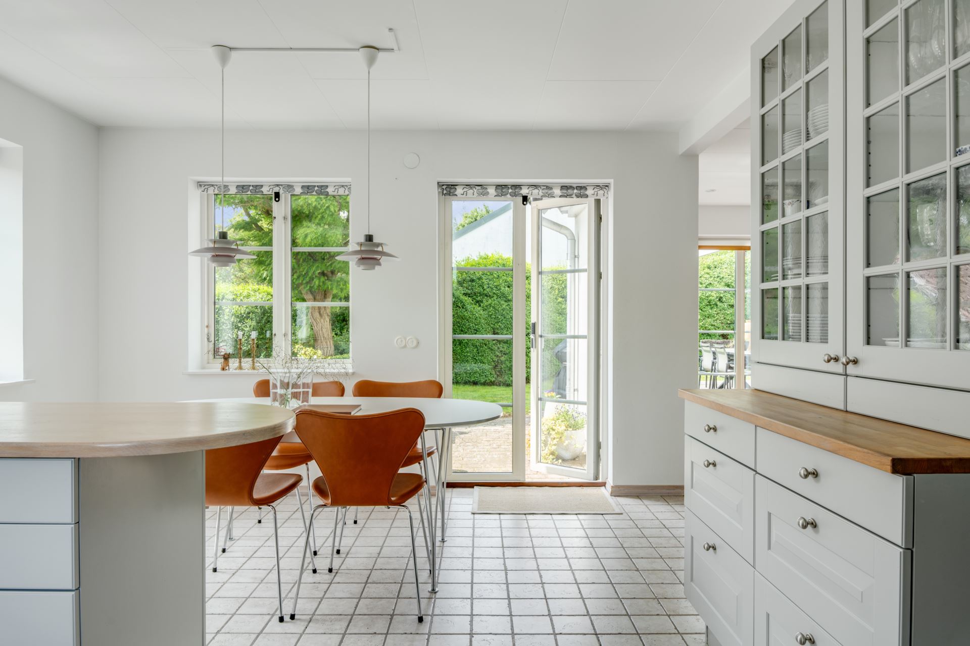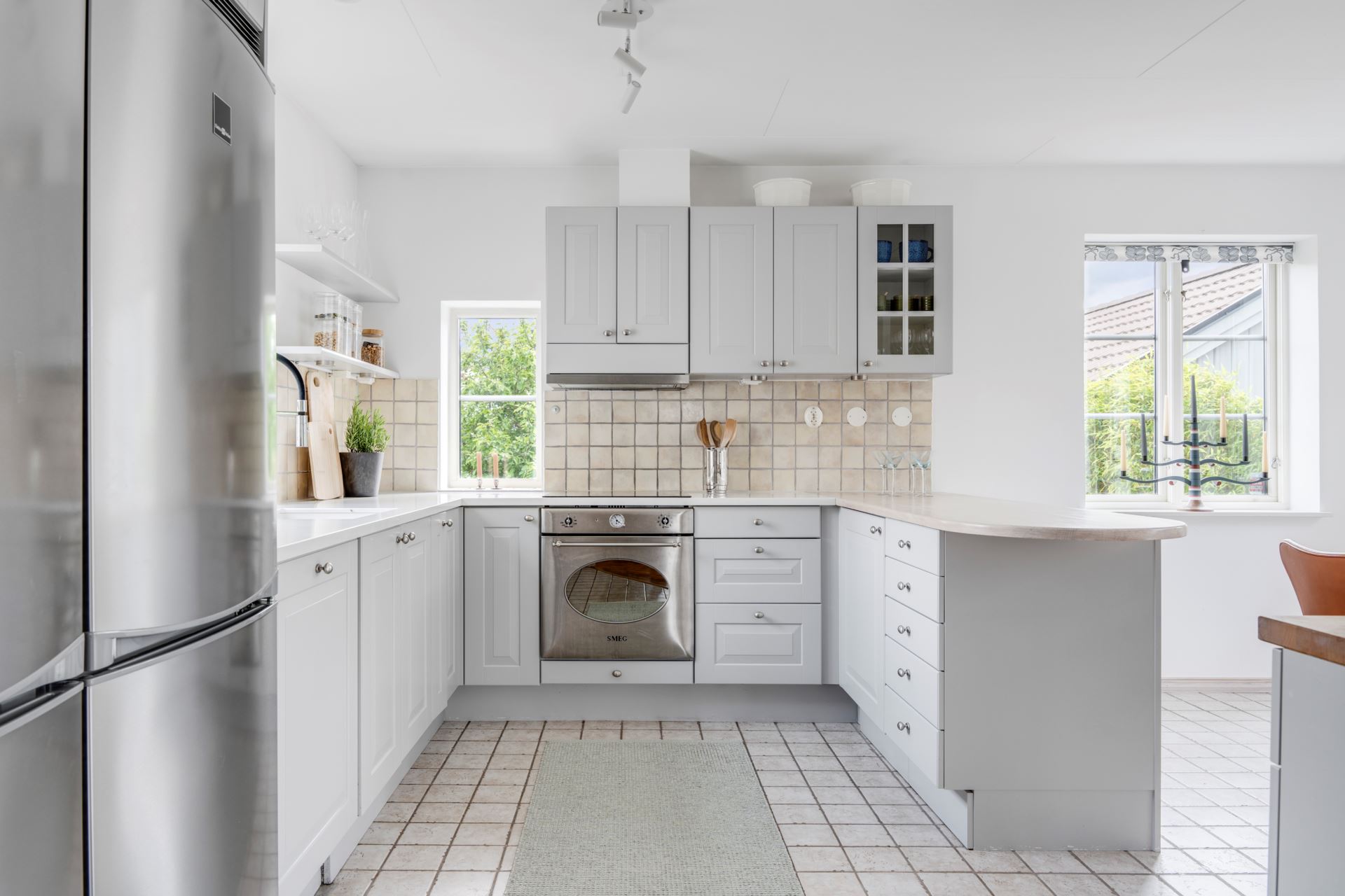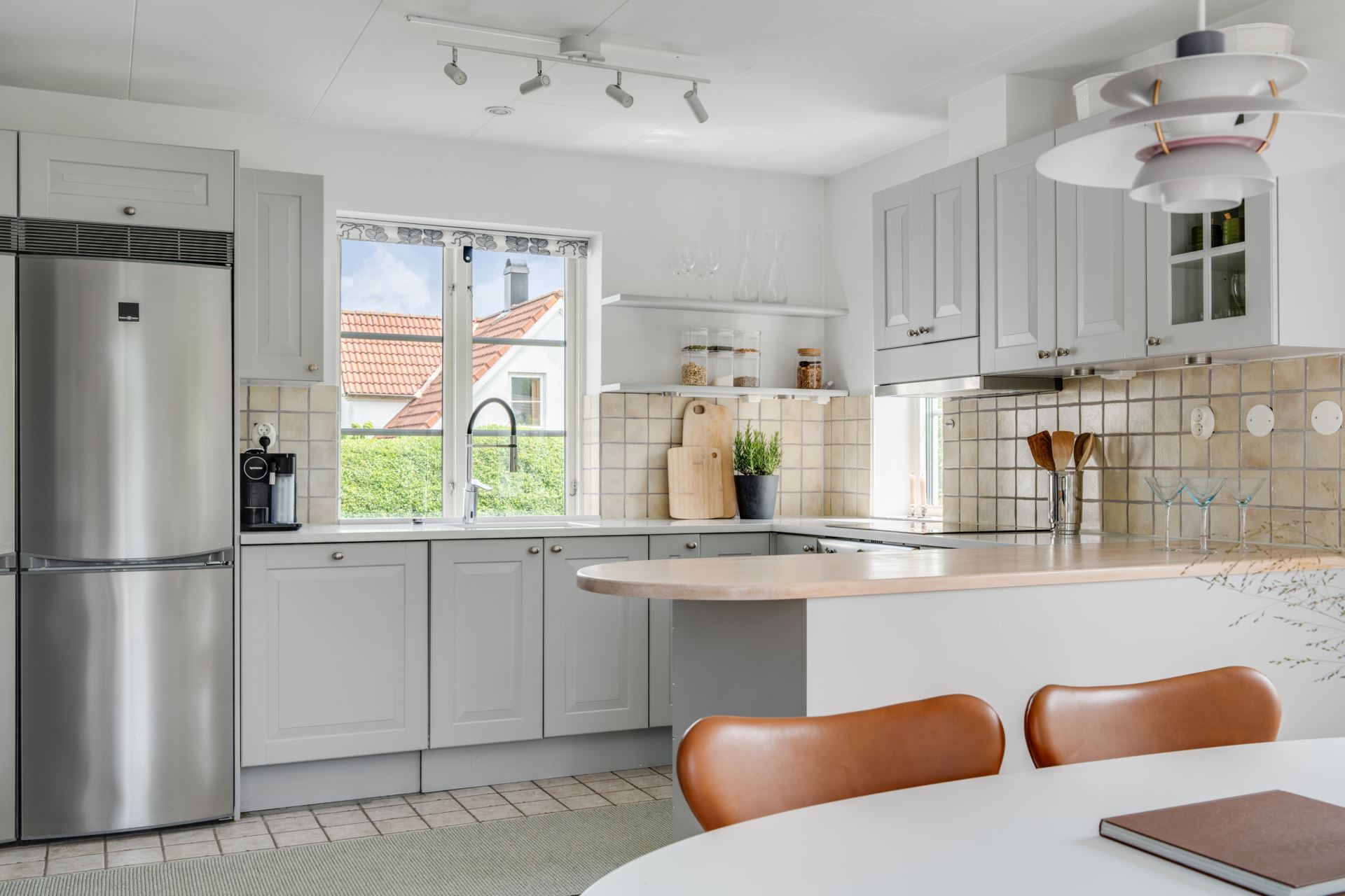 Stort och inbjudande kök med öppen planlösning mot matplats och vardagsrum. Perfekt plats för både vardagsliv och sociala tillställningar. Här möts du av gedigen köksinredning med bänkskiva i sten och maskinell utrustning av hög standard: kyl, frys, induktionshäll, varmluftsugn, diskmaskin och fläkt (samtliga från 2018–2019). Generösa arbetsytor och god förvaring gör köket både snyggt samt funktionellt. Den rymliga matplatsen har plats för det stora sällskapet och har fin kontakt med både kök och vardagsrum.