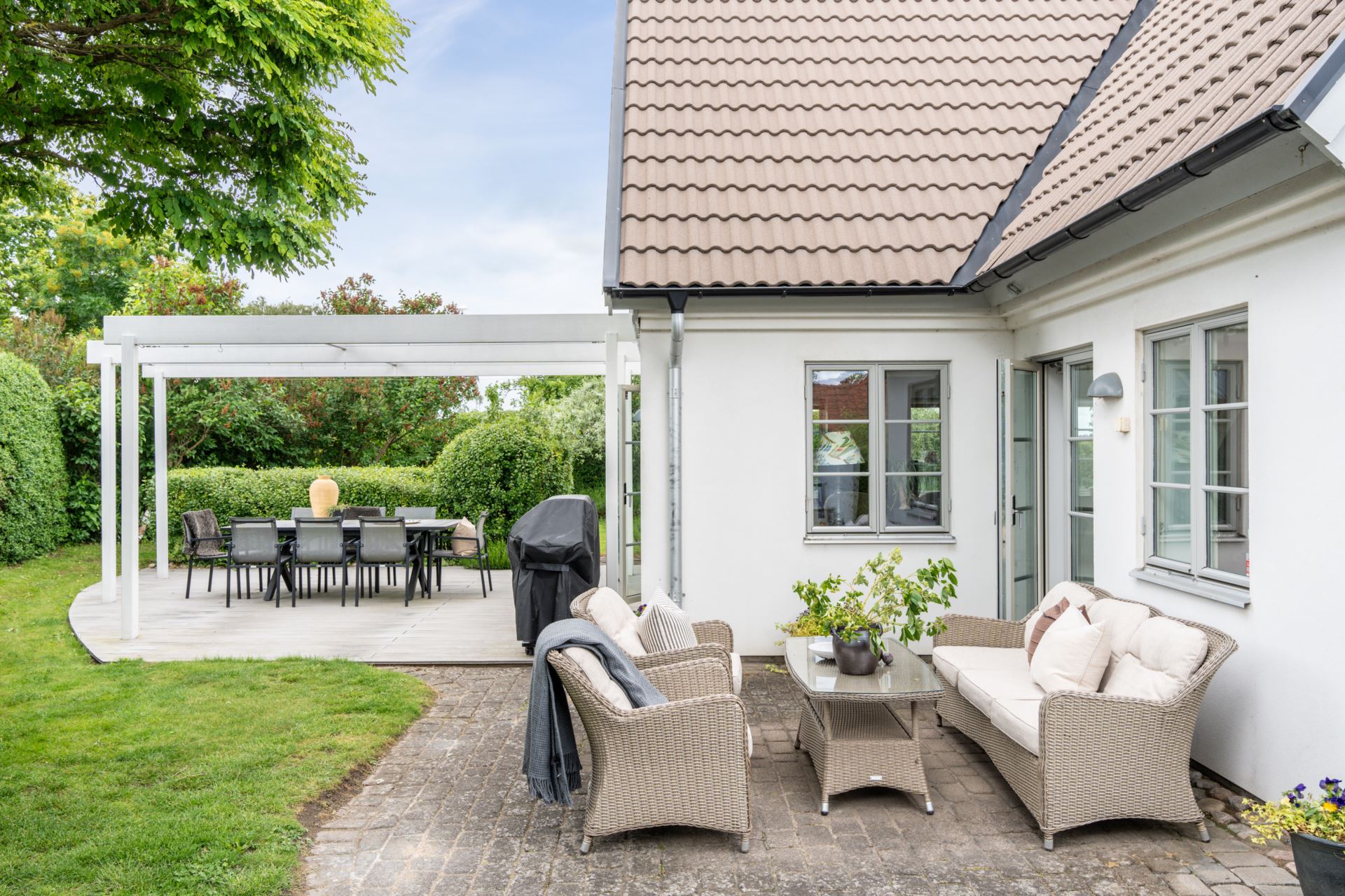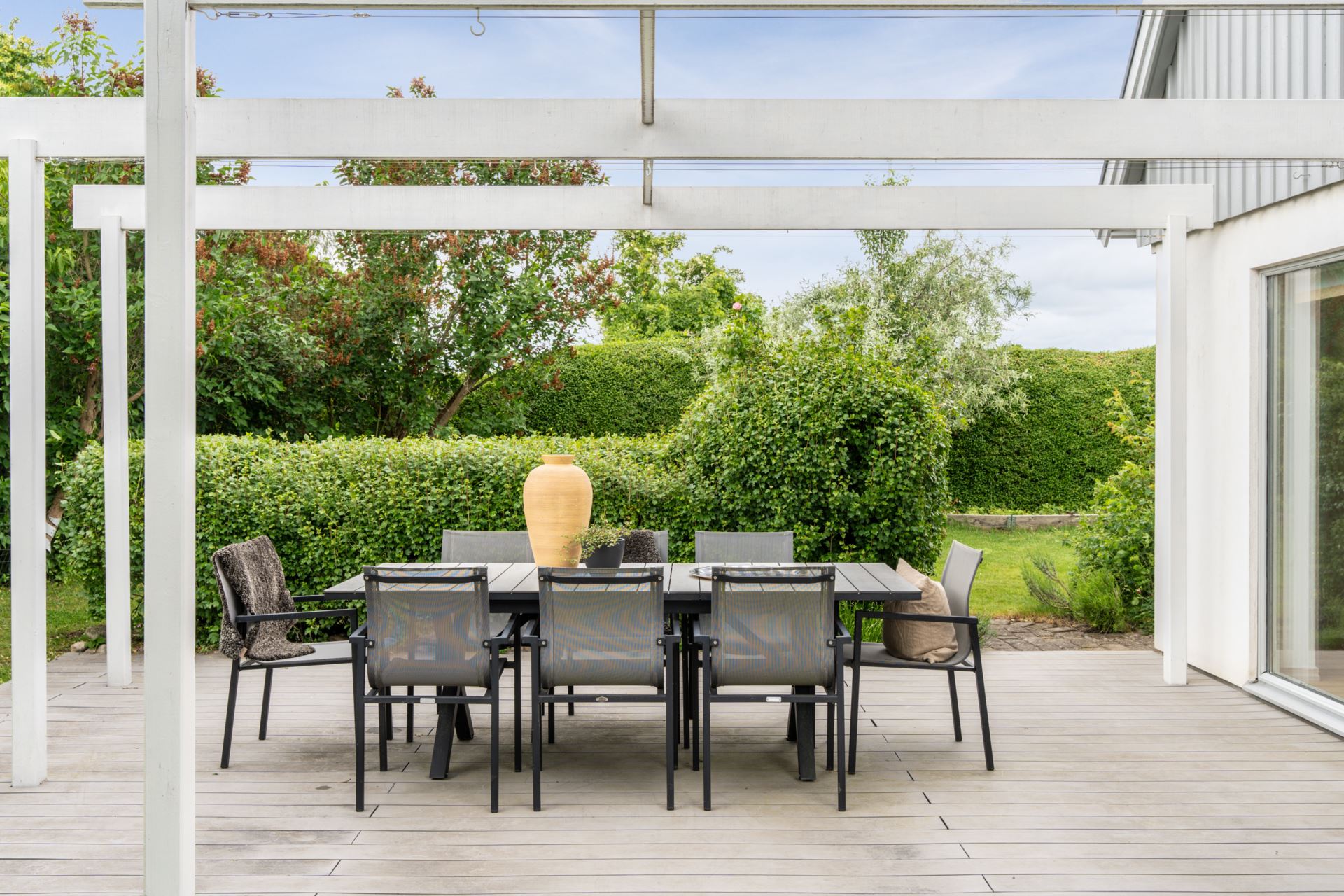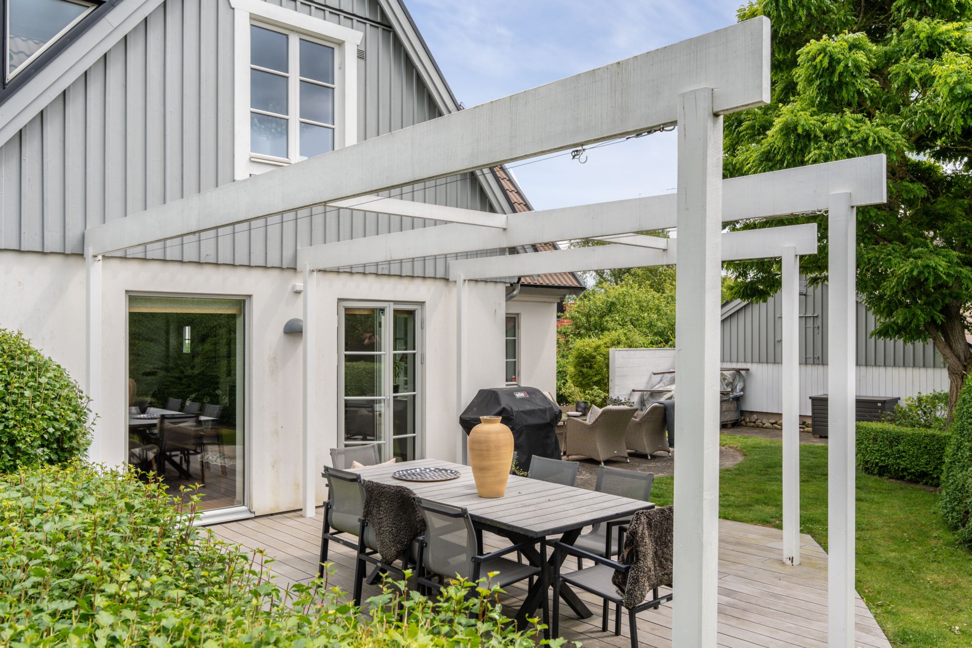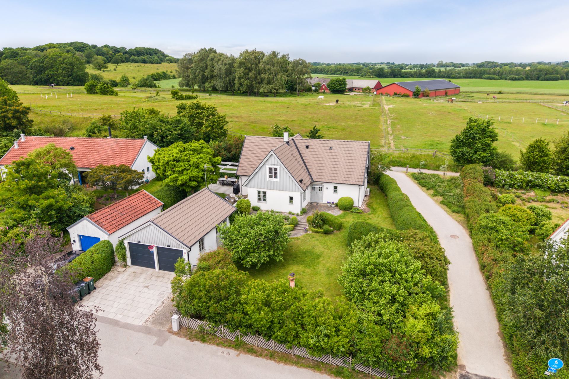 Två helrenoverade badrum ger en modern och fräsch känsla, och utanför väntar ett stort trädäck idealiskt för sommarens grillkvällar. Trädgården är lummig, insynsskyddad och uppvuxen en privat oas att njuta av året om. Till huset hör även ett praktiskt dubbelgarage. Läget är något utöver det vanliga, med utsikt mot öppna hästhagar och direkt närhet till naturreservat – perfekt för dig som älskar friluftsliv, ridning eller bara vill ha det rofyllt omkring dig.