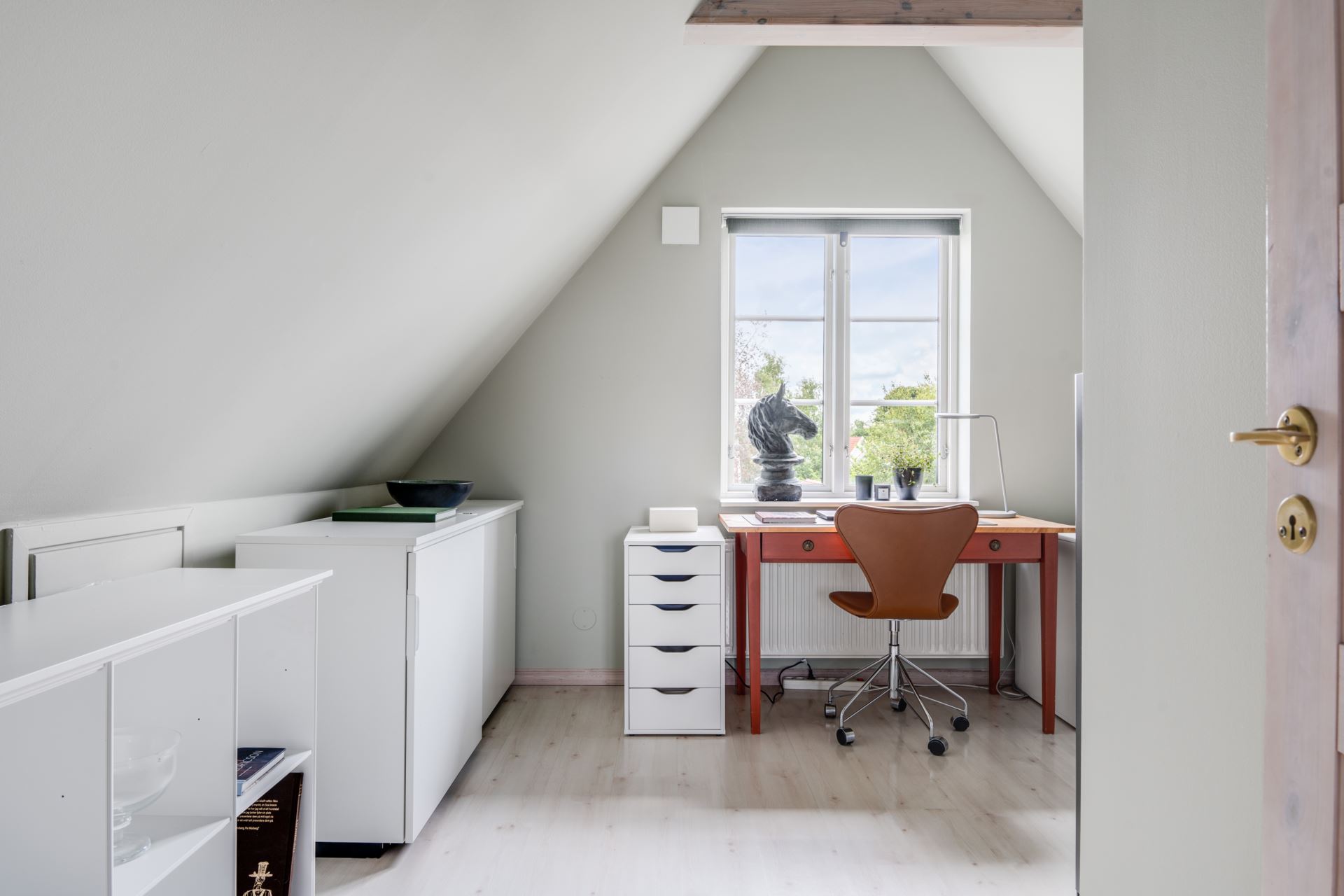 Rymligt och rofyllt rum med många användningsmöjligheter. Perfekt som sovrum, gästrum eller hemmakontor. Vackert trägolv bidrar med värme och karaktär och de målade väggarna i en mjuk, harmonisk ton skapar en lugn atmosfär.