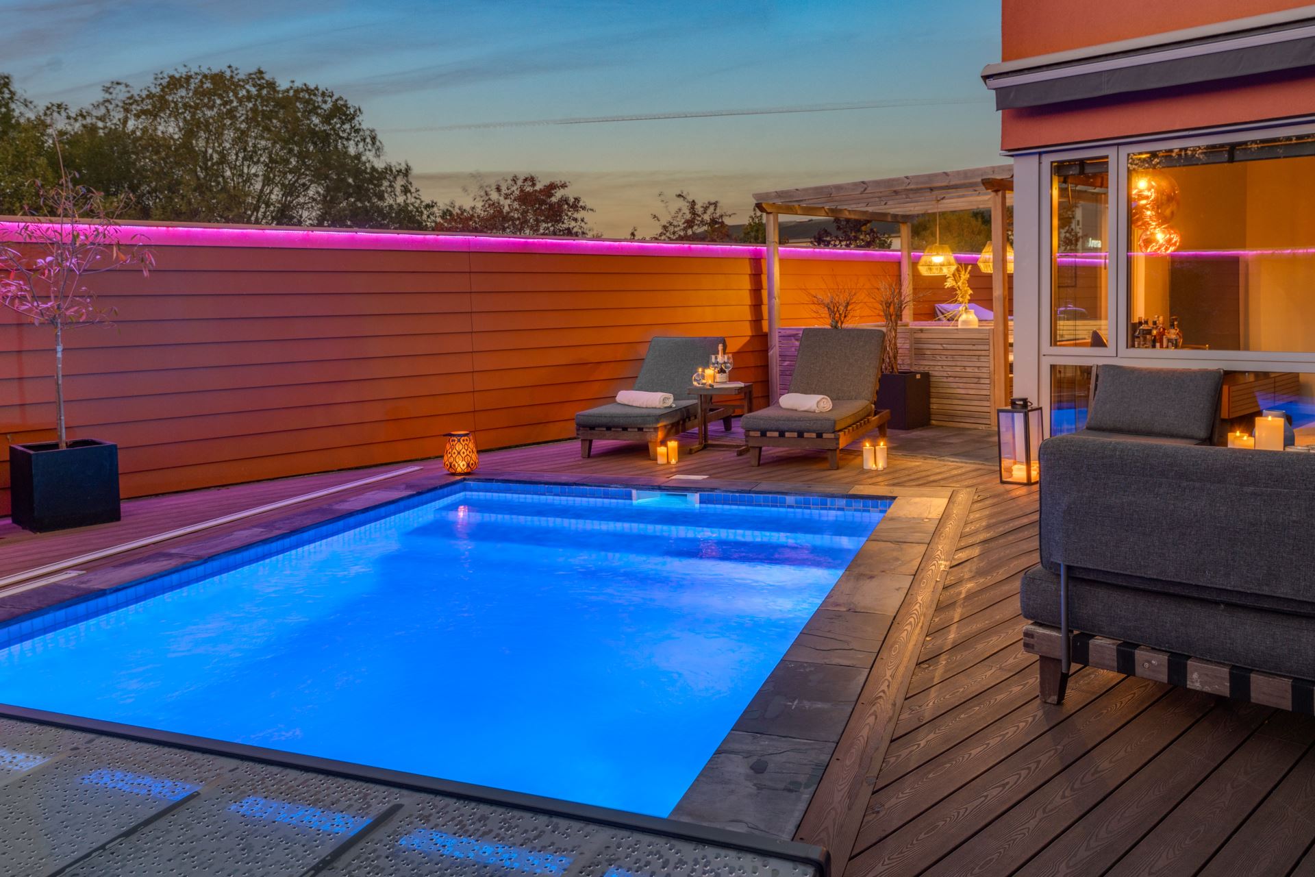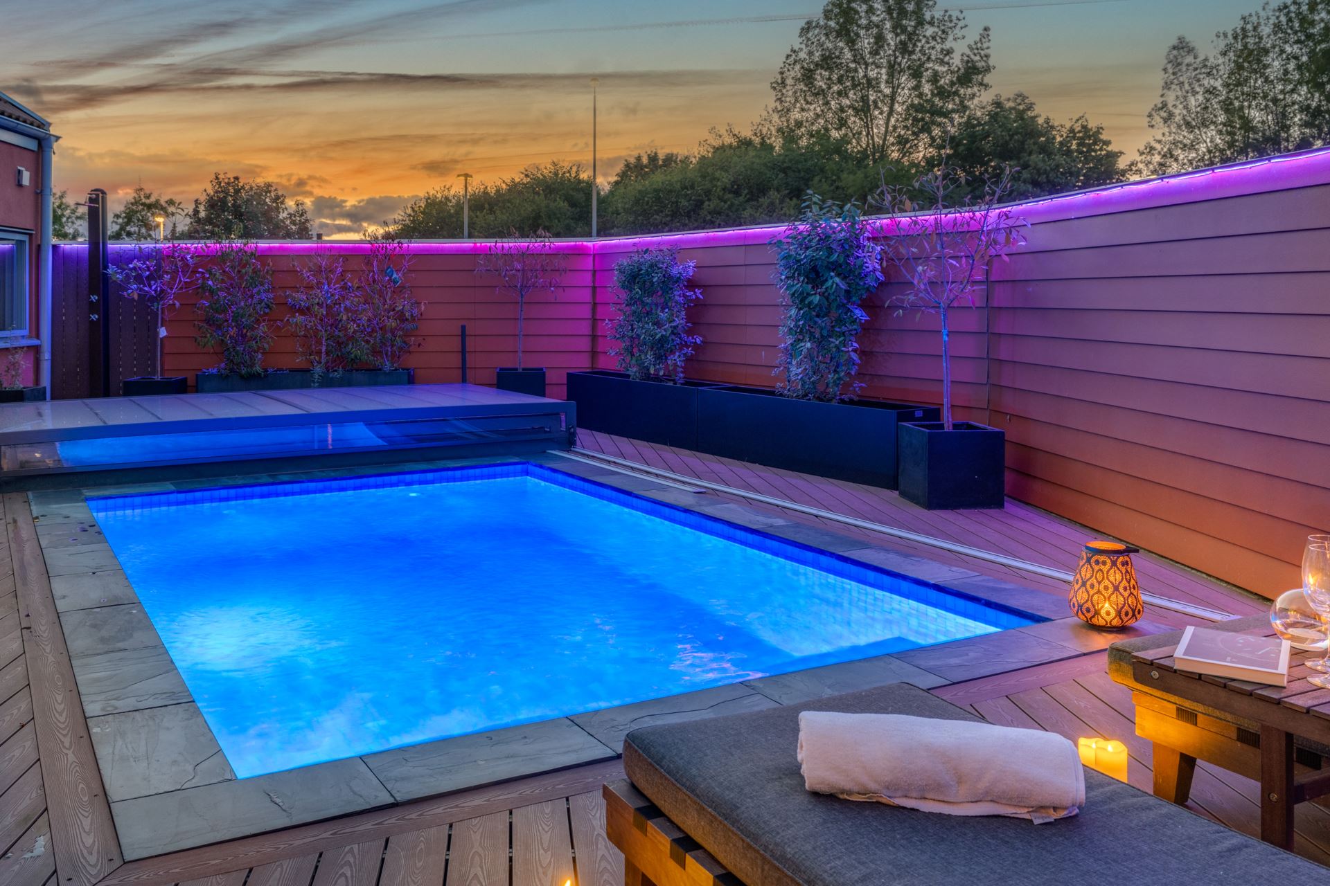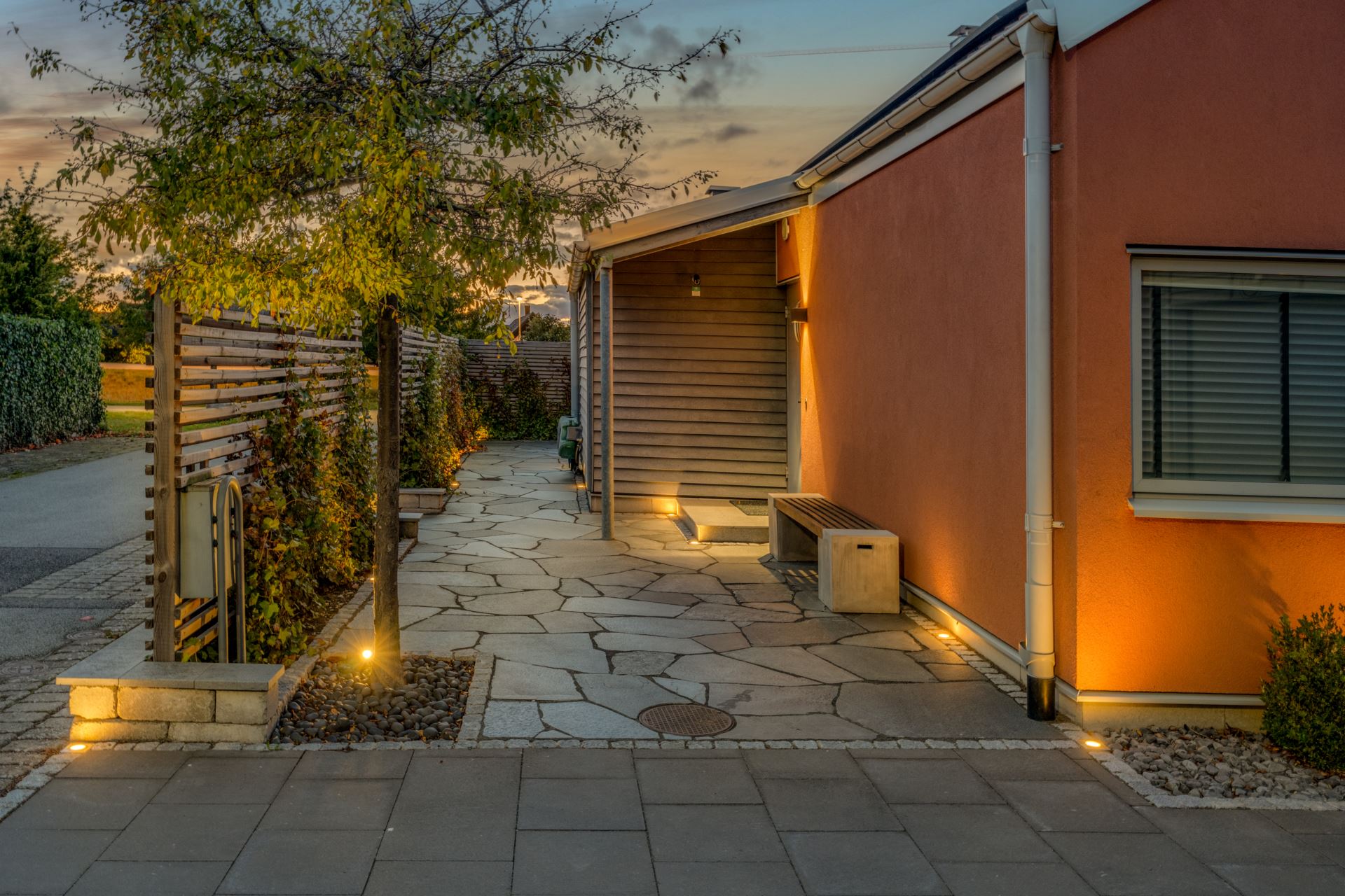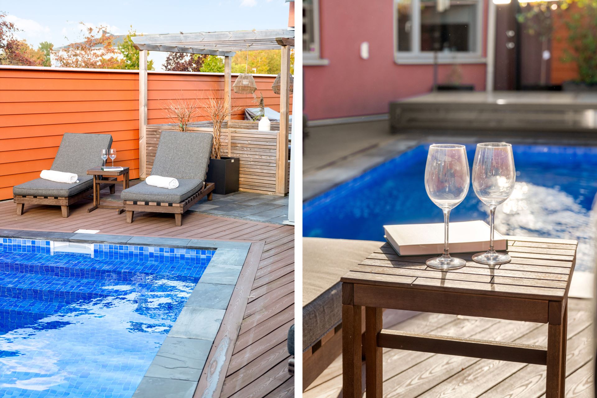 Utemiljön är väl genomtänkt och bjuder på många kvaliteter. På den stenbelagda uppfarten finns både garage och förråd samt gott om utrymme, och en elbilsladdare är installerad för bekväm och energieffektiv laddning. Taket är utrustat med solpaneler som ger ytterligare energieffektiva fördelar, och på baksidan väntar en privat oas med kaklad pool, trädäck, pergola och plats för både avkoppling och sociala stunder.