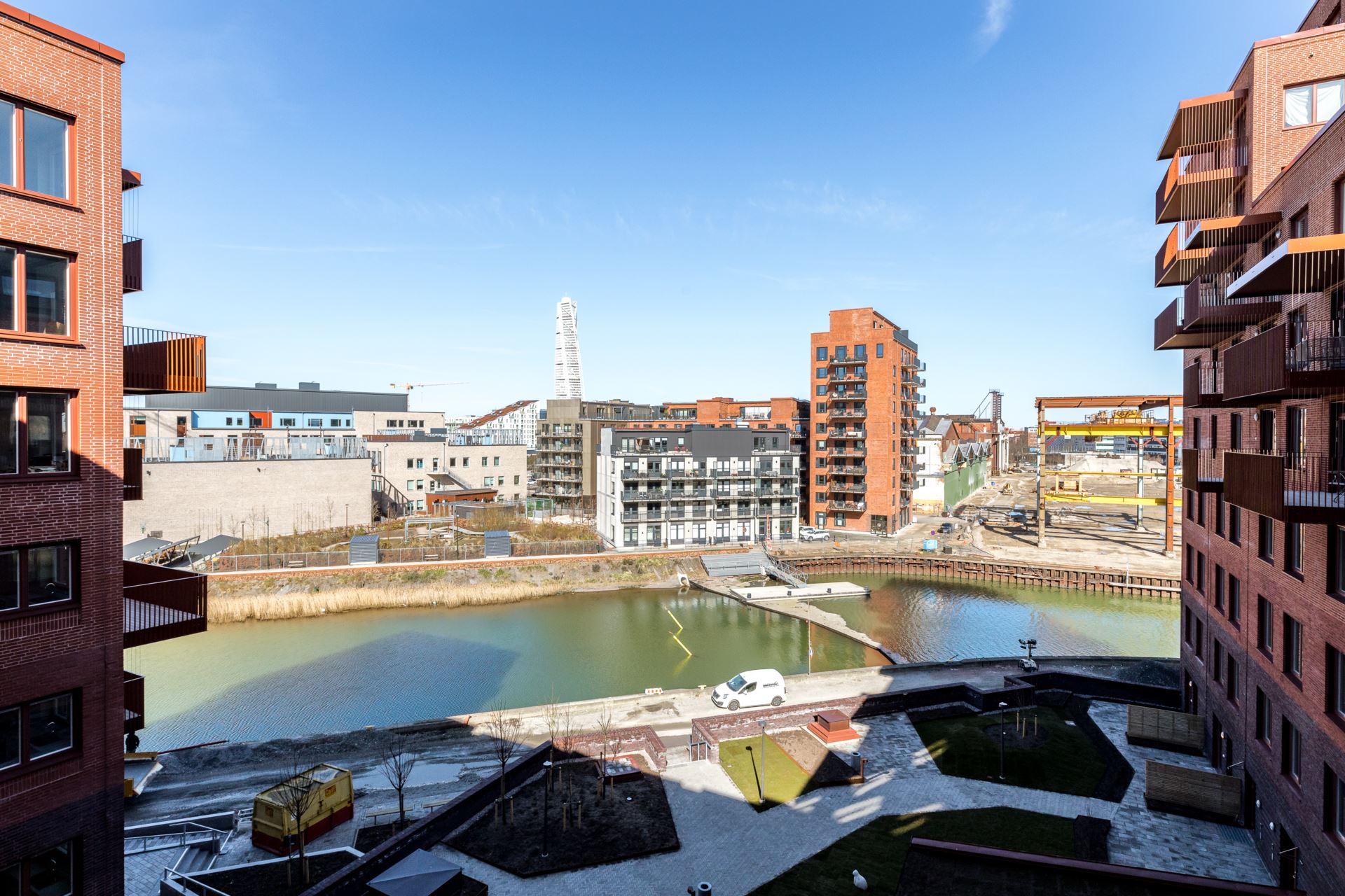 På absolut toppläge med vacker utsikt över kanalen har ni nu chansen att bli den första som flyttar in i denna nybyggda lägenhet. Lägenheten som är genomgående bjuder bland annat på en social och öppen planlösning mellan kök och vardagsrum, 2 st balkonger i olika väderstreck varav den ena bjuder på vacker utsikt över kanalen och bort mot turning torso, 2 st badrum, dubbla sovrum, goda förvaringshöjder och en trevlig takhöjd på ca 2,7 m. Från hissen i denna trappuppgång nås även gemensam takterrass med orangeri, pergola och härlig utsikt, samt tar den er bekvämt ner till garaget där parkeringshuset finns. Varmt välkomna på visning!