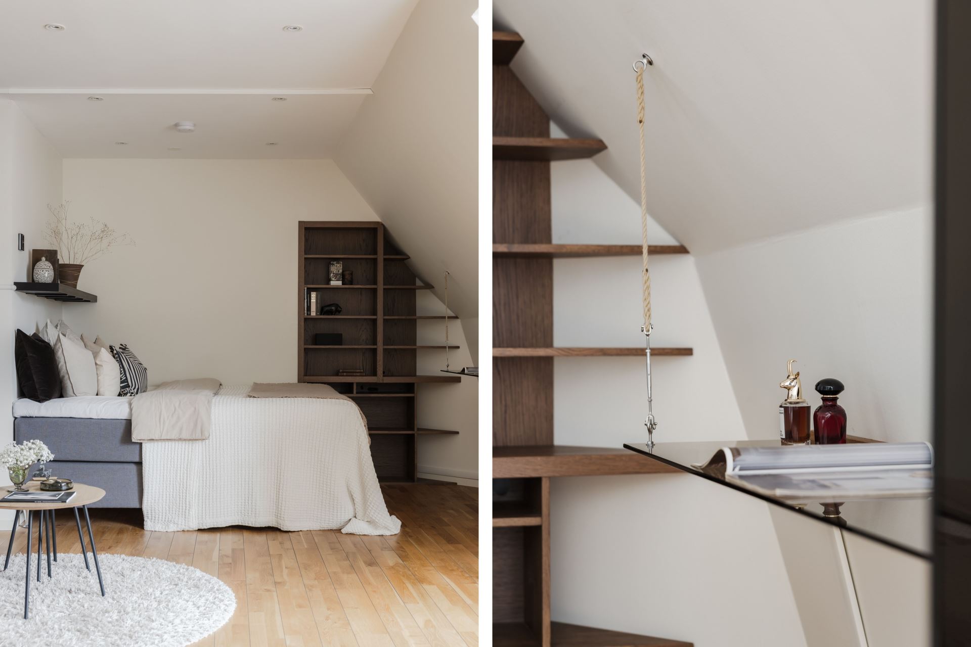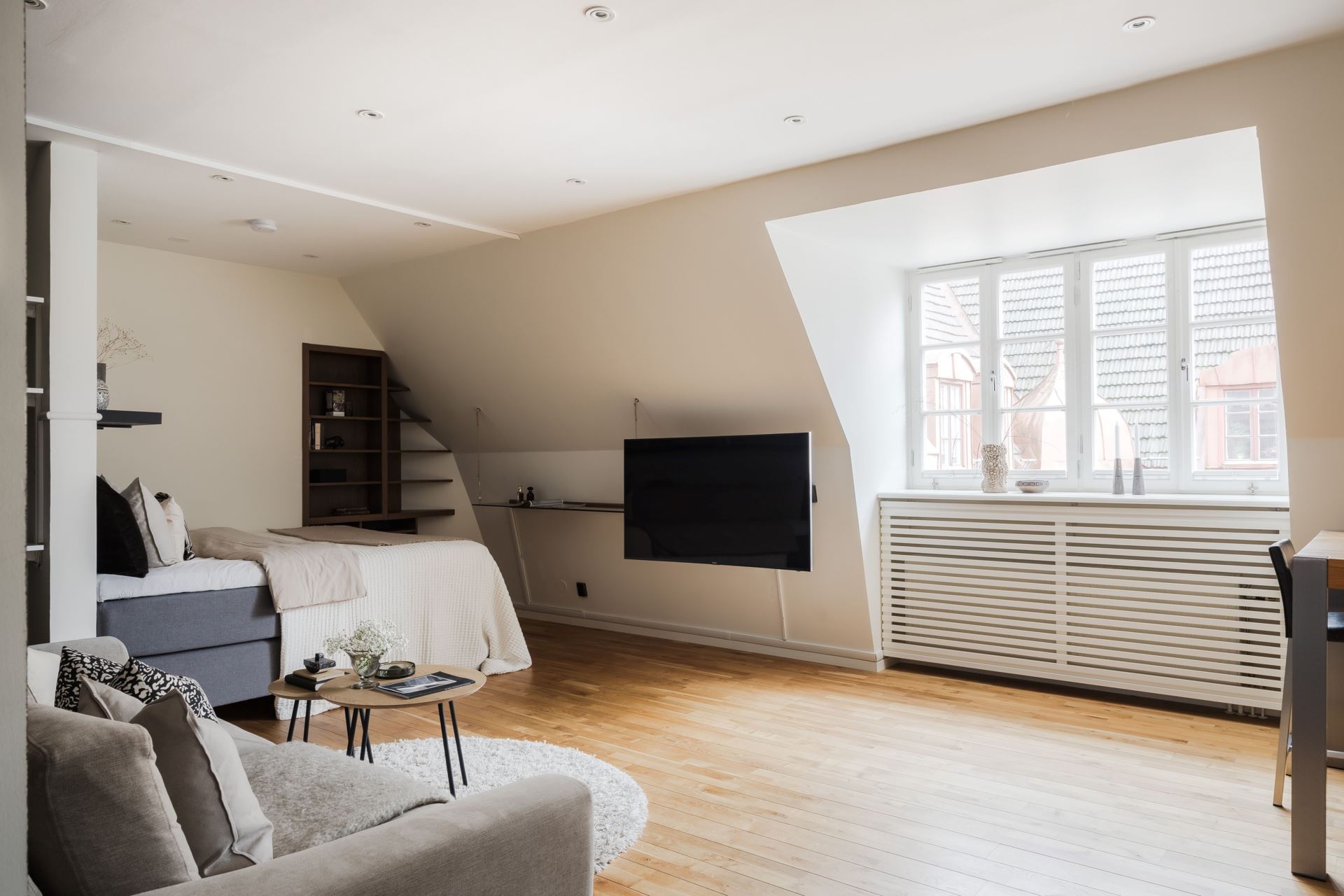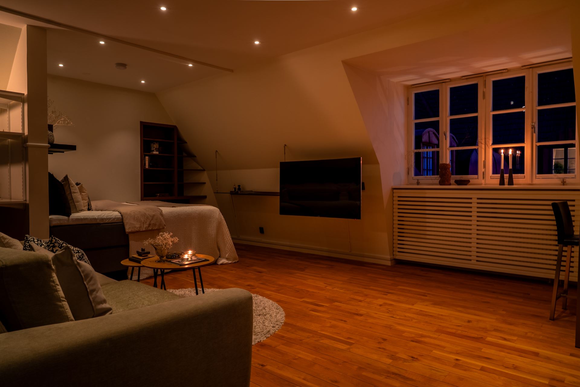 Intill de sociala ytorna finner vi en smart placerad sovalkov, en rofylld vrå som blir ditt eget lilla krypin. Här ryms enkelt en större säng och med möjlighet till smart förvaring maximeras ytan på bästa sätt. För den som önskar finns även plats för en arbetsplats intill, vilket gör detta till en flexibel och funktionell del av hemmet.