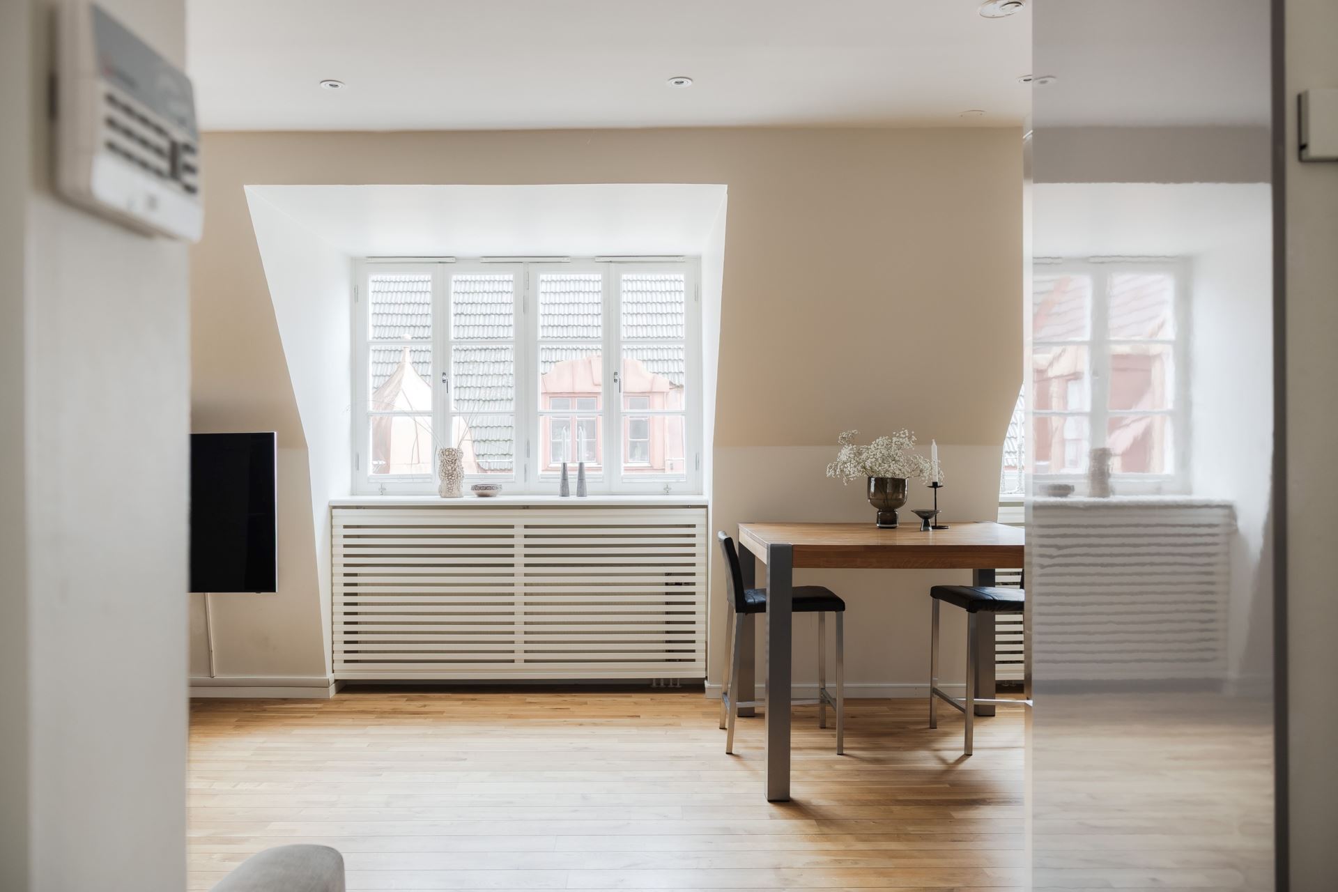 Välkommen upp till denna ljusa vindsvåning på sjätte våningen. Redan vid entrén möts du av ett fantastiskt ljus och ett stilrent skeppsgolv som löper genom hela bostaden och skapar en enhetlig känsla. Säkerhetsdörren ger trygghet och de generösa skjutdörrsgarderoberna erbjuder gott om plats för förvaring, praktiskt och stilfullt på samma gång.