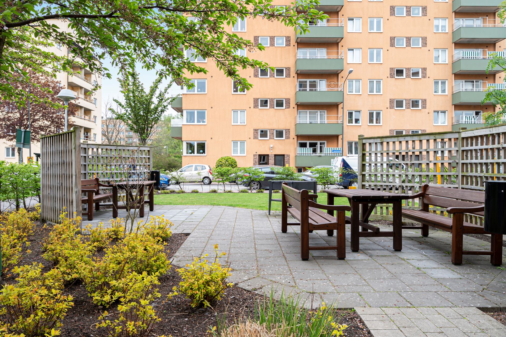 En fin utemiljö, färdigställd 2015, finns tillgänglig för medlemmarnas gemensamma bruk med grillmöjligheter, lekplats, nylagda gräsmattor etc.