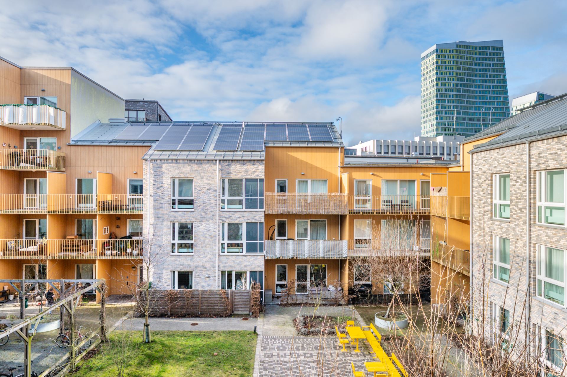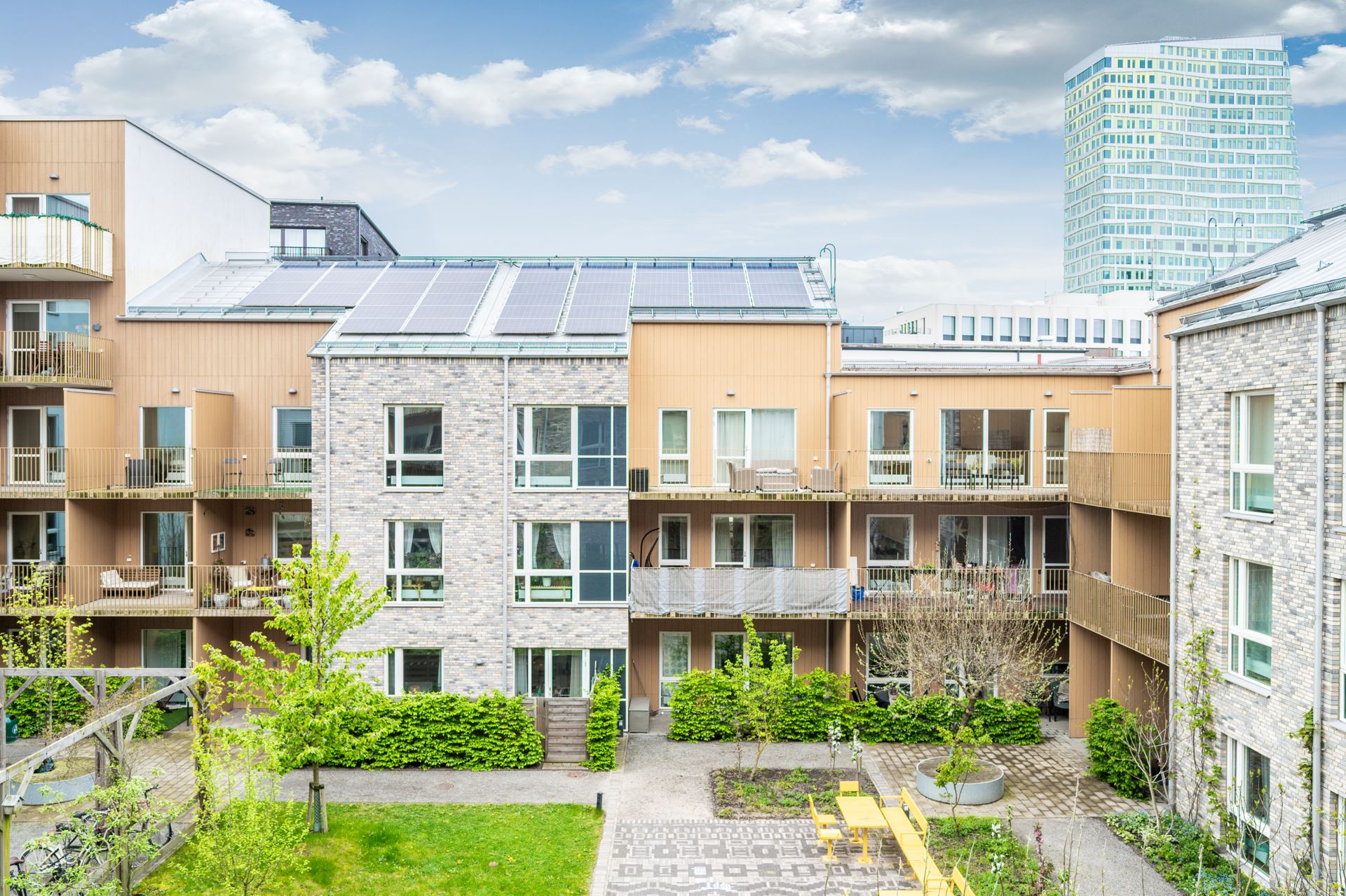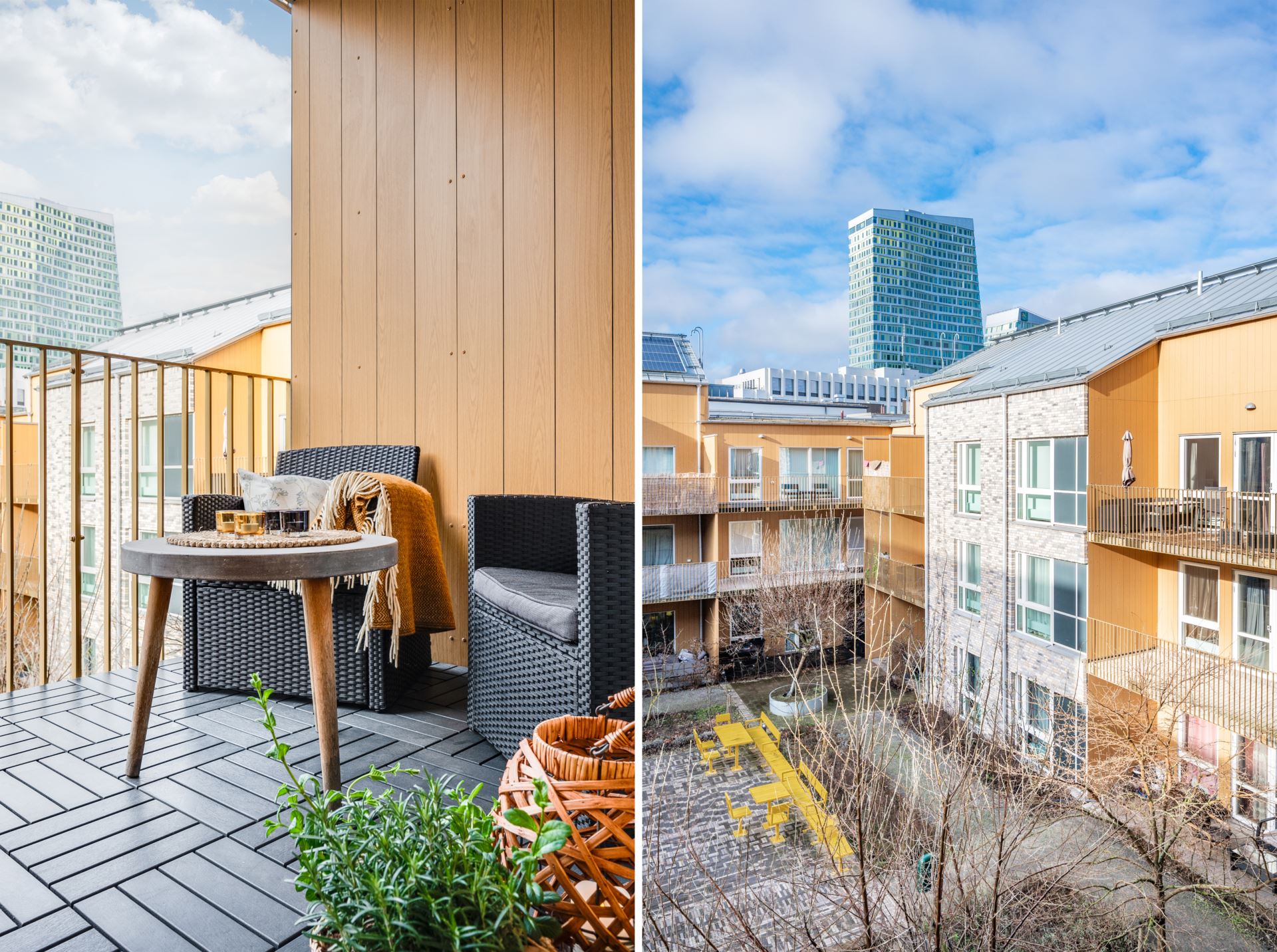 Vägg i vägg med vardagsrummet finner vi sovrummet. Här finns plats för större dubbelsäng, sängbord och ytterligare förvaringsmöbel. Tack vare garderoberna i sovrummet får vi dessutom extra mycket förvaringsutrymme även här. Från sovrummet nås vidare den sköna balkongen, belägen på lugnt läge mot gården och i väster. Enkelt att möblera på bästa vis och ström finns också utdraget till balkongen.
