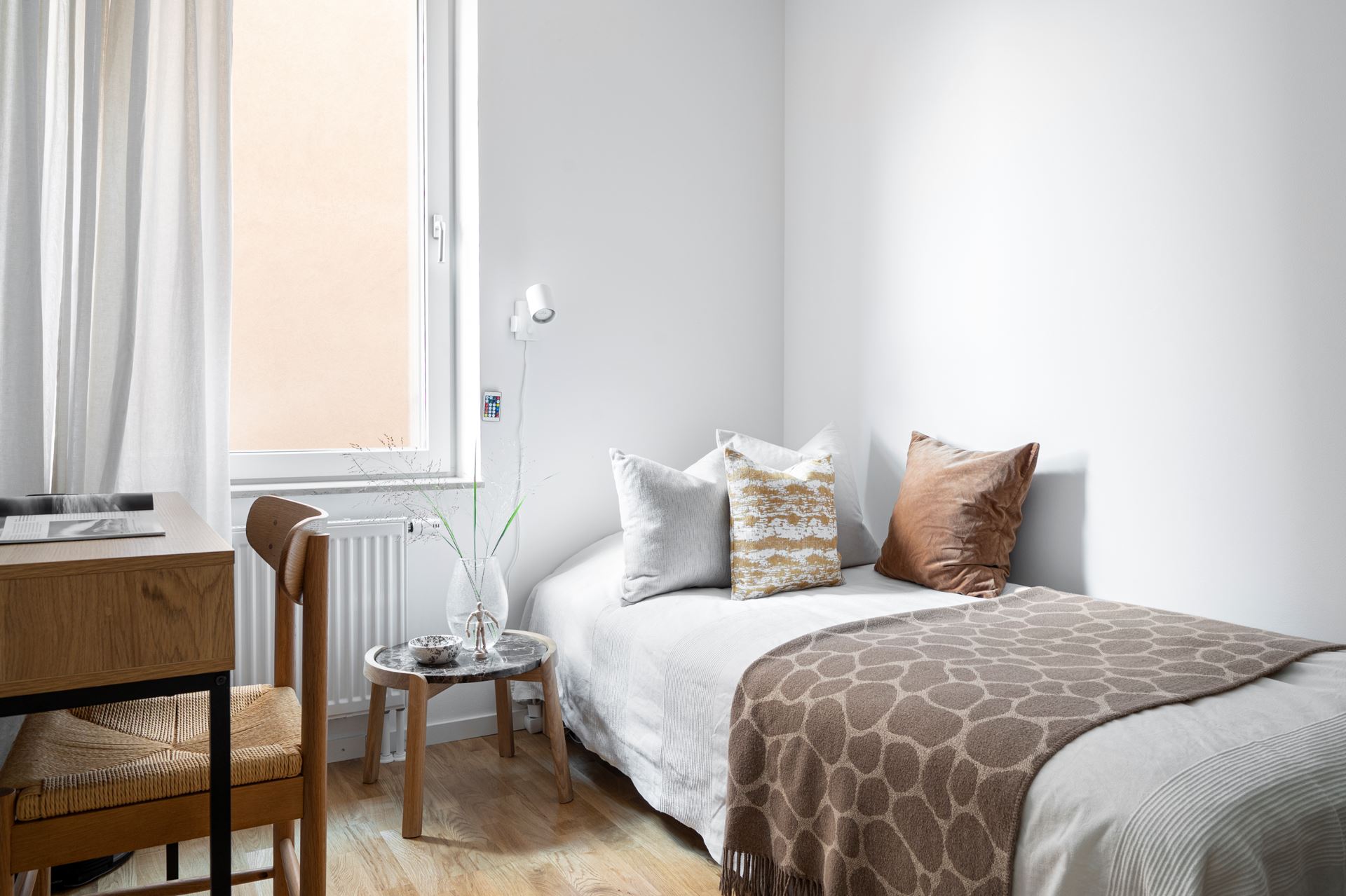 Det tredje sovrummet är i liknande storleken som rummet intill och här bjuds det på släta väggar tillsammans med parkett på golv, vilket återfinns i hela bostaden. Även detta rum passar utmärkt som barnrum eller hemmakontor.
