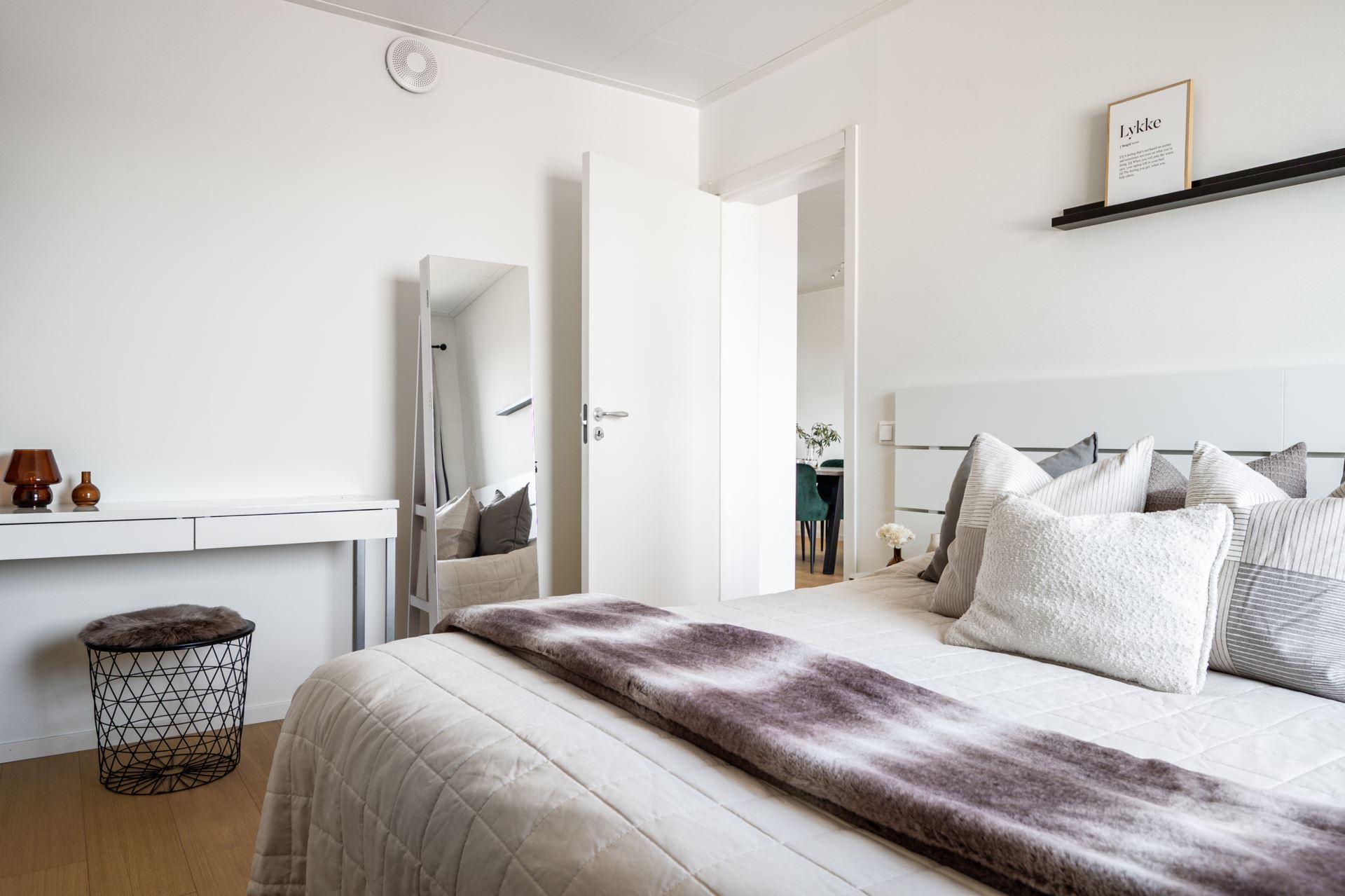 Tredje sovrummet hittar vi tvärsöver, även detta rum är rymligt till storlek. Här får du plats med större säng och möblering efter behov.
