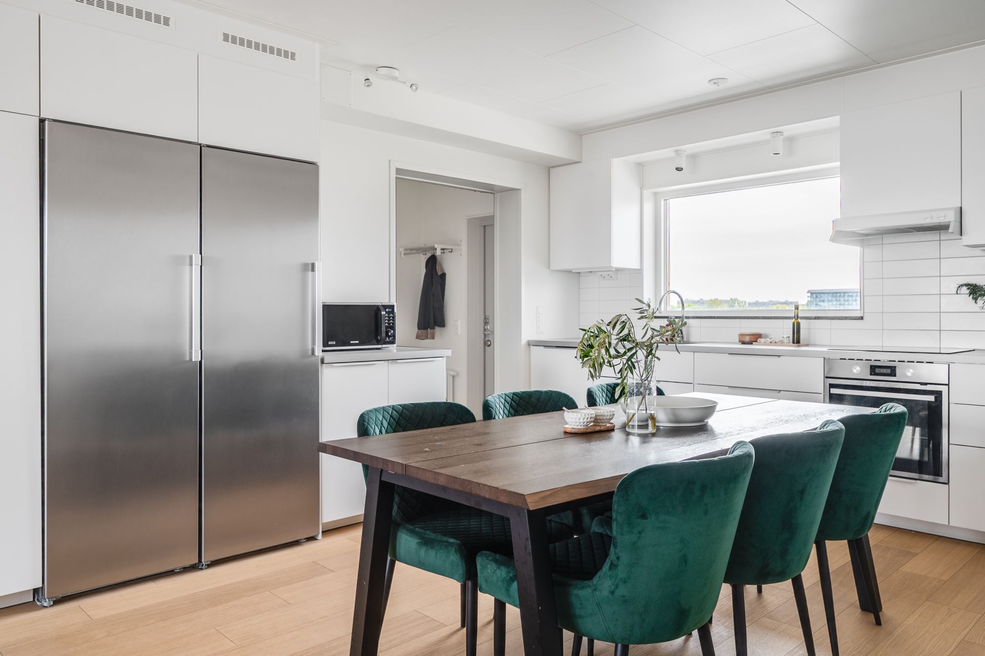 Högst upp i huset på fjärde våningen välkomnar denna mycket välplanerade fyrarummare om 84 kvadratmeter. Fint ljusinsläpp i hela lägenheten tack vare sin genomgående planlösning. Öppen planlösning mellan kök och vardagsrum och access till balkongen från vardagsrummet. Tre bra och luftiga sovrum och utmärkta förvaringsmöjligheter i två stora klädkammare och bra med plats för garderobsförvaring. Bo på attraktivt läge i området med ett par minuters promenad till Hyllie Station, Emporia, matbutiker och närservice. Varmt välkomna på visning!
