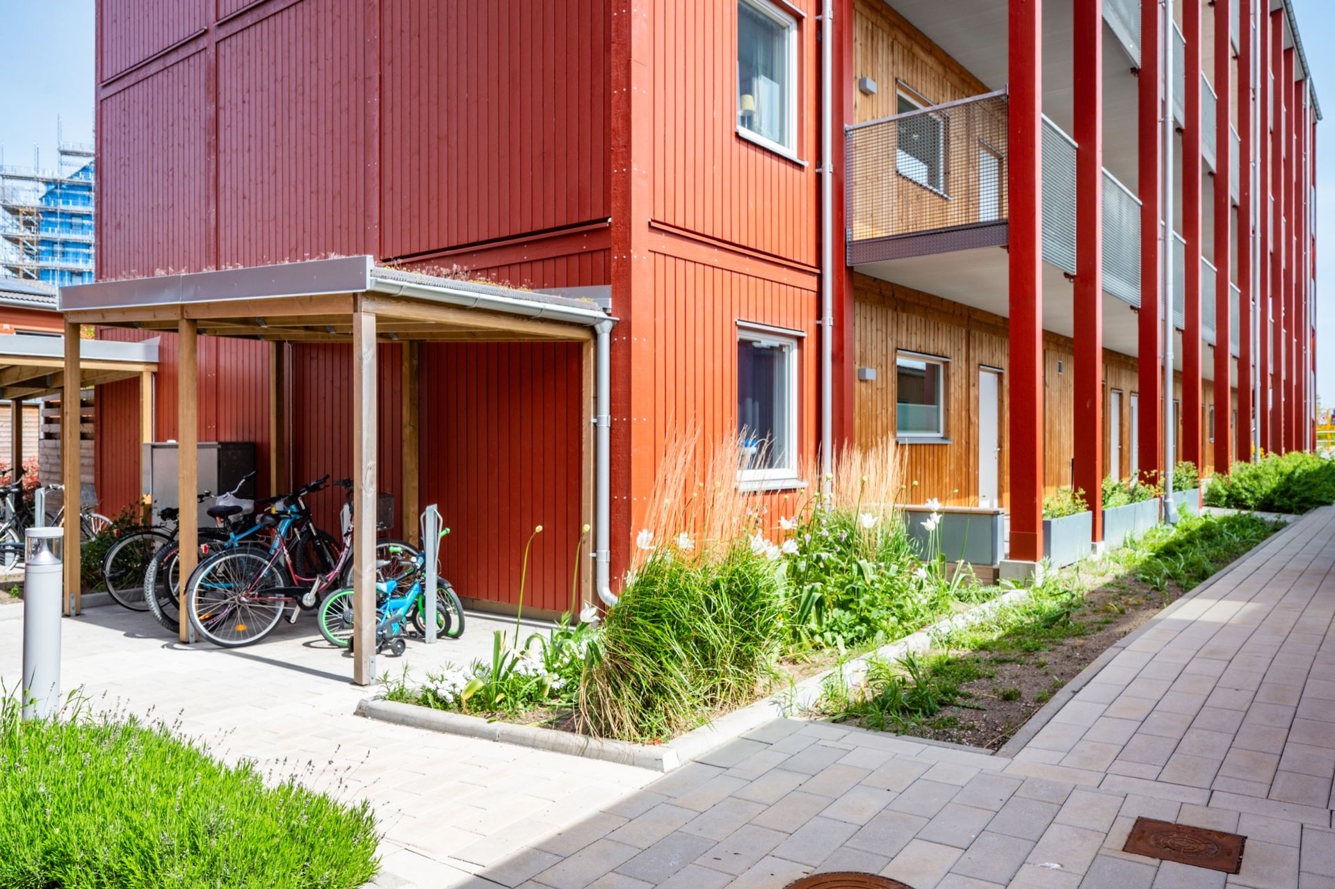 I föreningen finns gemensamma cykelparkeringar och två gemensamma miljöhus.