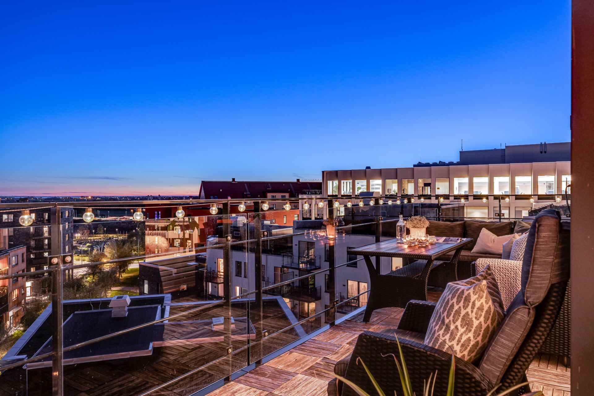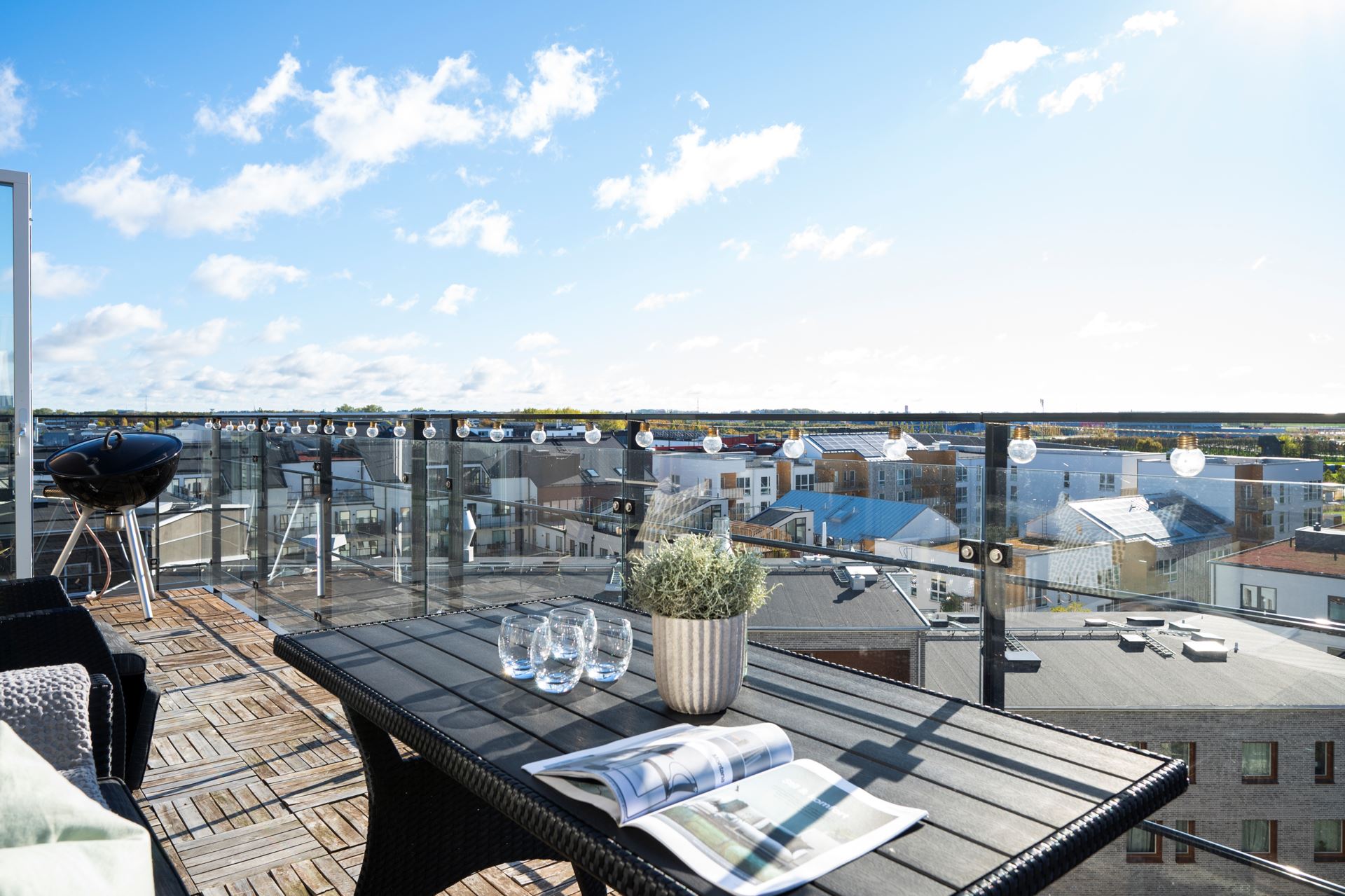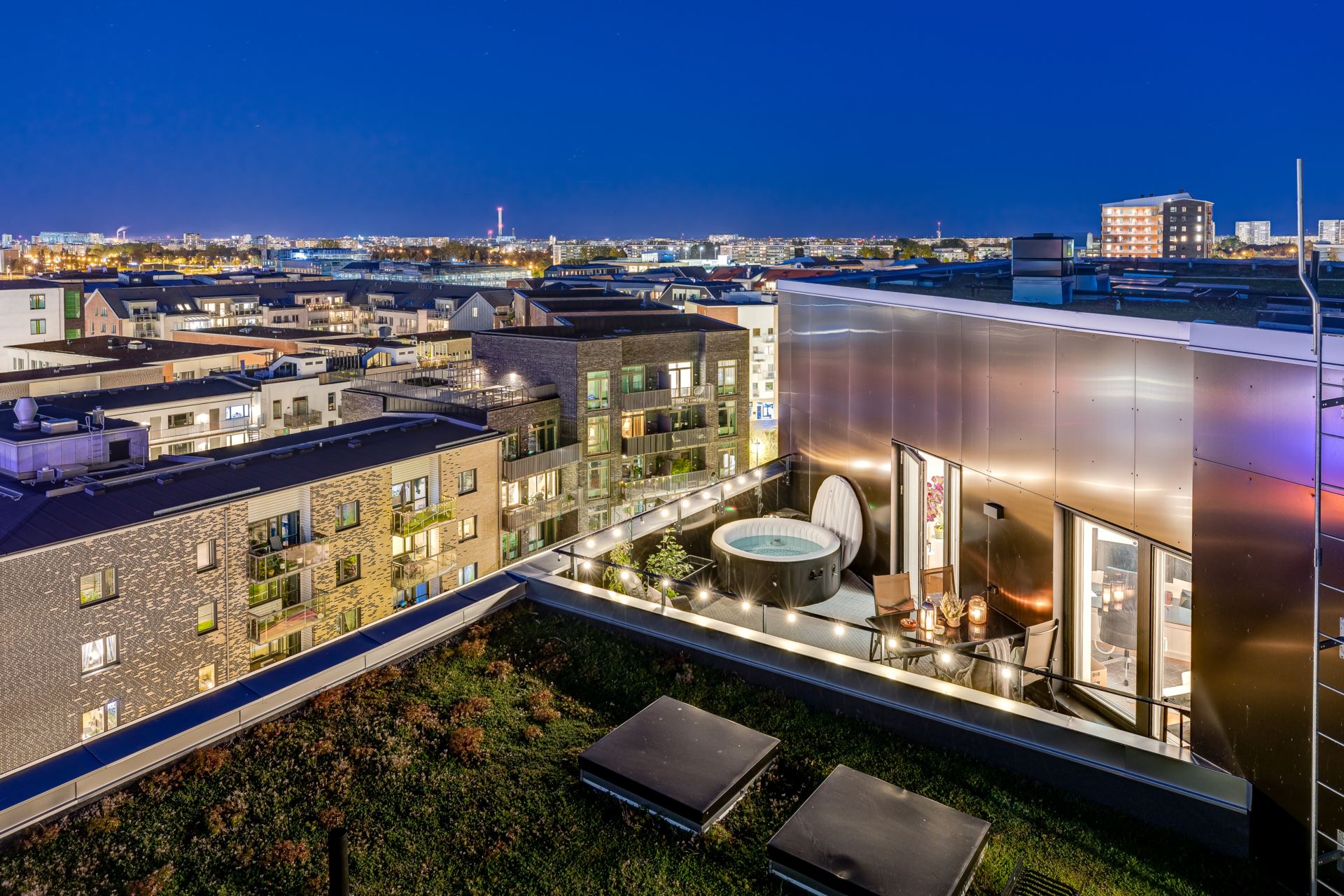 Mitt i Hyllie finns nu ett helt unikt tillfälle att förvärva en av de eftertraktade trerumslägenheterna med egen takterrass! Bostaden bjuder tilltalande planlösning där 85 kvm fördelas i två rymliga sovrum, en helt underbar takterrass och dessutom en fantastisk balkong som gör bostaden till något alldeles extra! Njut av underbar utsikt över Hyllies takåsar och bo på centralt läge i området med en minuts promenad till Hyllie Station. Hör av dig till mäklaren för privatvisning!