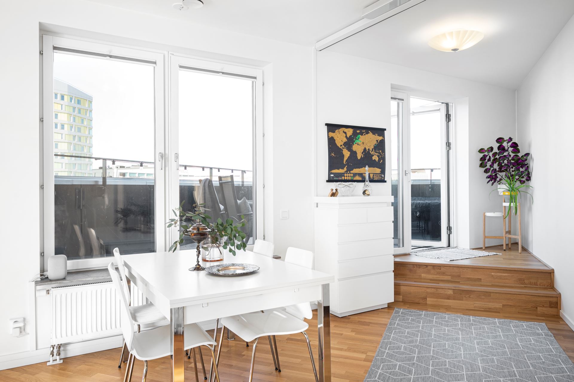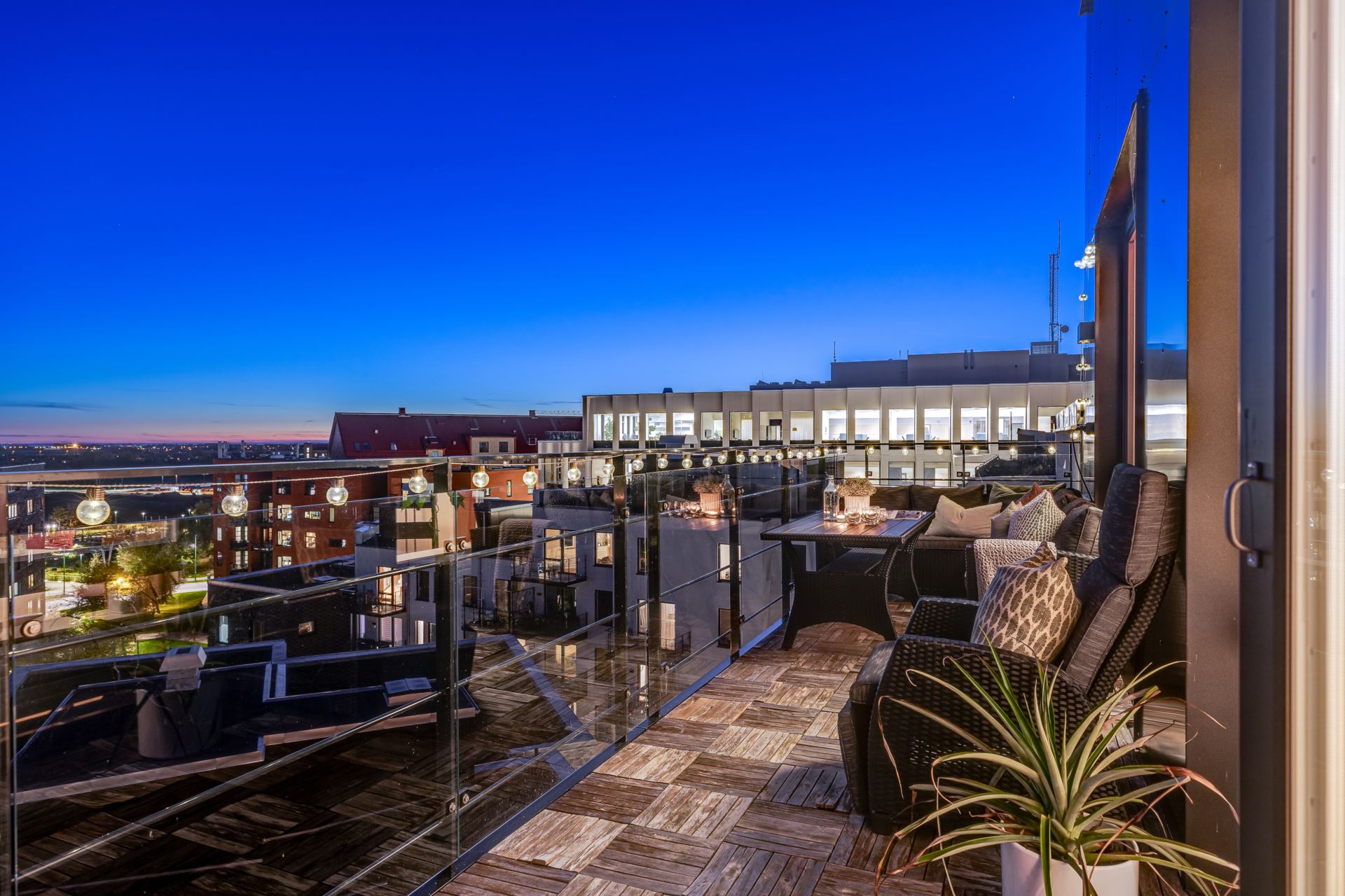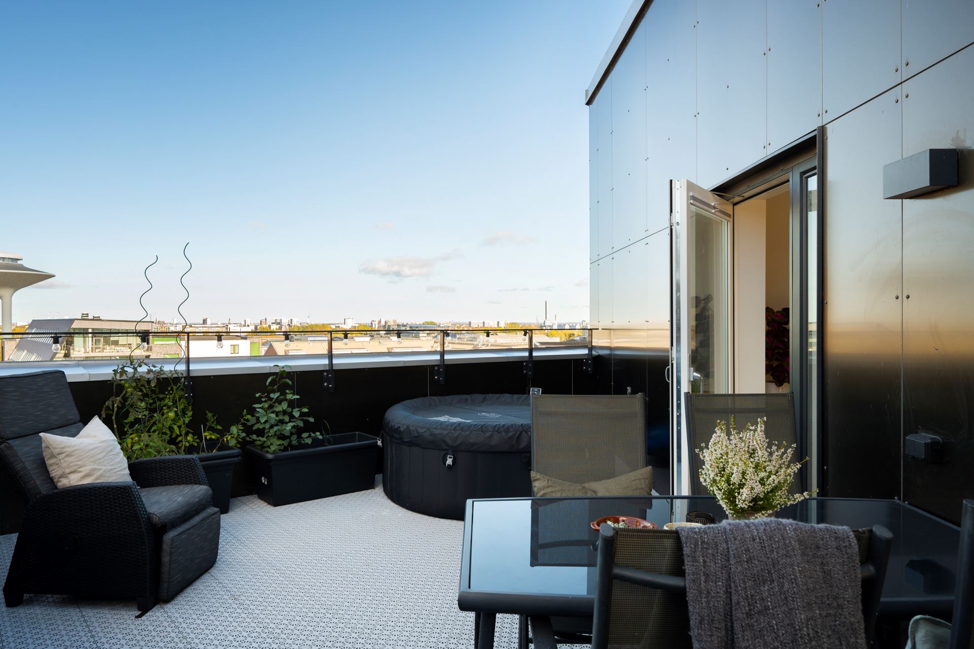 Mitt i Hyllie finns nu ett helt unikt tillfälle att förvärva en av de eftertraktade trerumslägenheterna med egen takterrass! Bostaden bjuder tilltalande planlösning där 85 kvm fördelas i två rymliga sovrum, en helt underbar takterrass och dessutom en fantastisk balkong som gör bostaden till något alldeles extra! Njut av underbar utsikt över Hyllies takåsar och bo på centralt läge i området med en minuts promenad till Hyllie Station. Hör av dig till mäklaren för privatvisning!