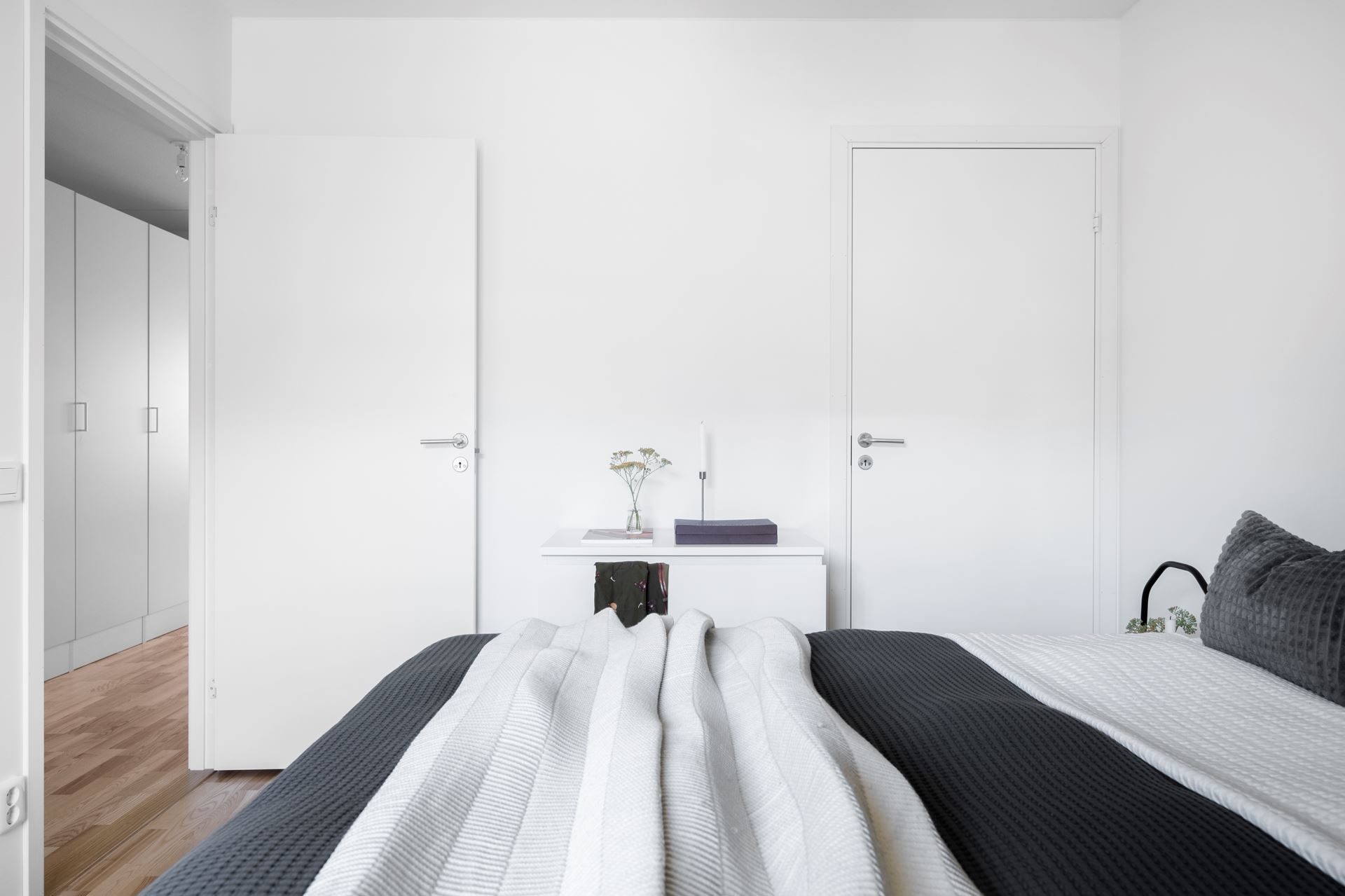Sovrummet vetter på lugnt läge mot gårdssidan och rymmer gott om plats för både dubbelsäng, sängbord och ytterligare förvaringsmöbel. Dessutom gott om plats till förvaring i bostadens klädkammare/förråd, som även den nås från sovrummet.