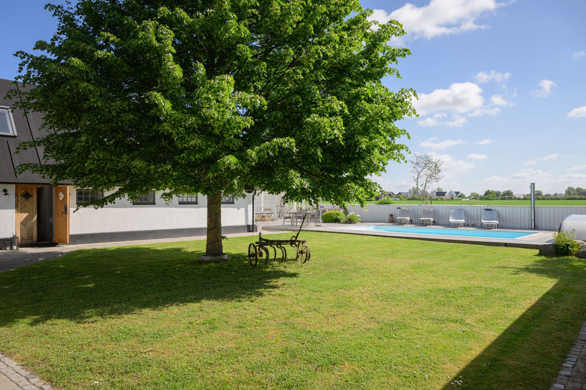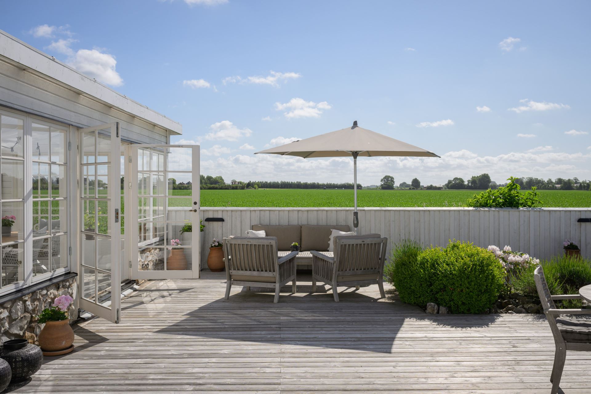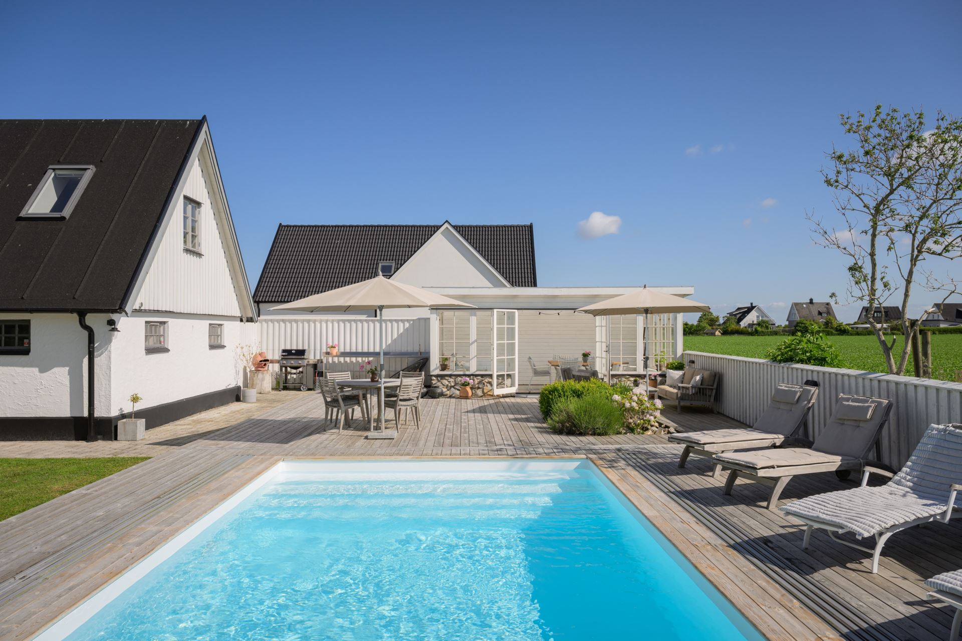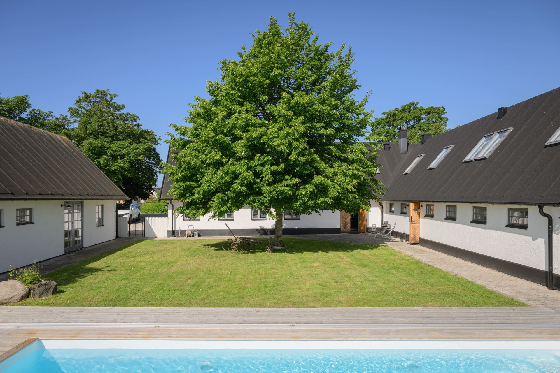 Den generösa tomten erbjuder flera uteplatser i samtliga väderstreck, vilket gör det möjligt att följa solen från morgon till kväll. Här finns dessutom en inbjudande pool med stort trädäck och ett härligt orangeri, perfekt för både svalkande dopp under varma sommardagar och mysiga långluncher oavsett väder.