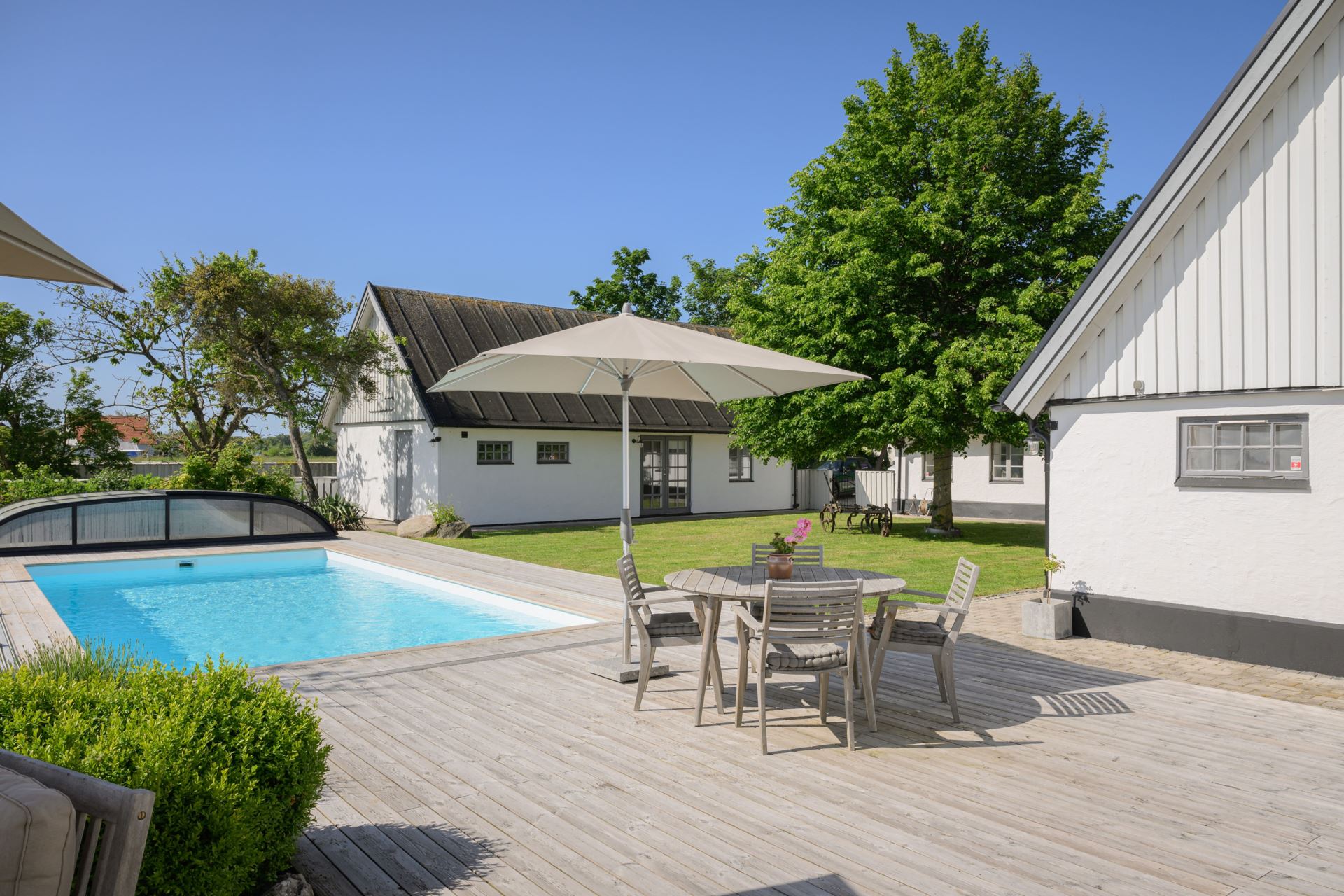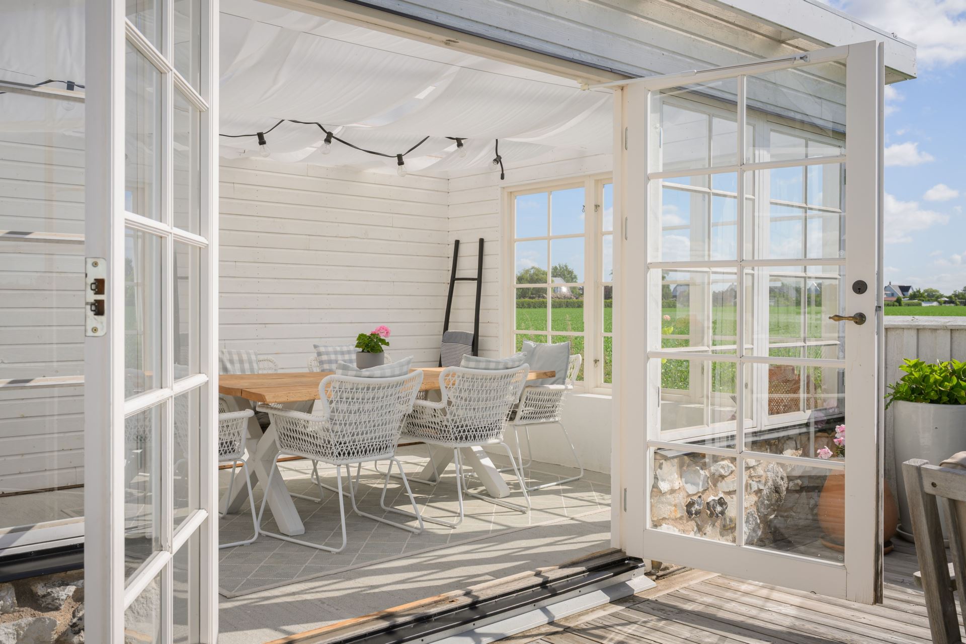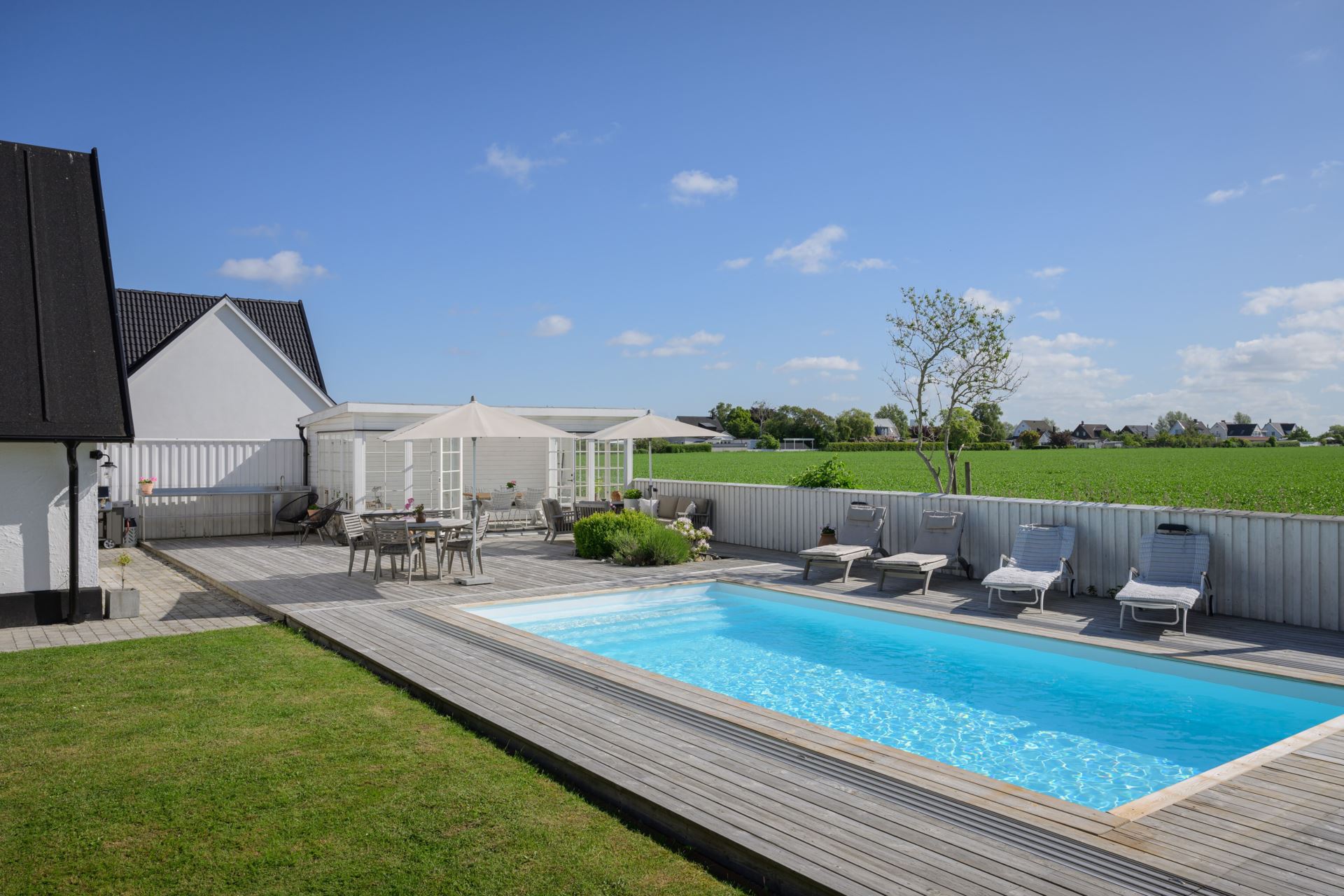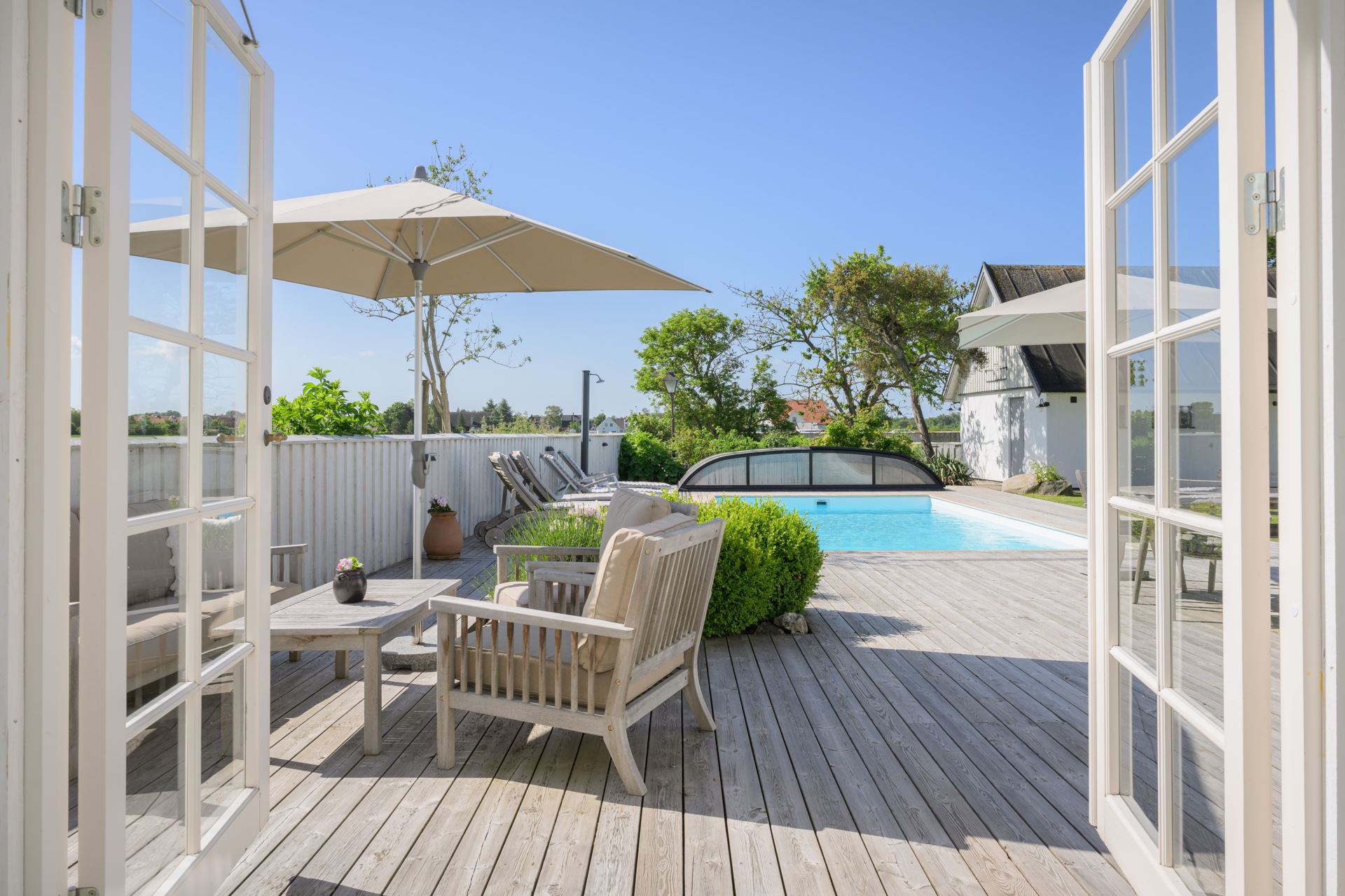 Den generösa tomten erbjuder flera uteplatser i samtliga väderstreck, vilket gör det möjligt att följa solen från morgon till kväll. Här finns dessutom en inbjudande pool med stort trädäck och ett härligt orangeri, perfekt för både svalkande dopp under varma sommardagar och mysiga långluncher oavsett väder.