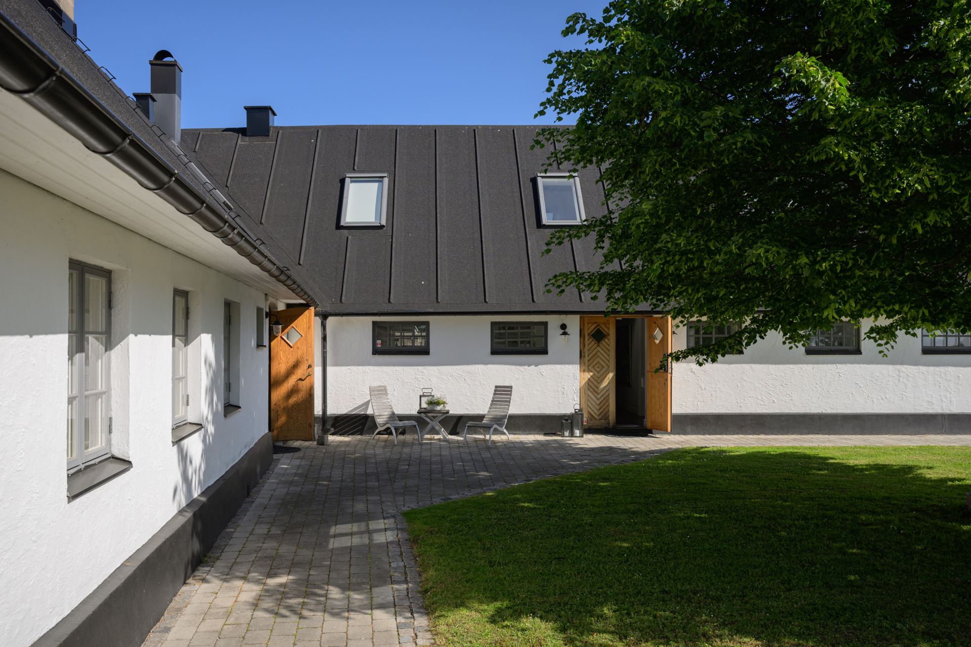 Bostaden är uppförd i en välplanerad U-formad gårdsbebyggelse som omsluter en skyddad och rofylld innergård, en egen liten oas för avkoppling och sociala stunder. År 2013 genomgick fastigheten en omfattande renovering som tillförde modern komfort och funktion, samtidigt som den genuina historiska charmen bevarades.