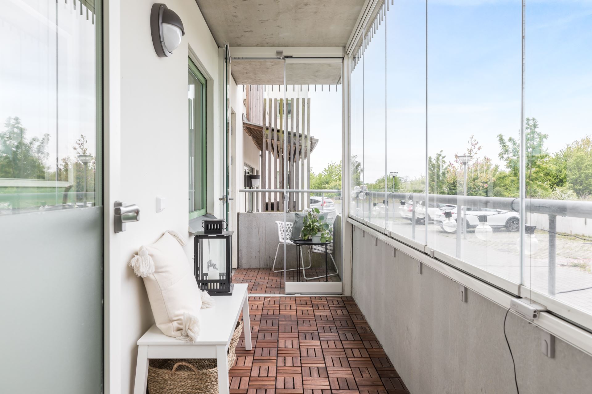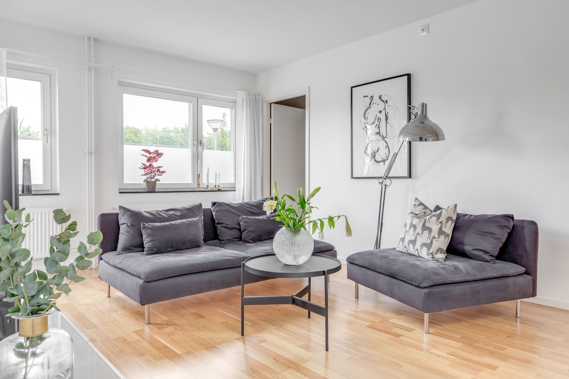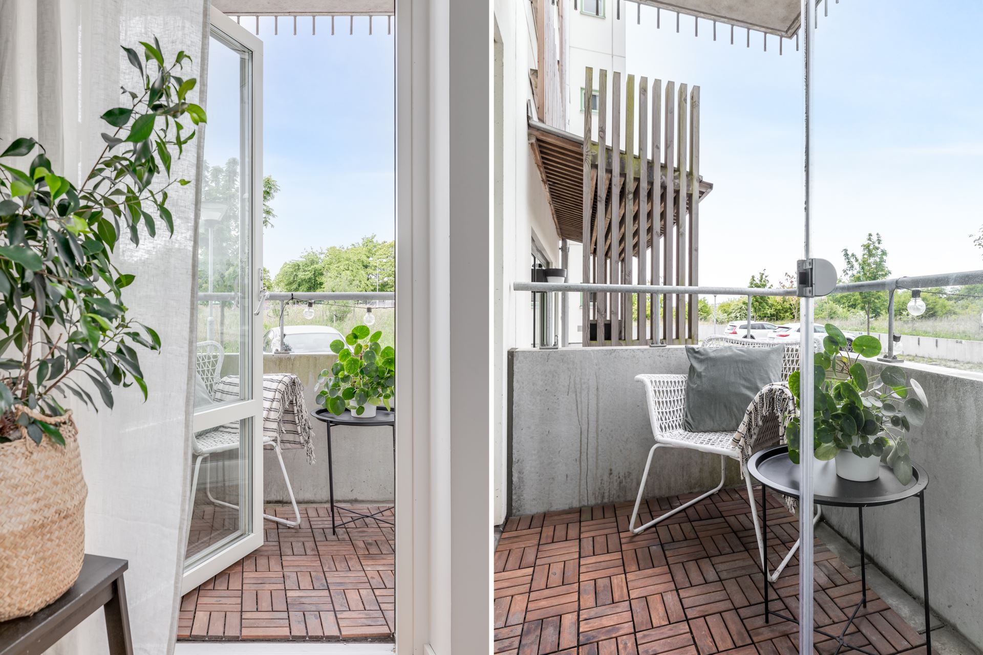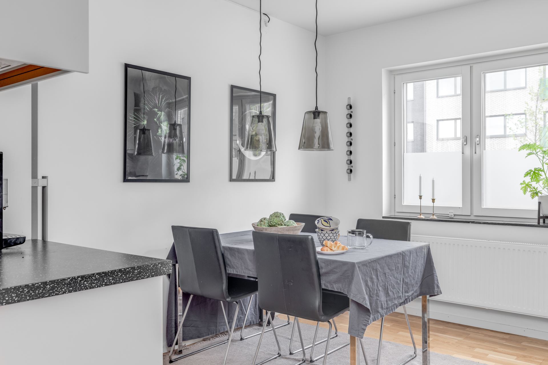 Vidare öppnar vardagsrummet upp och här ryms plats för större soffgrupp och ytterligare möblering. Från vardagsrummet finns även utgången till den inglasade balkongen som bjuder på kvällssol och där kommande sommarkvällar kan avnjutas på bästa vis!