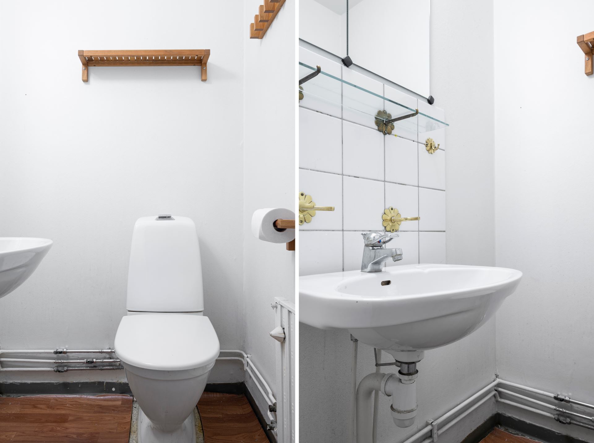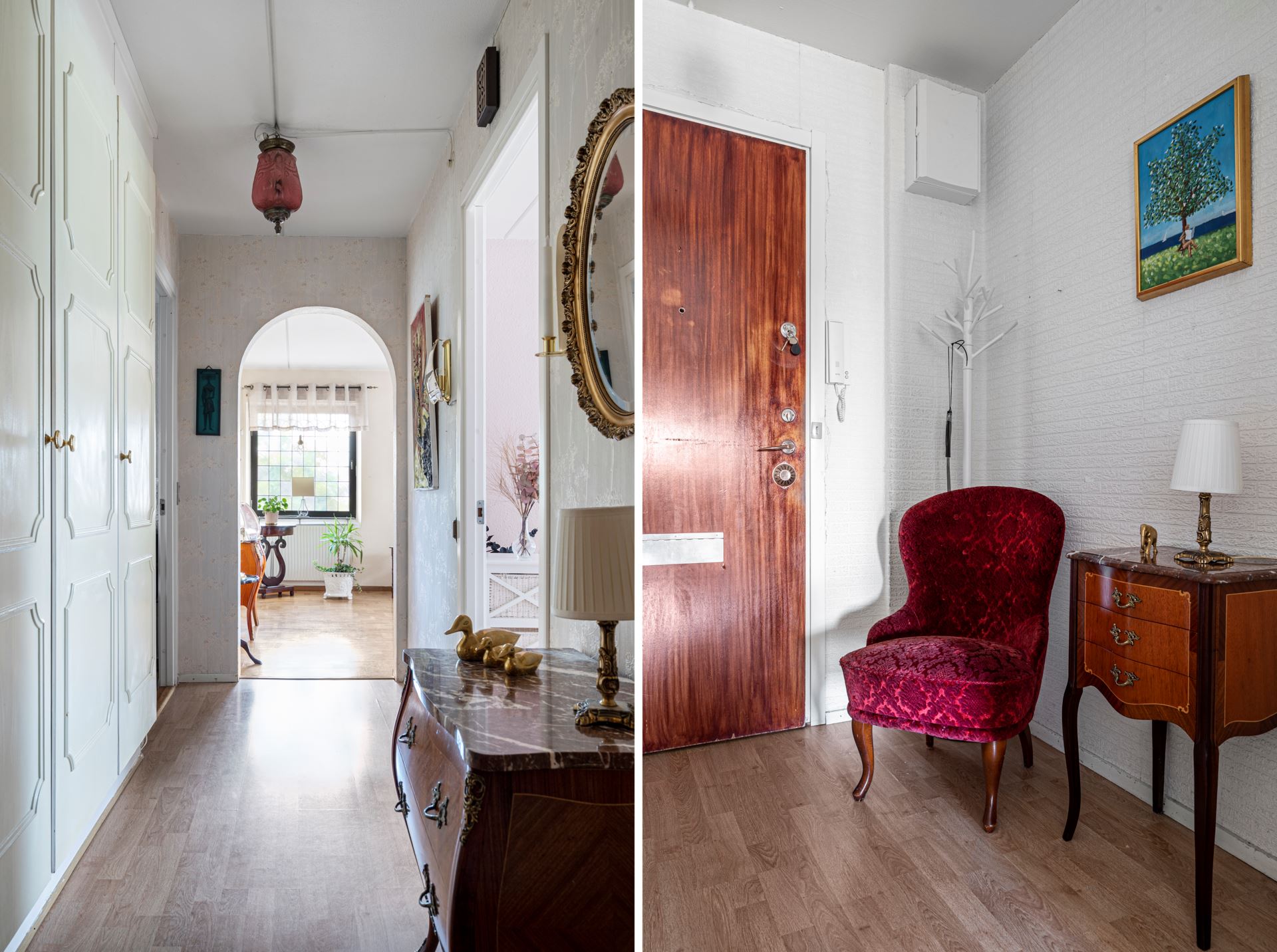 På andra våningen välkomnas vi in i kvadratsmart lägenhet. Trevlig hall med gott om utrymme för avhängnings- och förvaringsmöjligheter i platsbyggd garderob.
