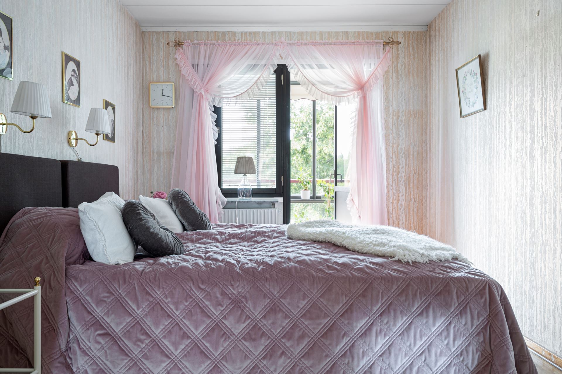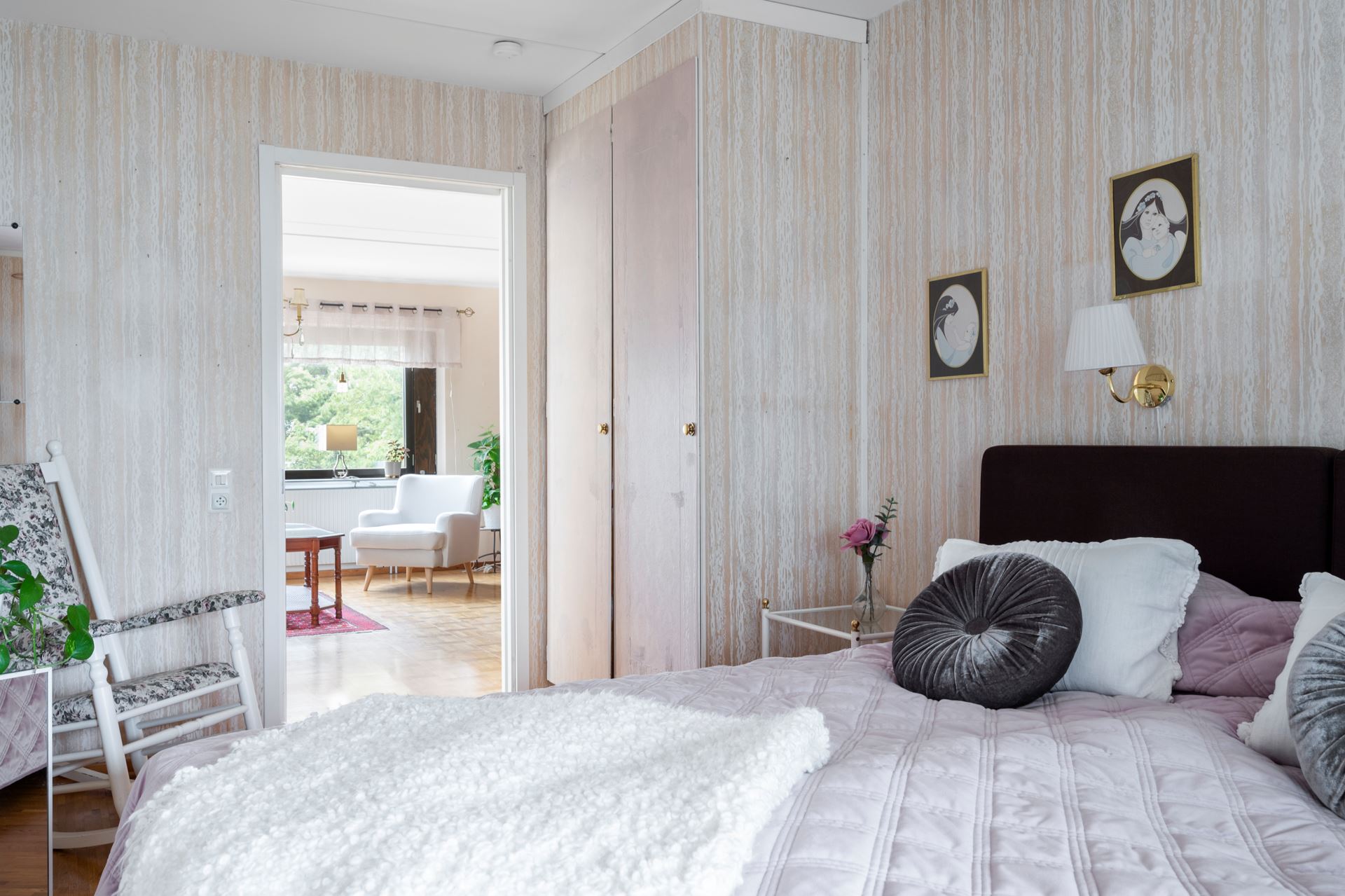 Sovrum 1: I anslutning till hallen ligger det första sovrummet som är rymligt till storlek med plats för dubbelsäng och sängbord. Här finns plats att sätta in ytterligare förvaringsmöbel om så önskas.