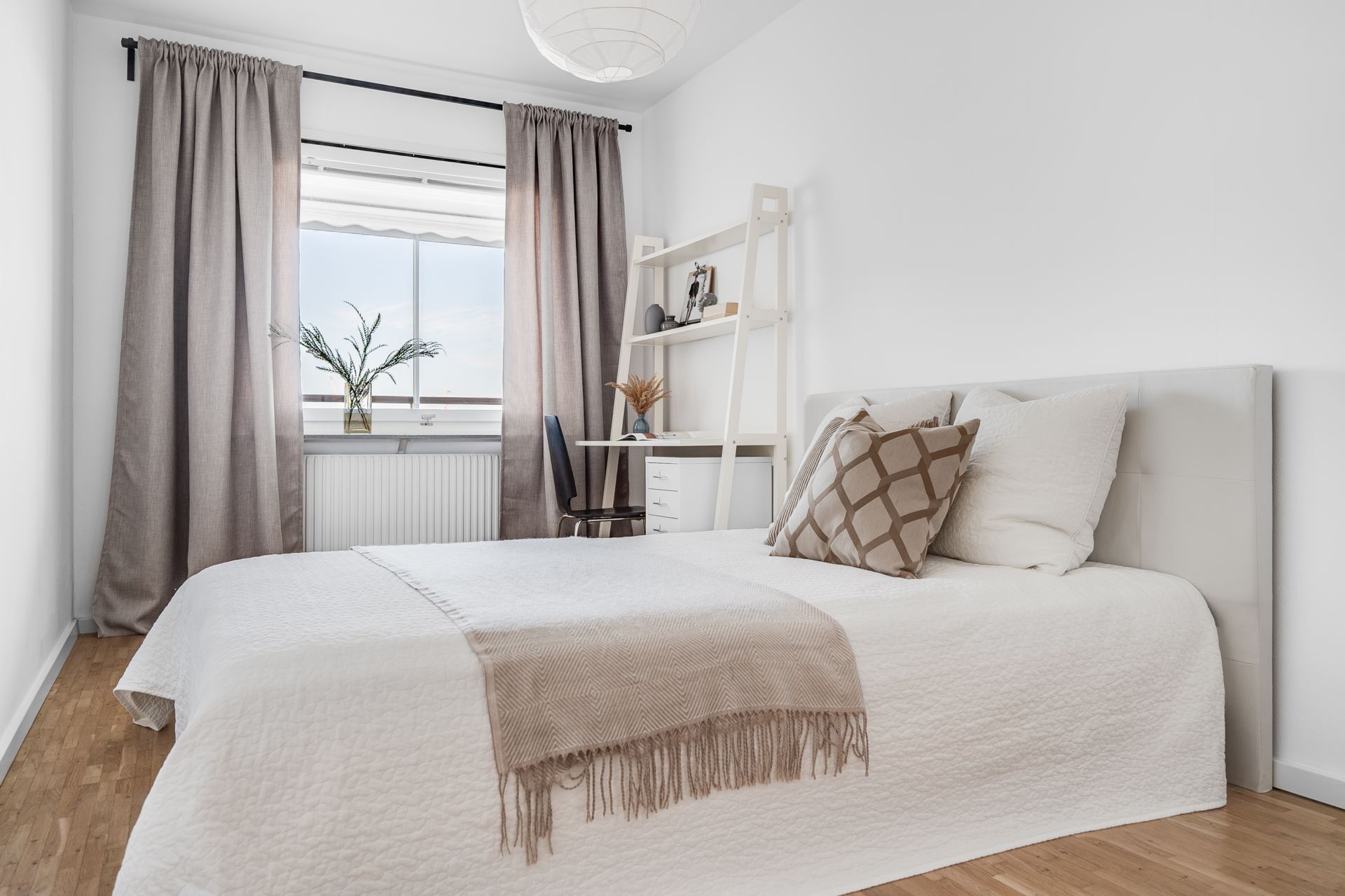 Sovrum 2: Rymligt sovrum, passar perfekt som gästrum och barnrum, här får vi plats med säng, sängbord och mer därtill.