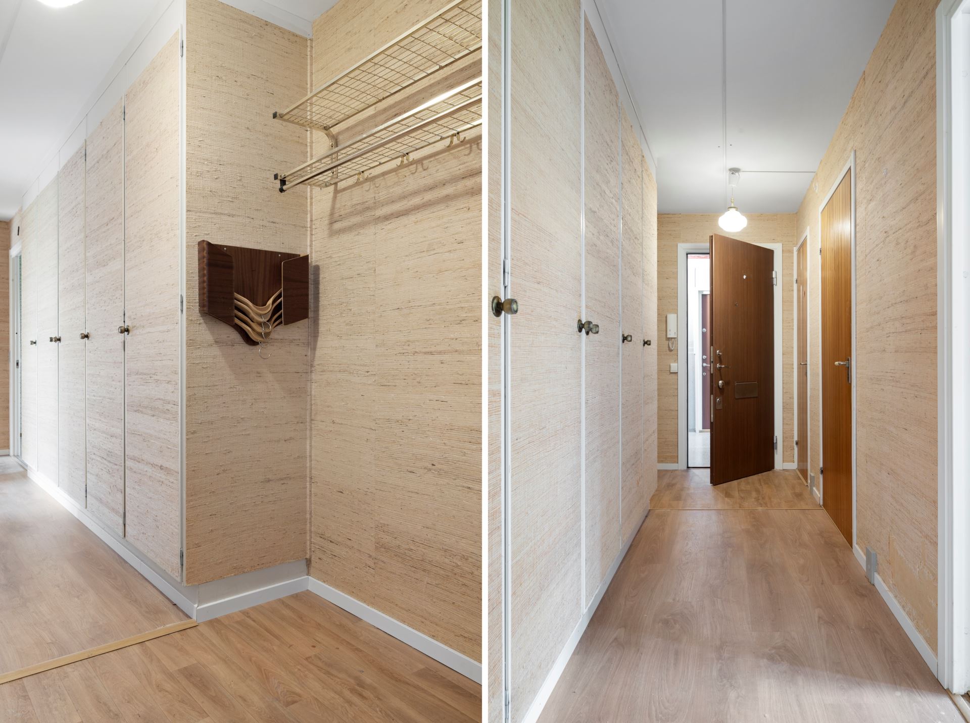 På andra våningen välkomnas vi in i kvadratsmart lägenhet. Trevlig hall med gott om utrymme för avhängnings- och förvaringsmöjligheter i platsbyggd garderob.