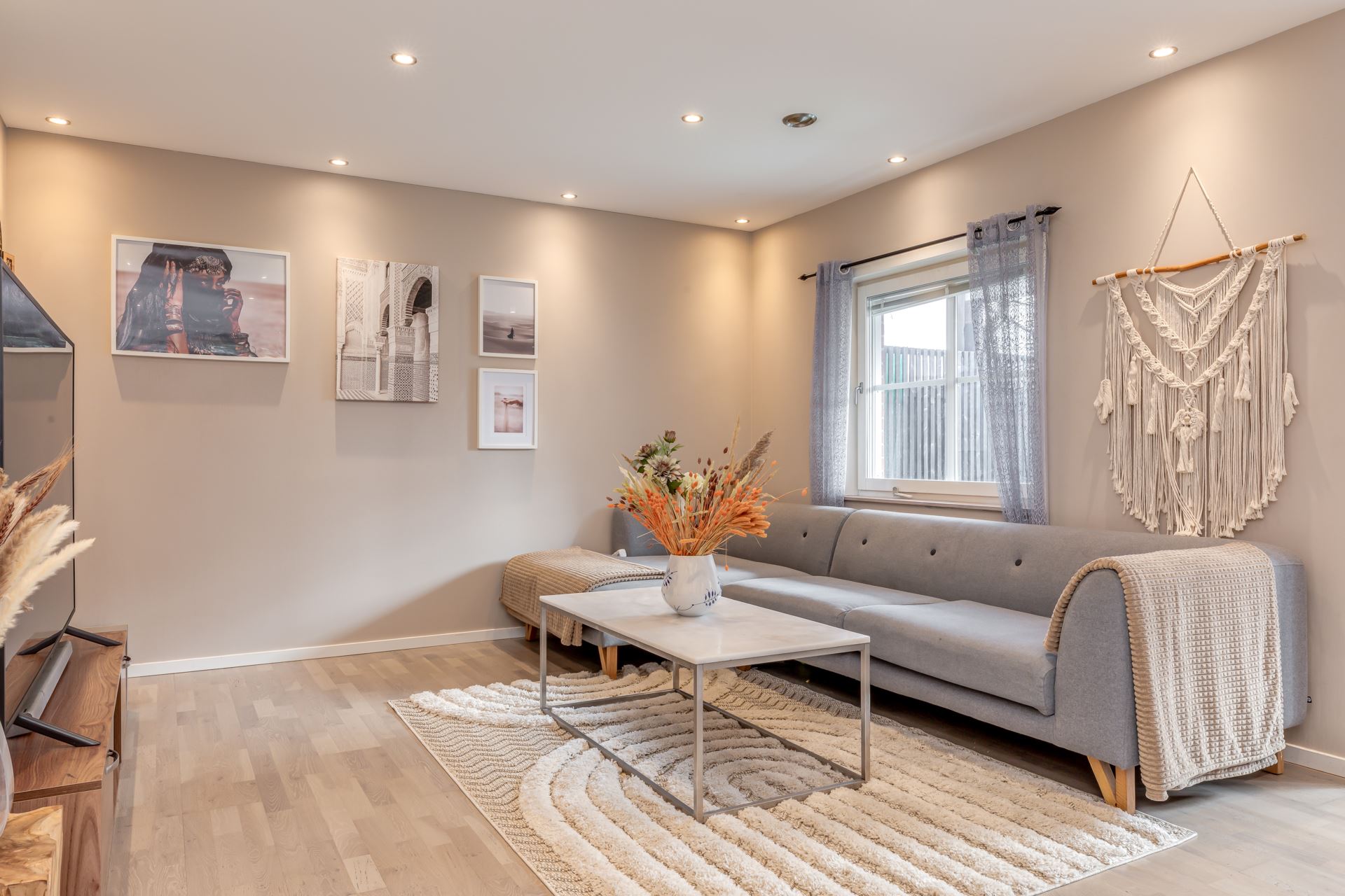 Välkommen till ett totalrenoverat och välplanerat enplansradhus, perfekt för både barnfamiljen och paret. Läget i Oxie ger bekvämt avstånd till både buss och tåg, dessutom närhet till affärer, gym, förskolor, skolor och grönområden. Bostaden är totalrenoverad med en öppen, social planlösning mellan kök, matplats och vardagsrum som gör vardagen enkel och umgänget självklart. Här finns tre sovrum i bra storlekar, ett stilrent badrum, en gäst wc, separat tvättstuga och en generös klädkammare. Den privata uteplatsen är perfekt för lata dagar i solen eller härliga grillkvällar med familj och vänner. Här ryms både soffgrupp och långbord. Tegelfasad och enhetliga materialval ger ett lättskött boende som fungerar året runt.