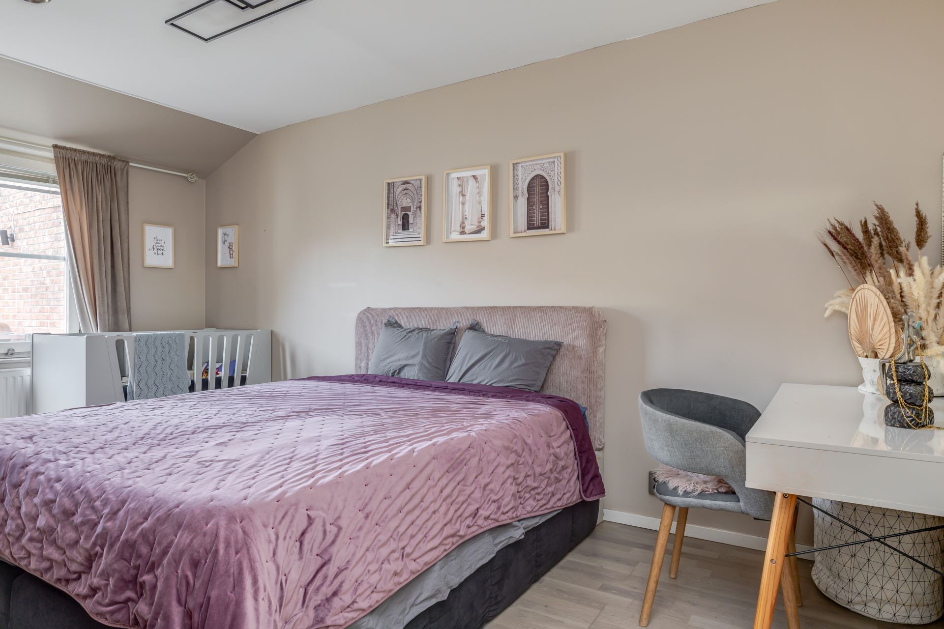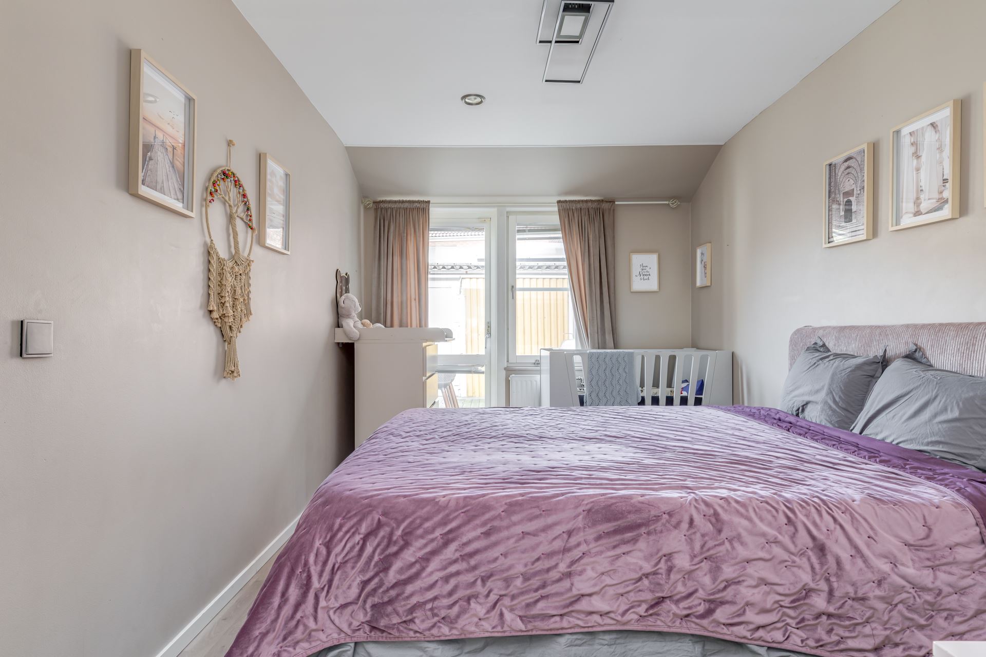 Rymligt sovrum med plats för dubbelsäng och förvaring. Egen dörr mot uteplatsen ger svalka sommartid och bekväm kontakt med utelivet. Lugn färgsättning och mjuka golv. Närhet till klädkammaren för smidig vardag.